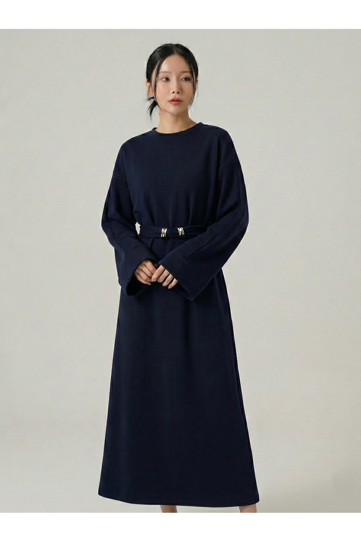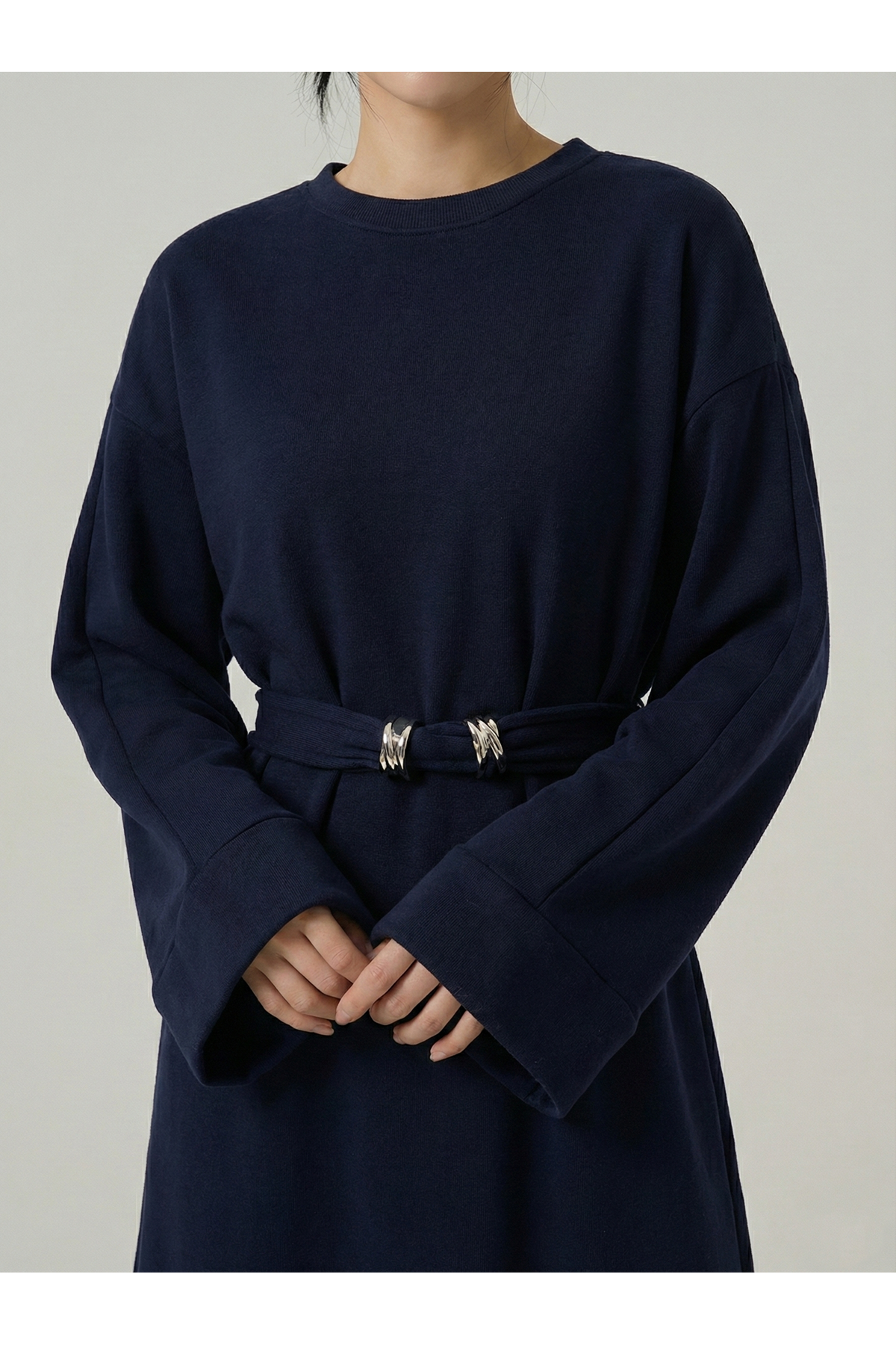 Bel Bağlamalı Elbise-Lacivert