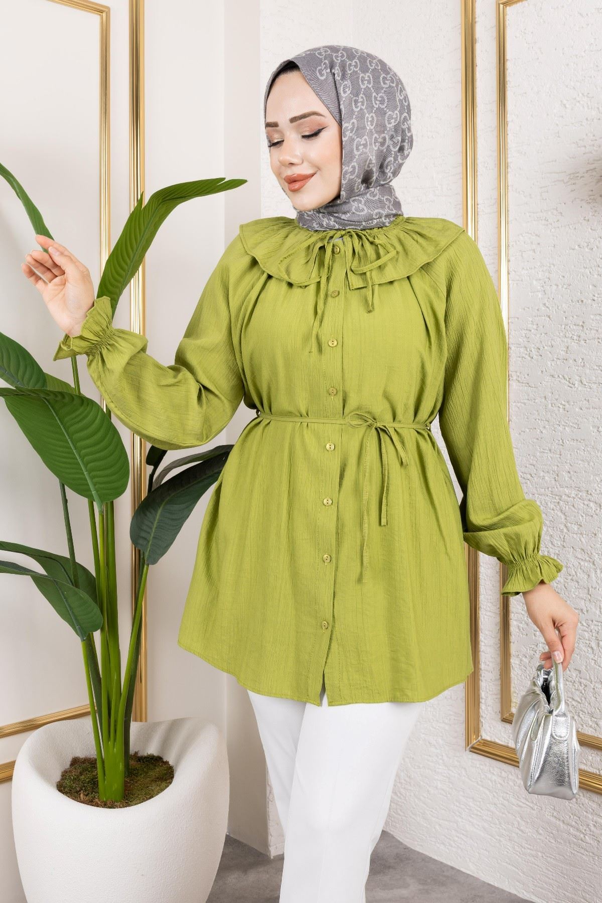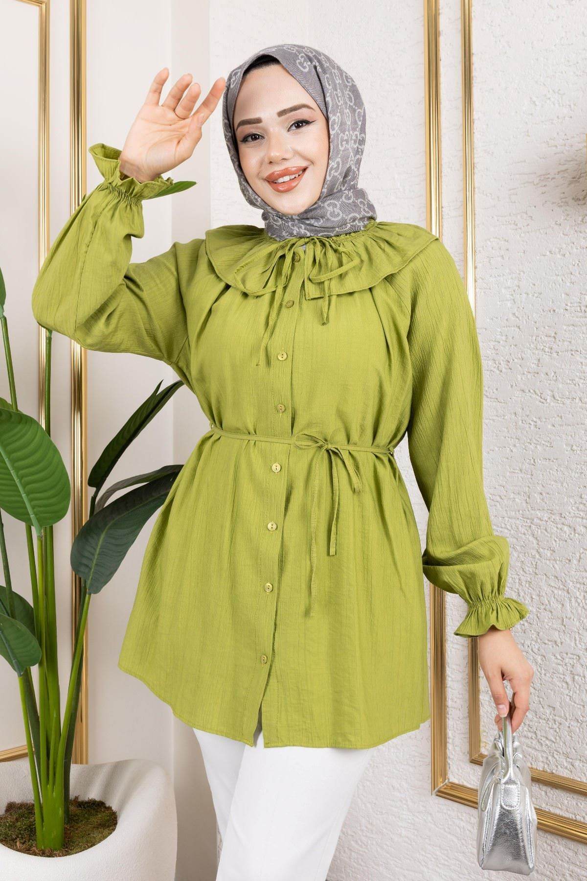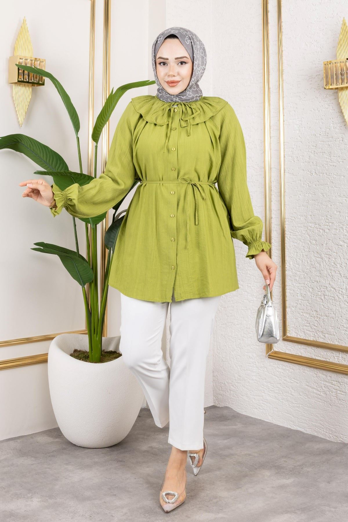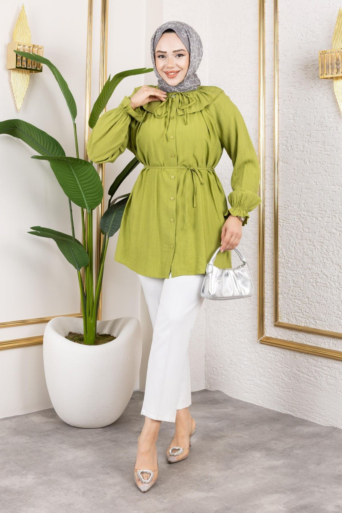 Biye Detay Tunik-YAĞ YEŞİLİ
