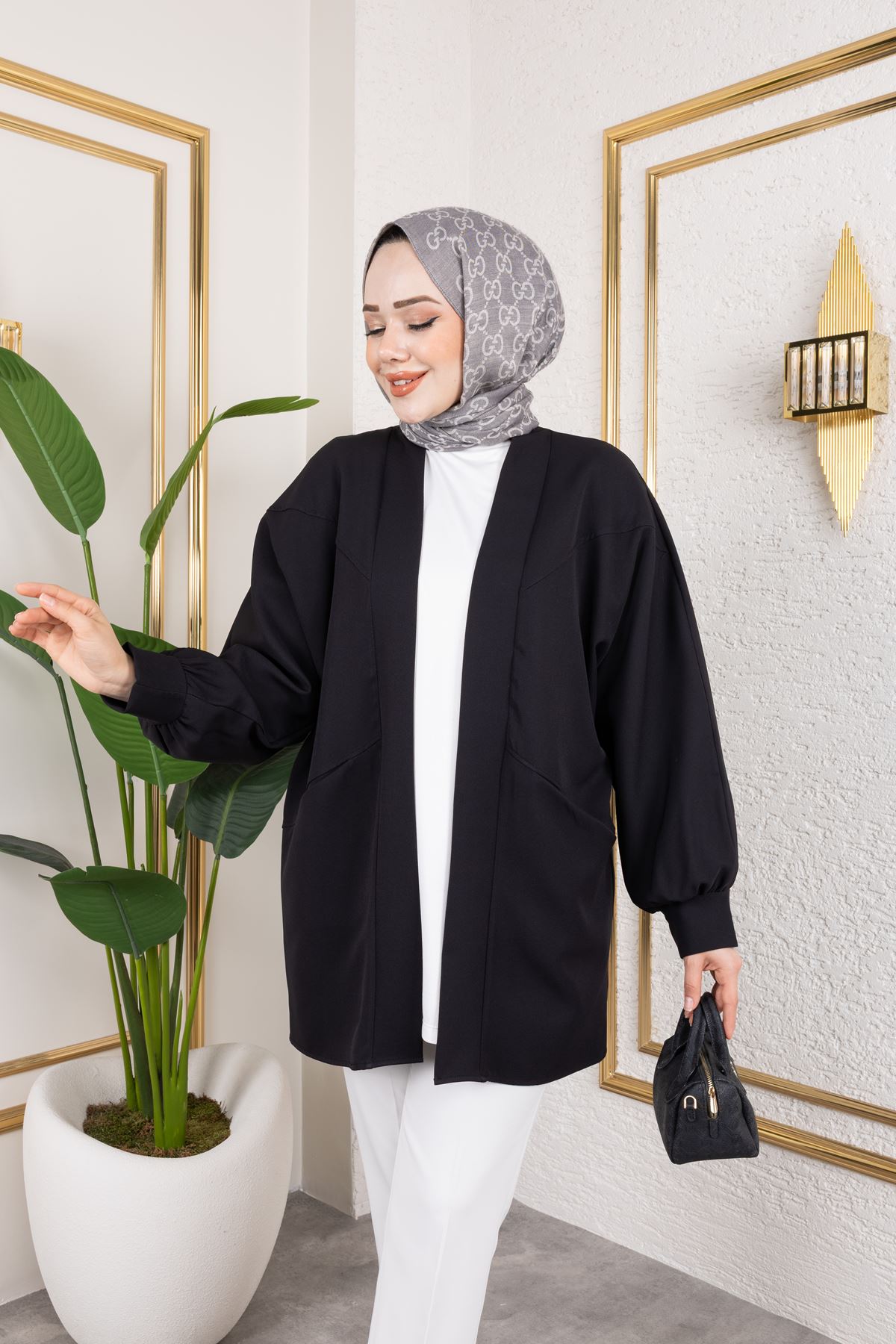 Cep Detay Atlas Hırka-Siyah