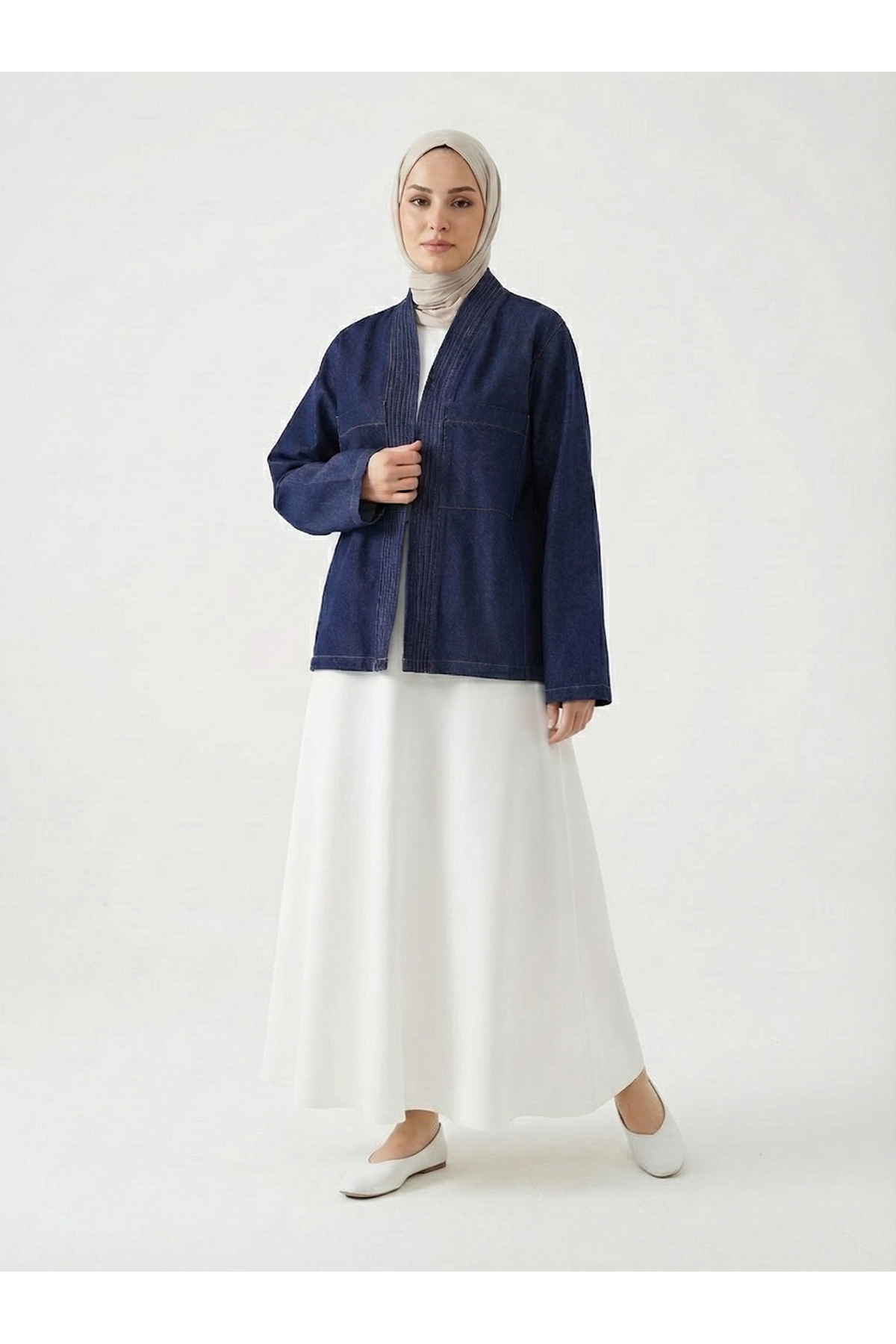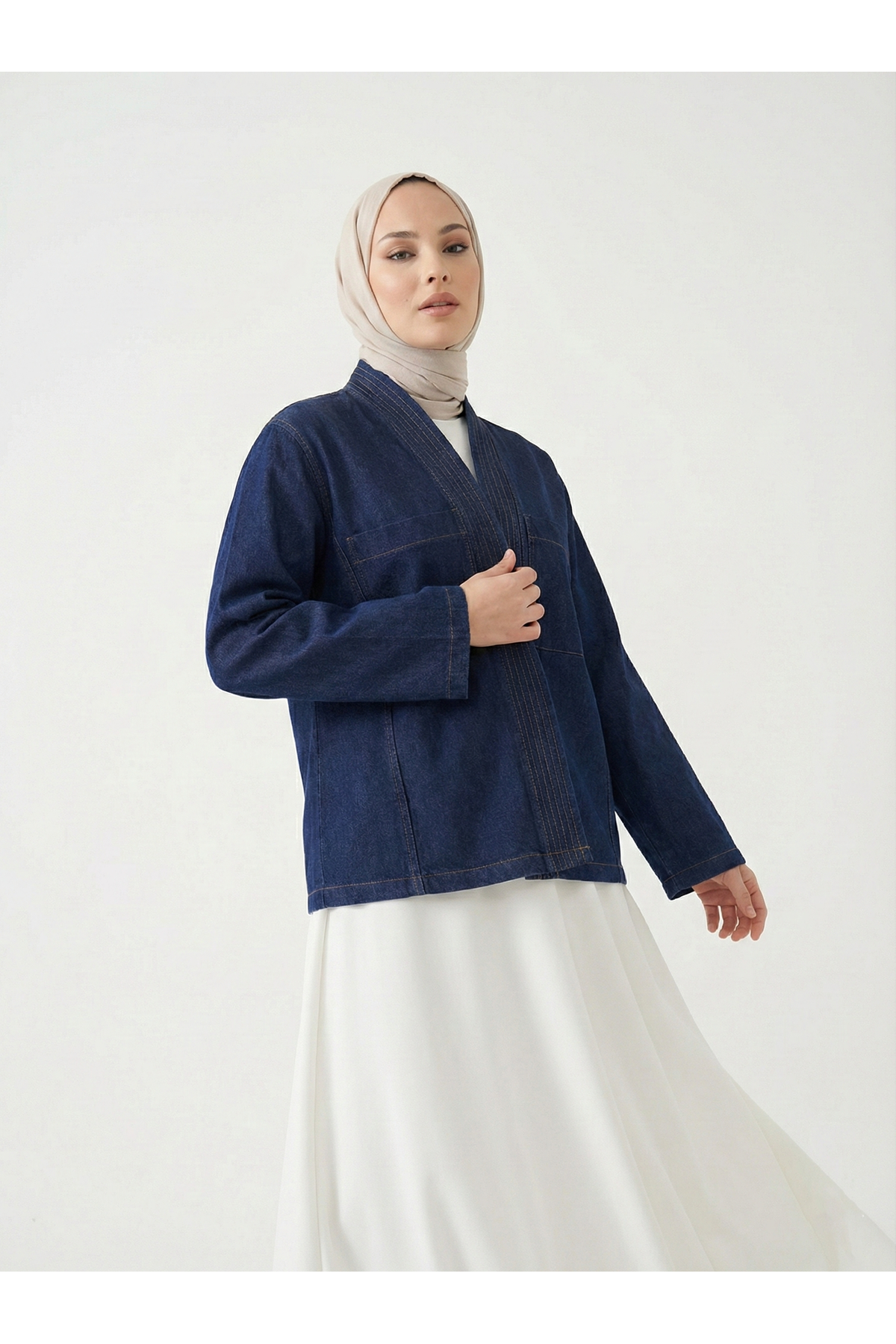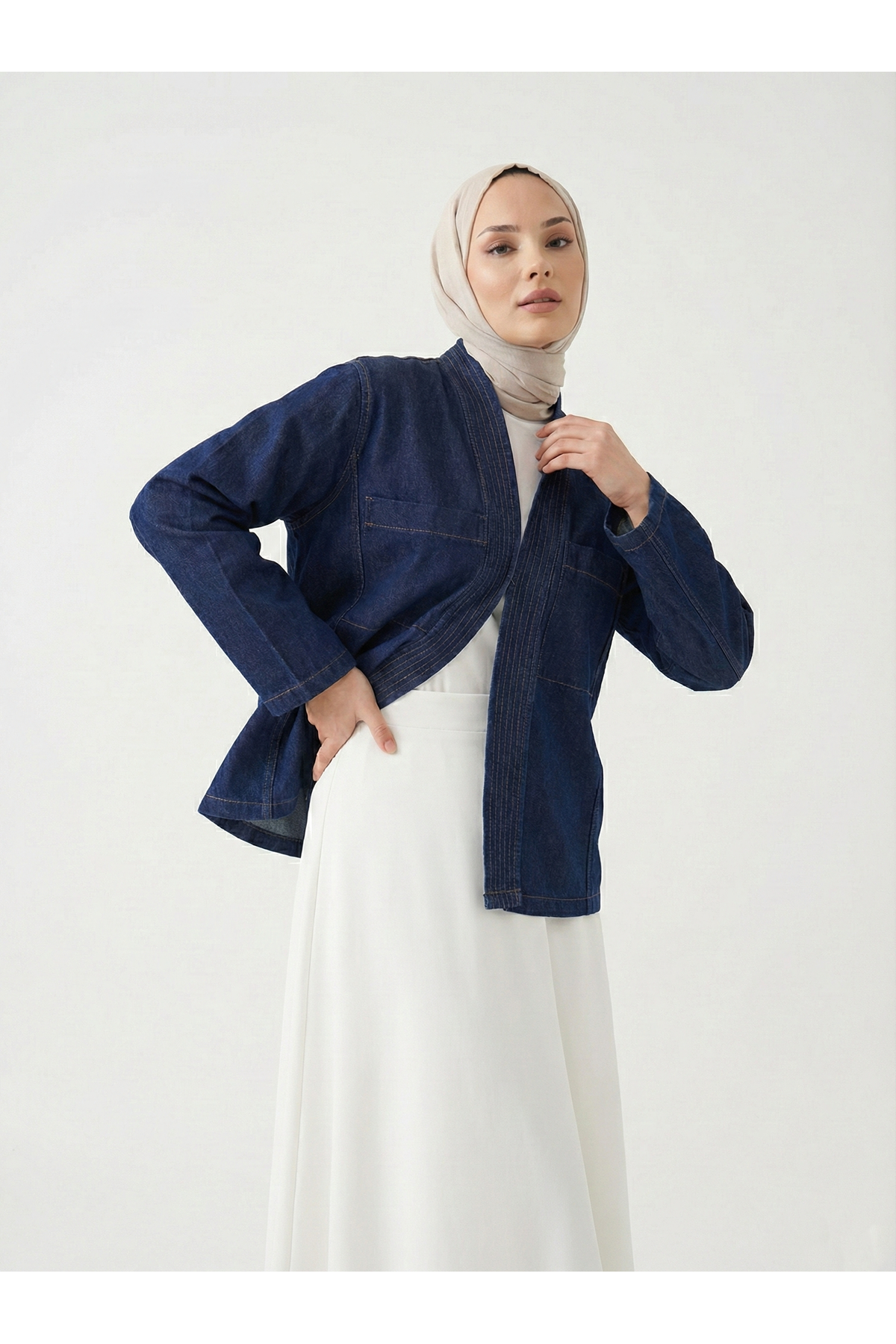 Cep Detaylı Sıra Dikişli Kot Ceket