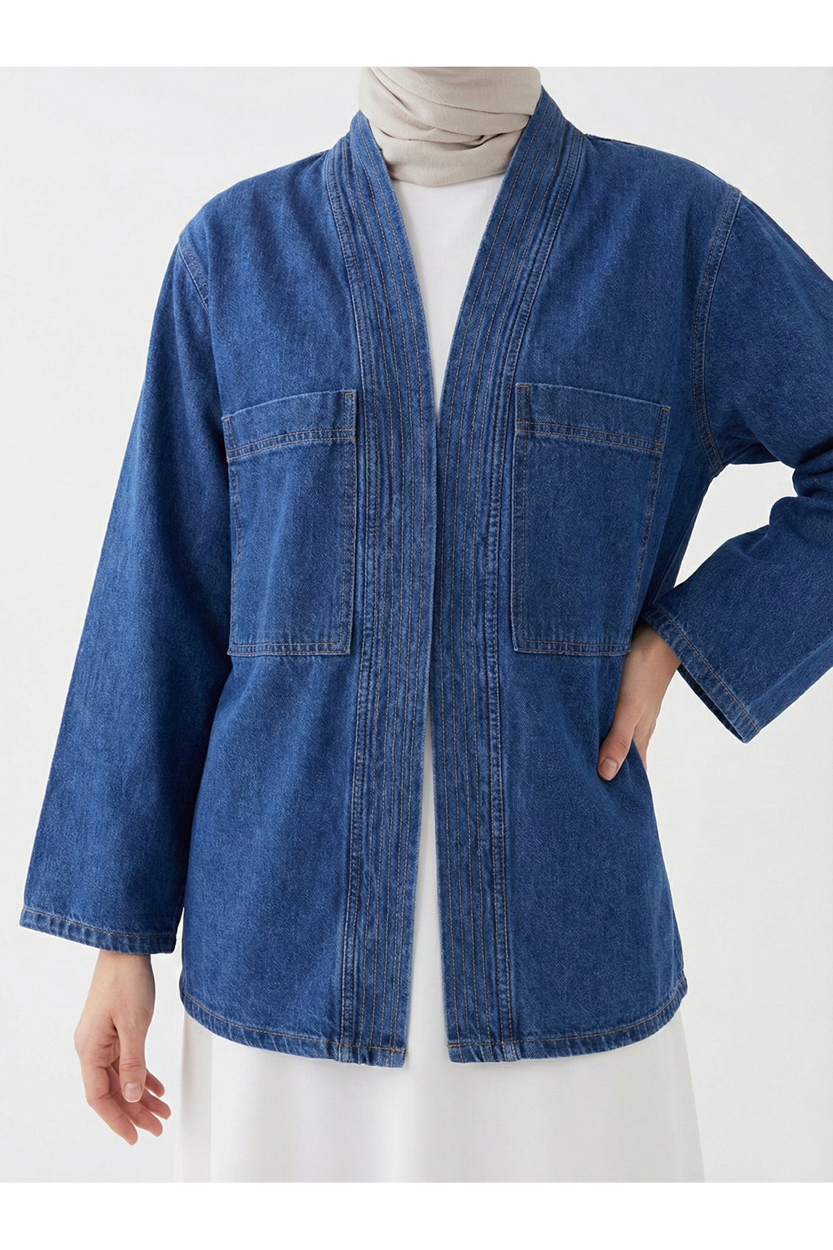 Cep Detaylı Sıra Dikişli Kot Ceket