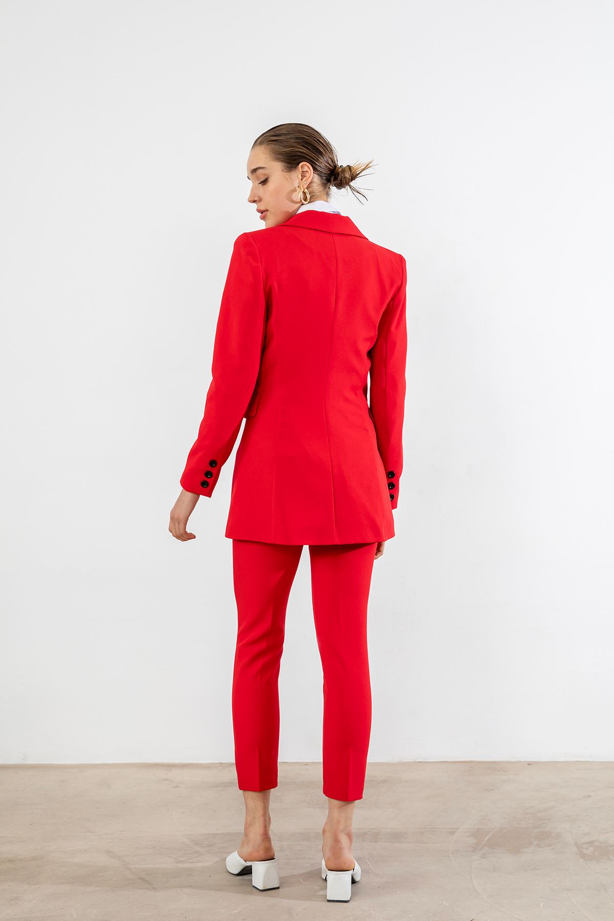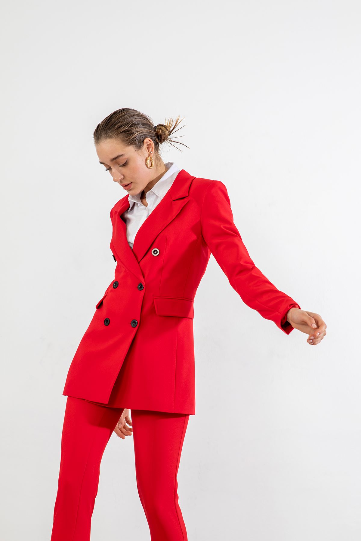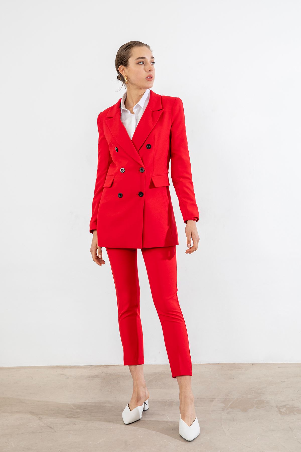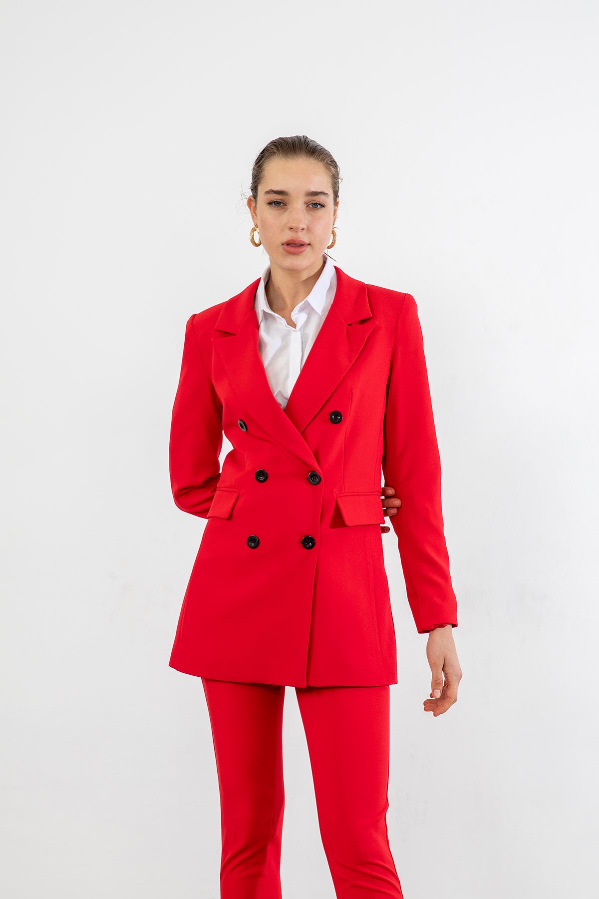 Çift Düğme Ceket Takım-Kırmızı