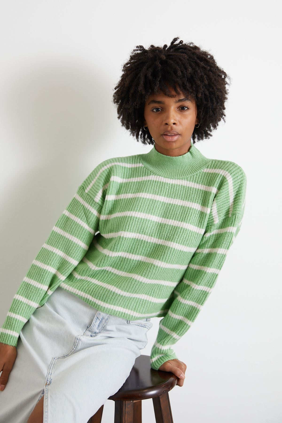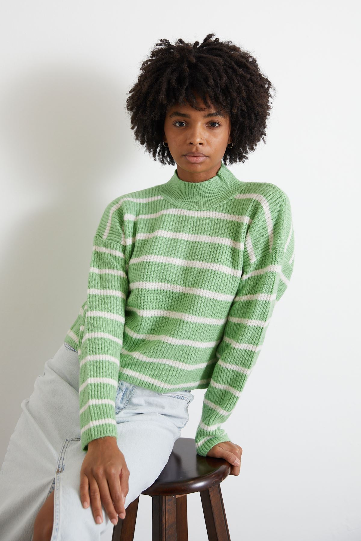 Çizgili Yarım Balıkçı Crop-Fıstık Yeşili
