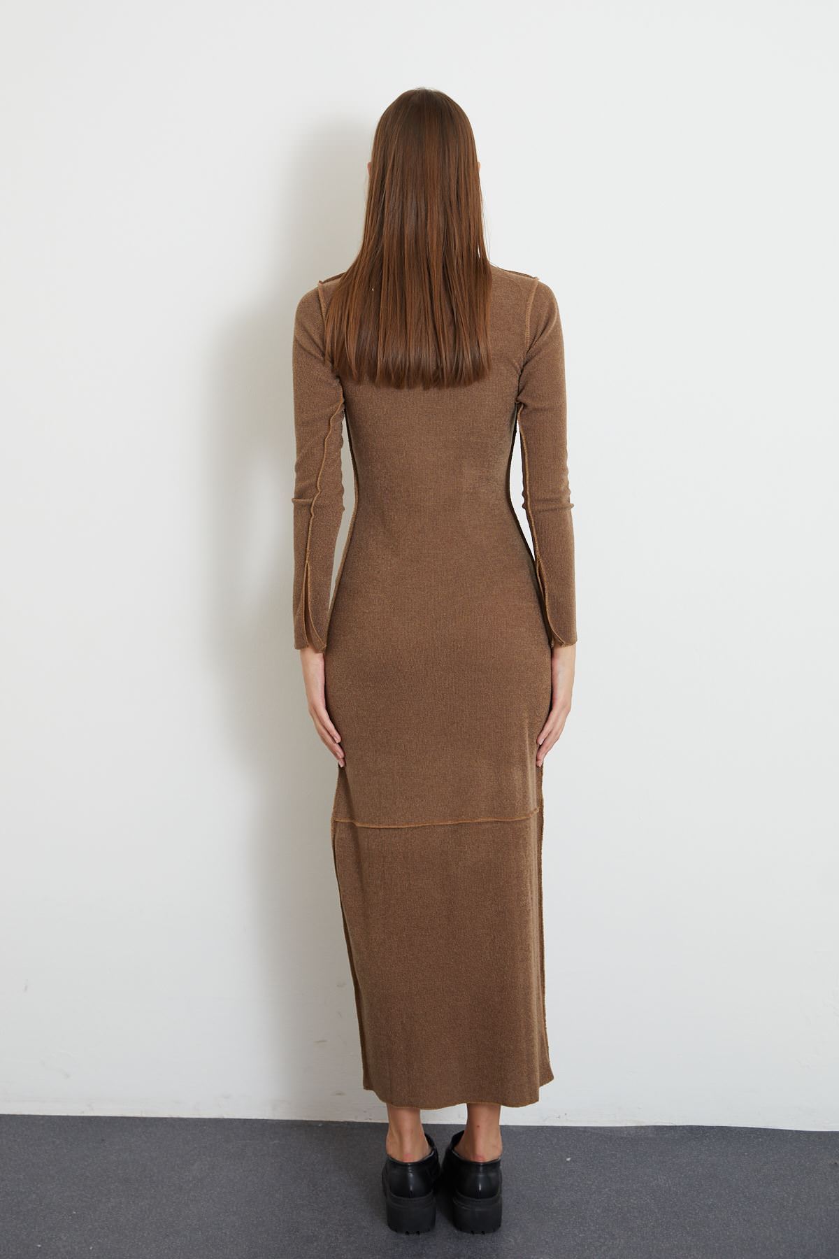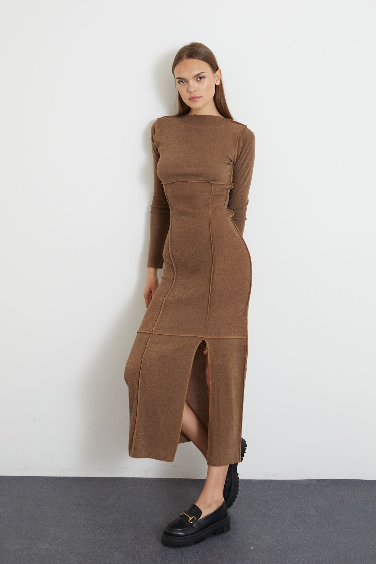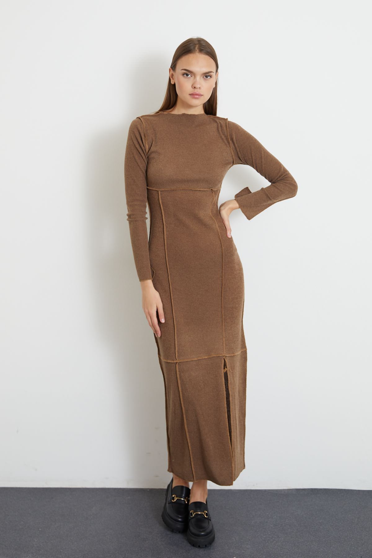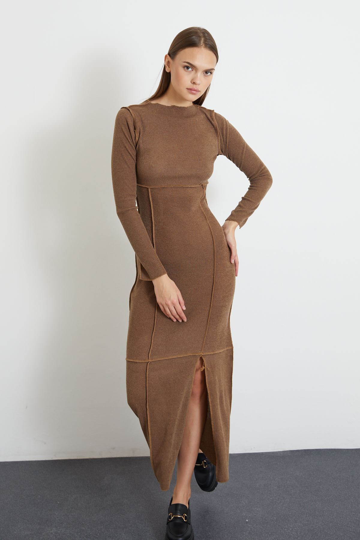 Eteği Yırtmaçlı Uzun Triko Elbise