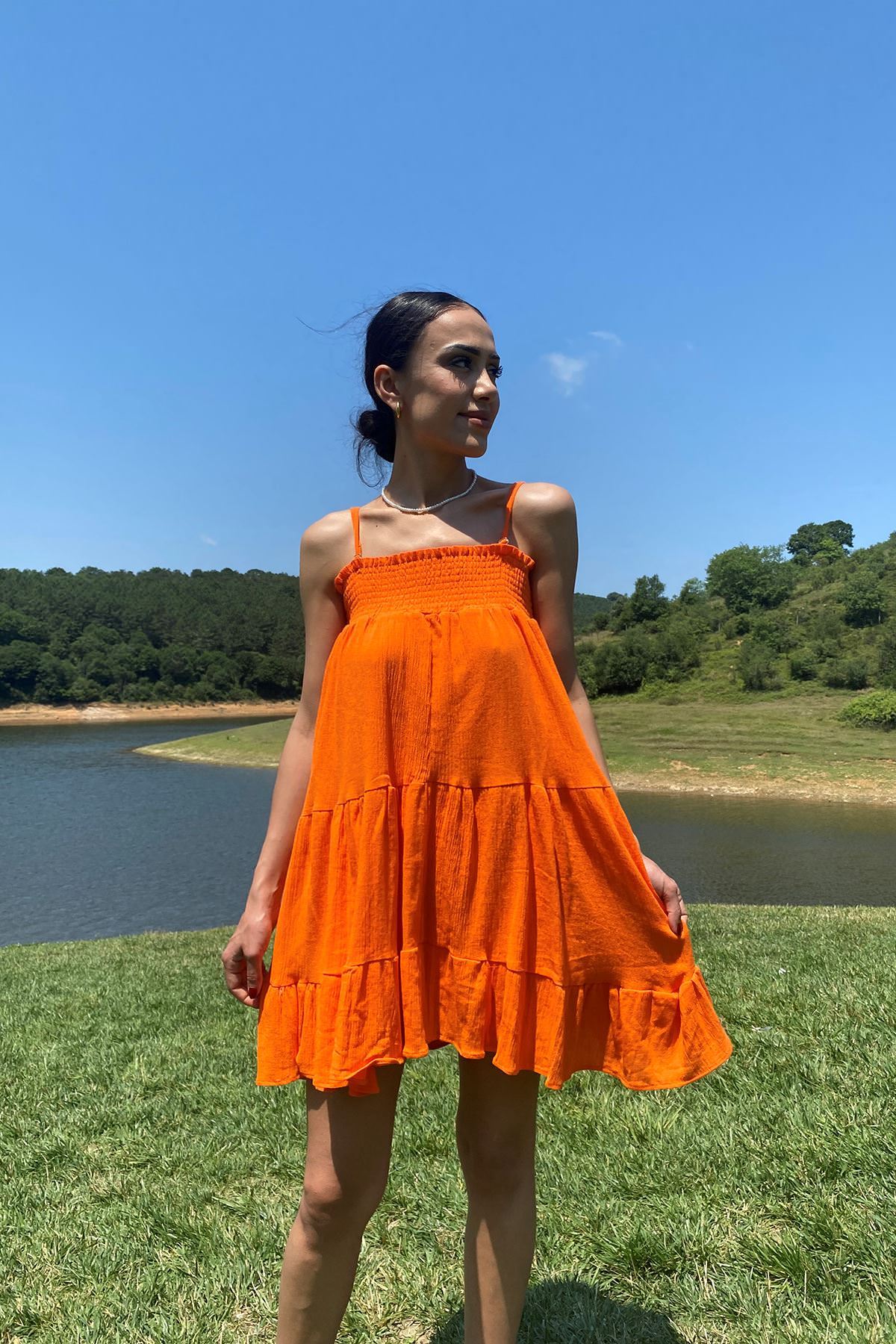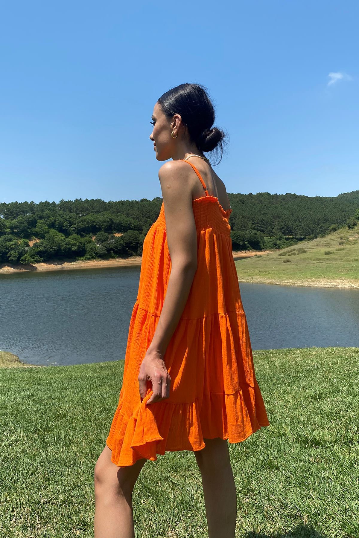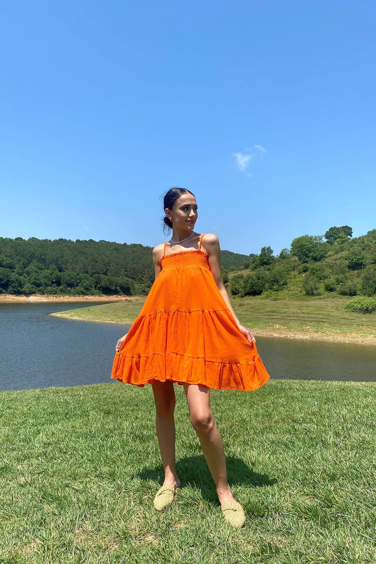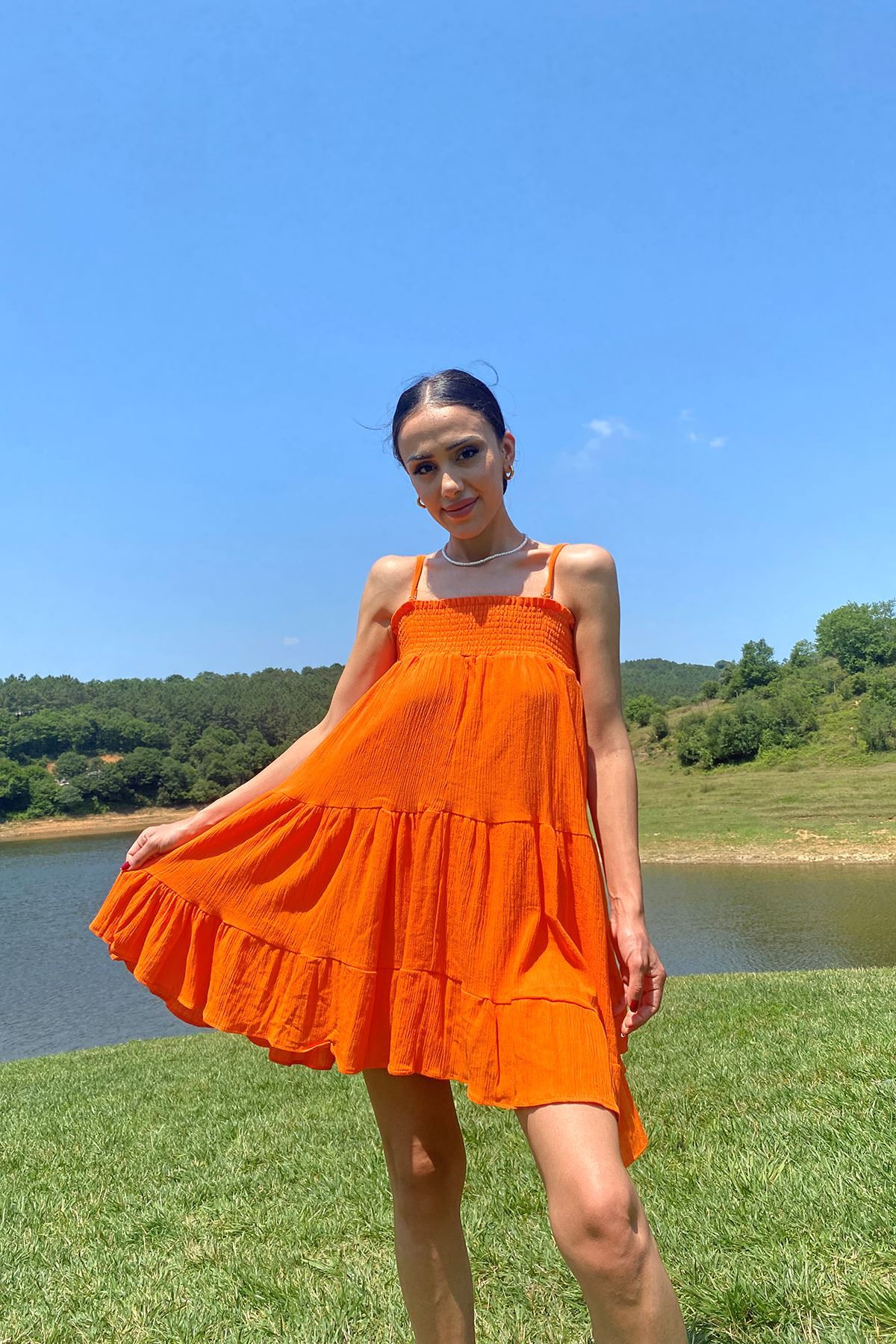 Gipeli Askılı Elbise-Oranj