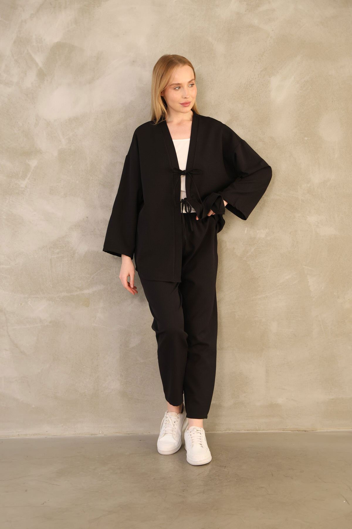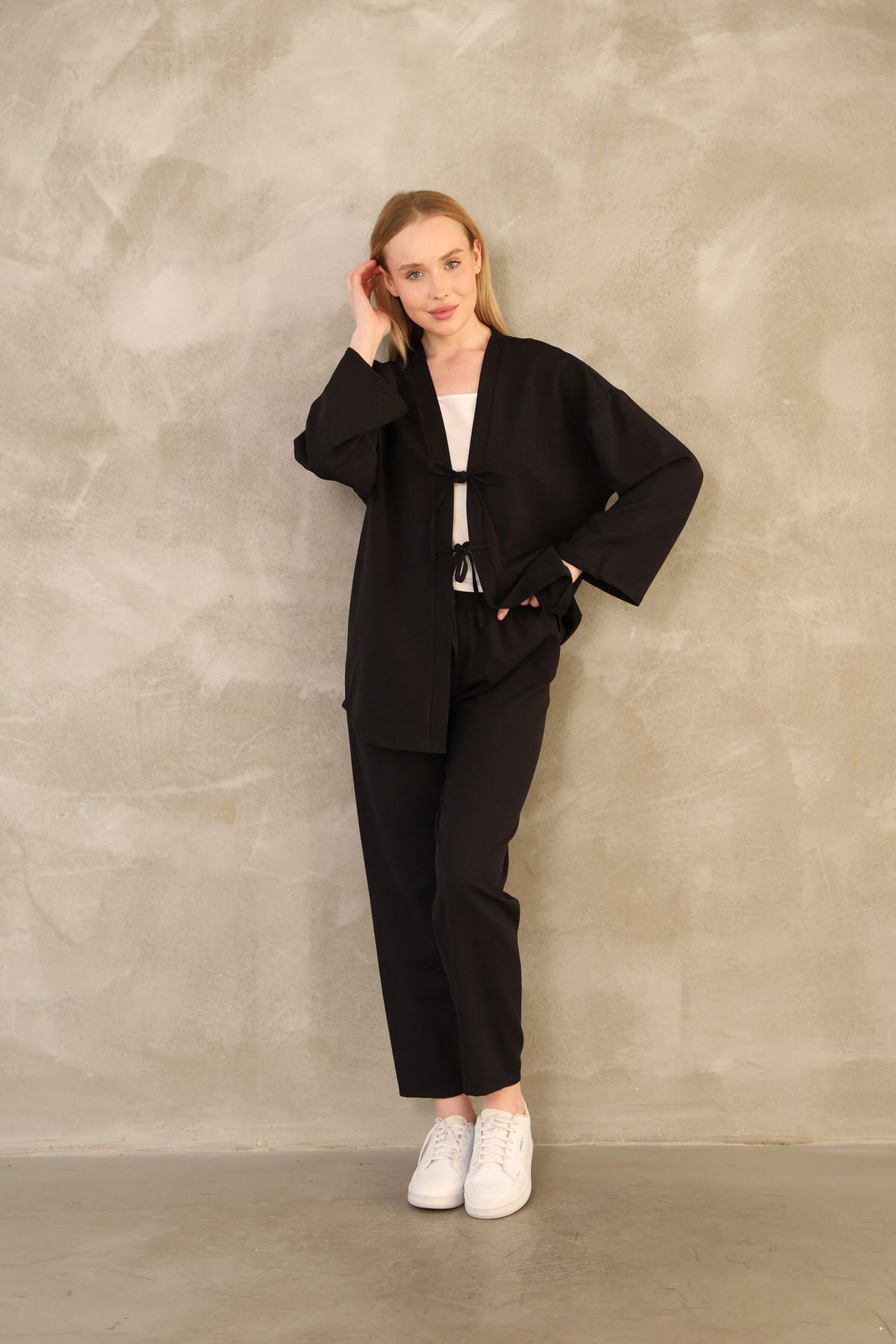 İki Bağcıklı Pantolonlu Takım-Siyah