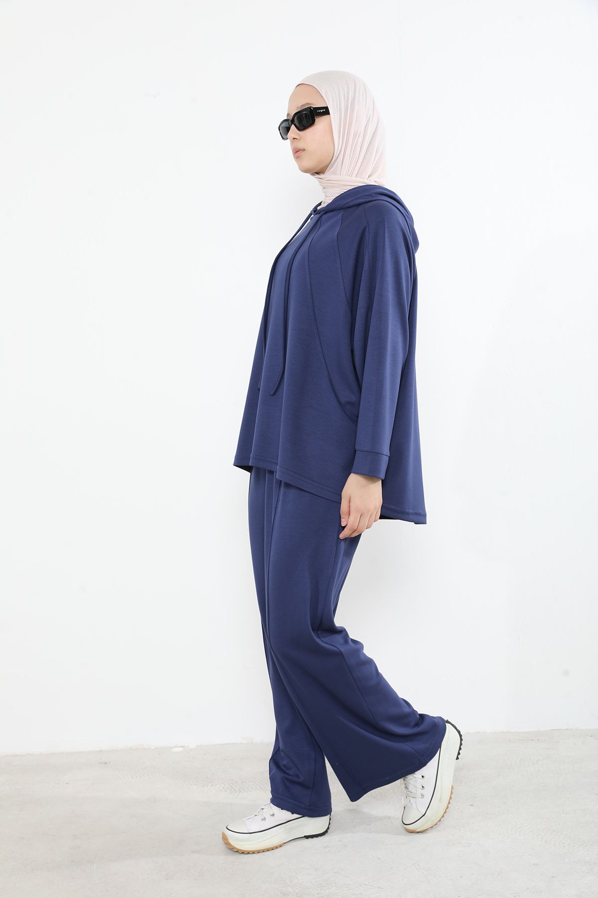 Kapşon Detay Pantolonlu Takım-Lacivert