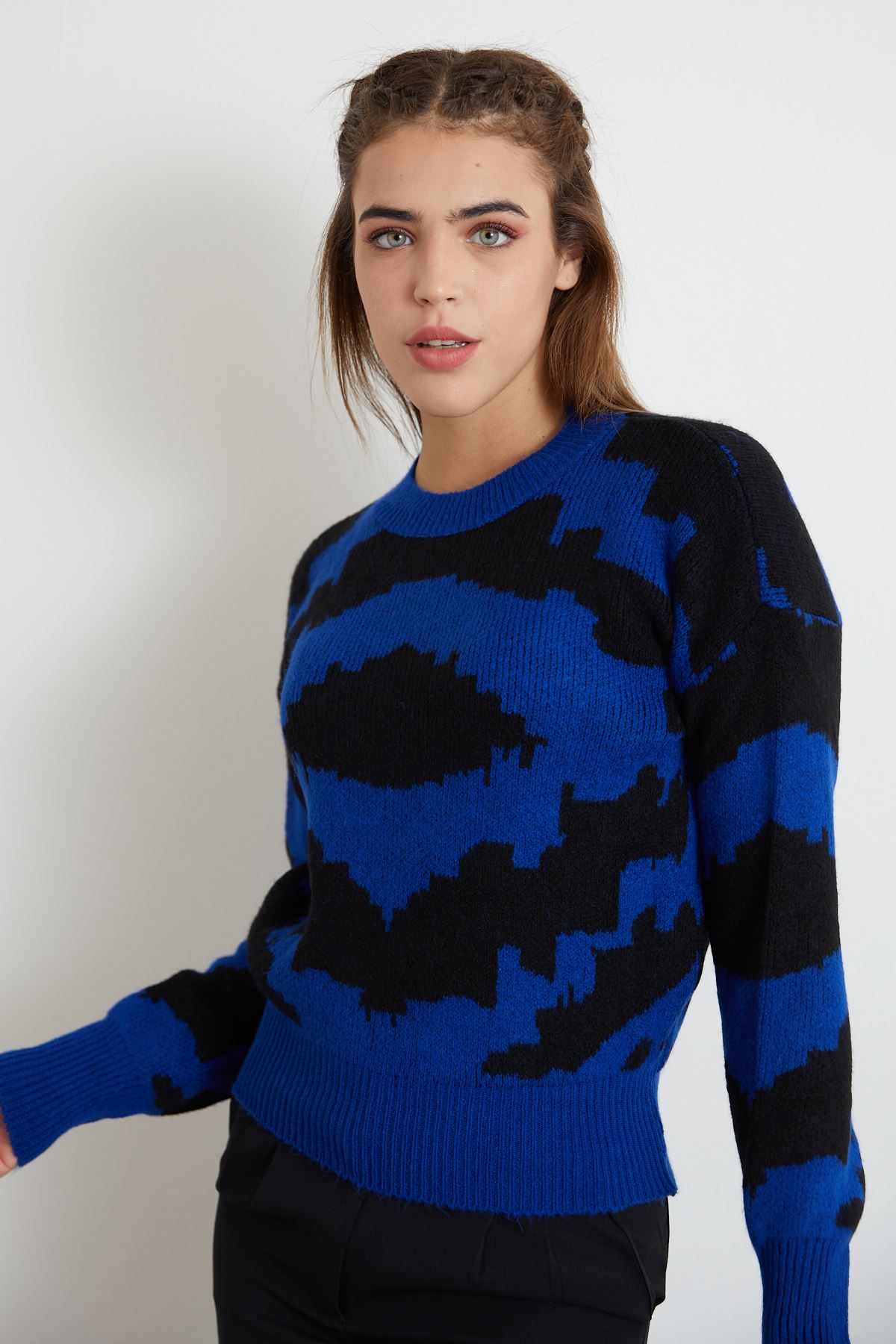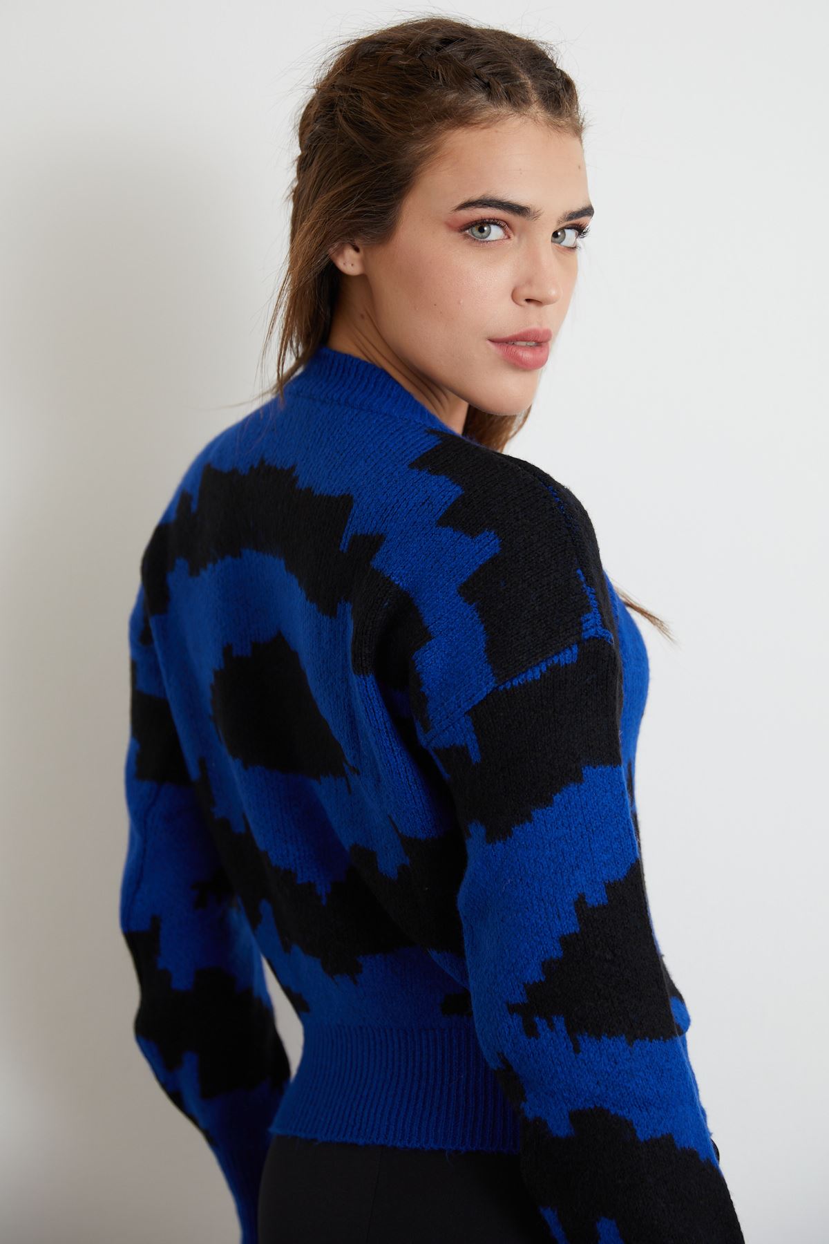 Desenli Crop Kazak-Saks