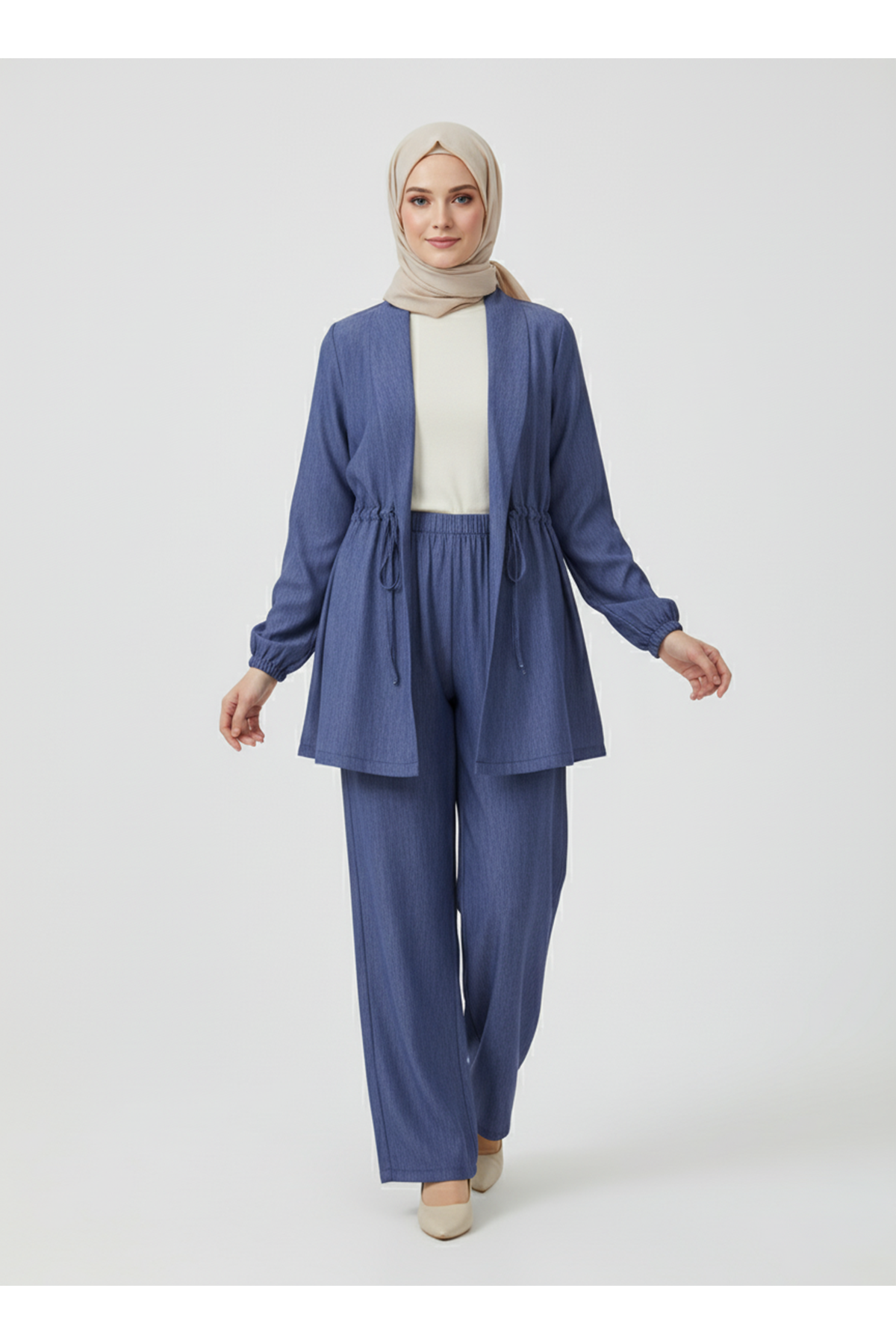 Kol Apolet Bel Tünel Pantolonlu Takım-Mavi
