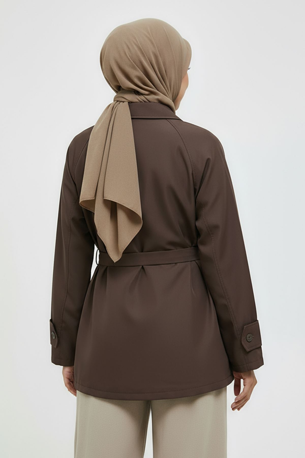 Kol Apolet Detay Kısa Trençkot-Kahve