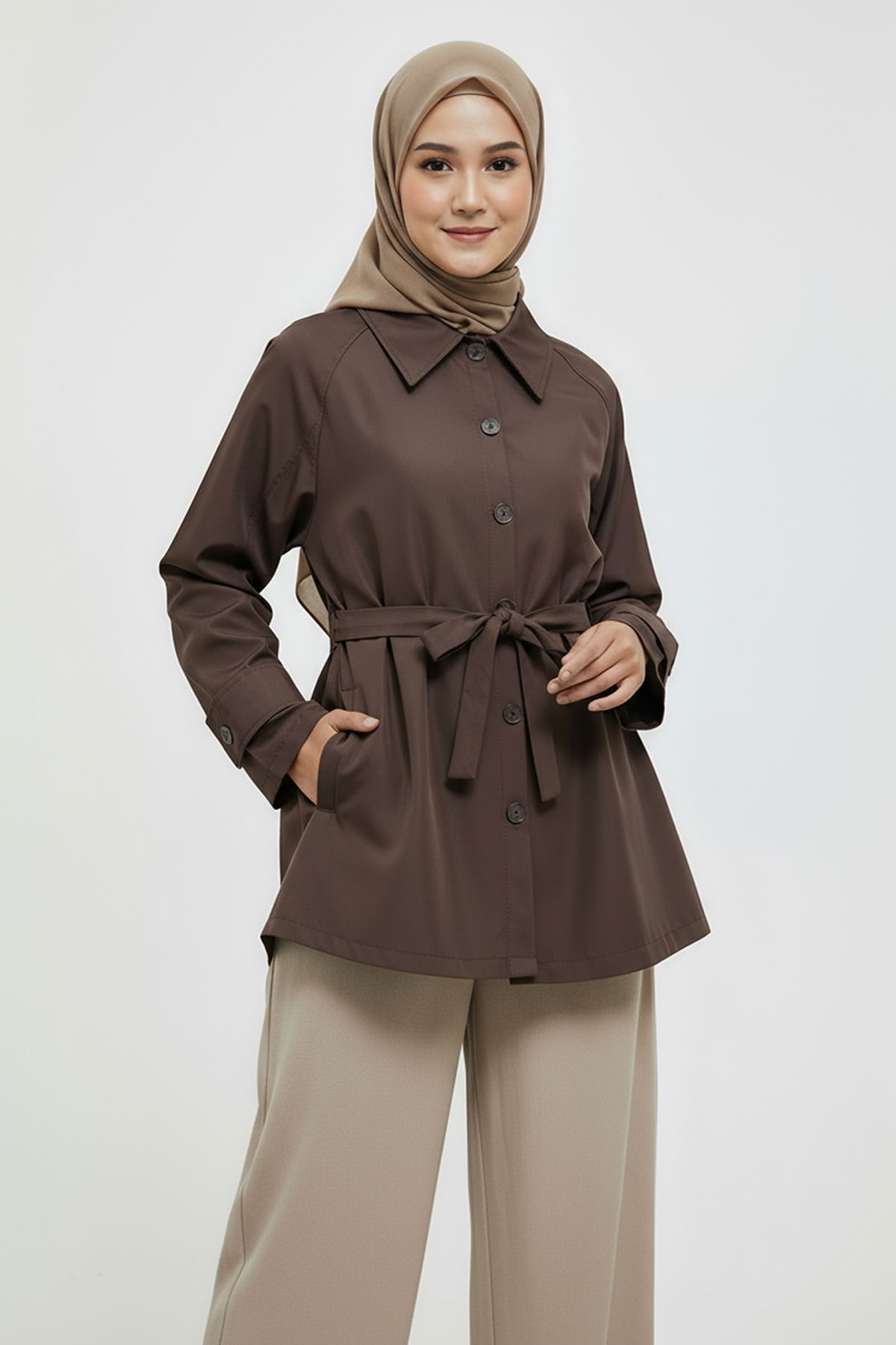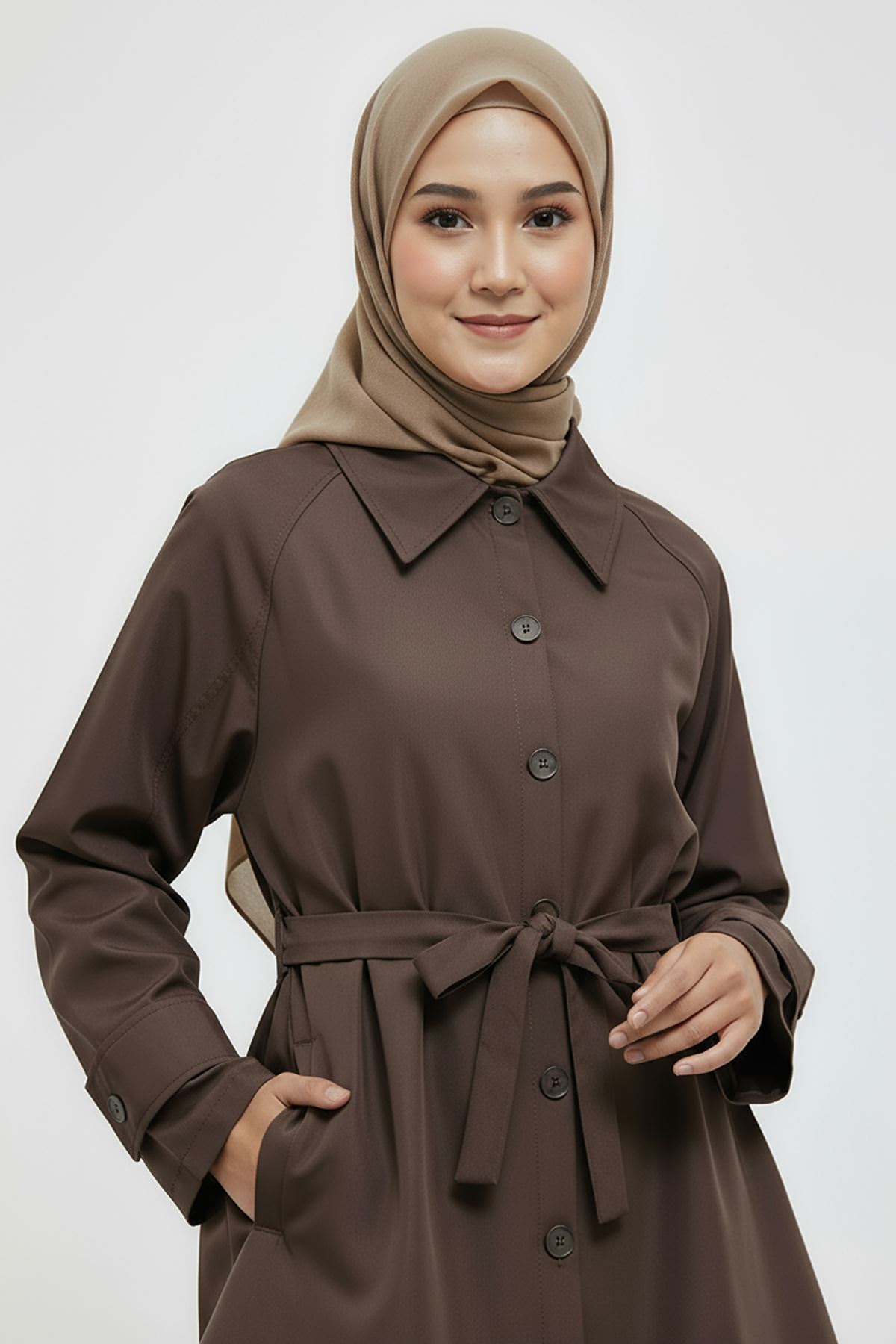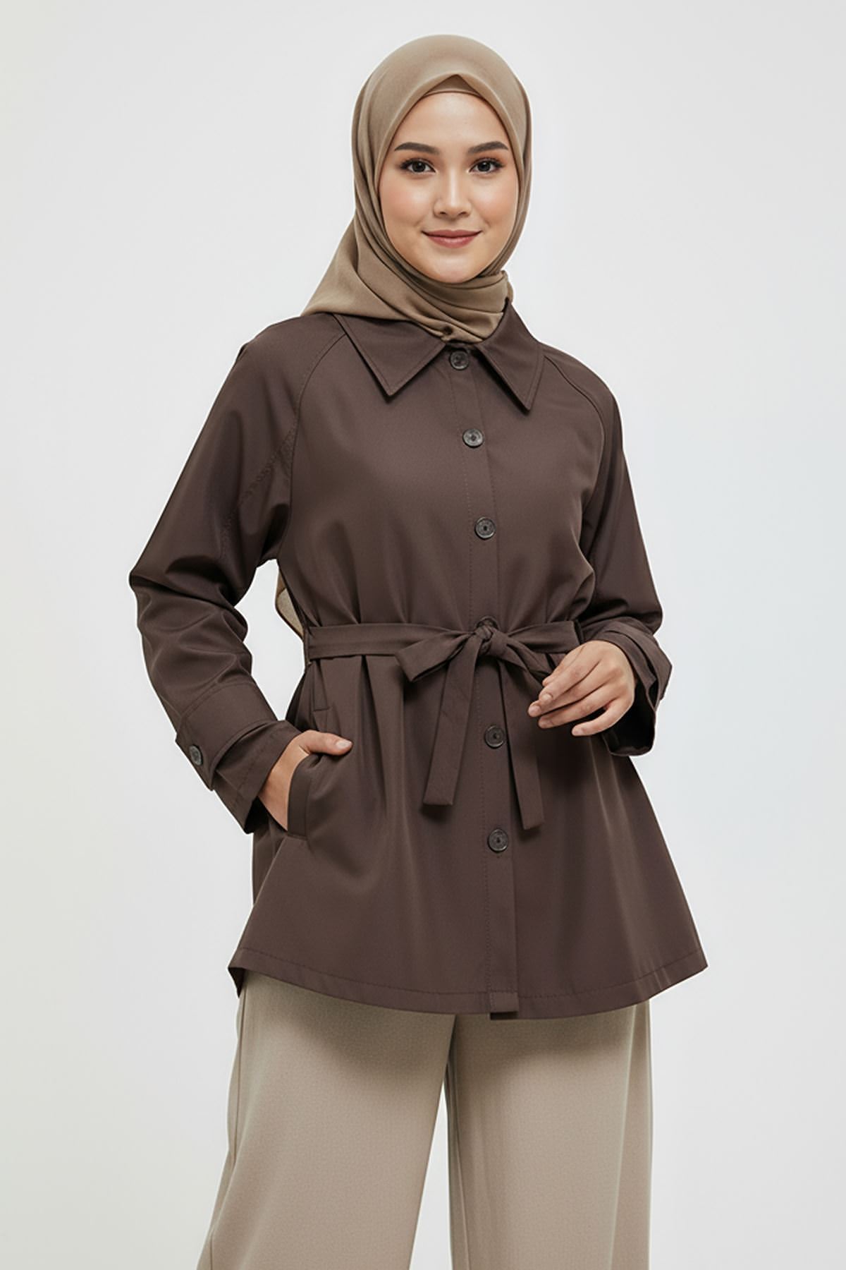 Kol Apolet Detay Kısa Trençkot-Kahve