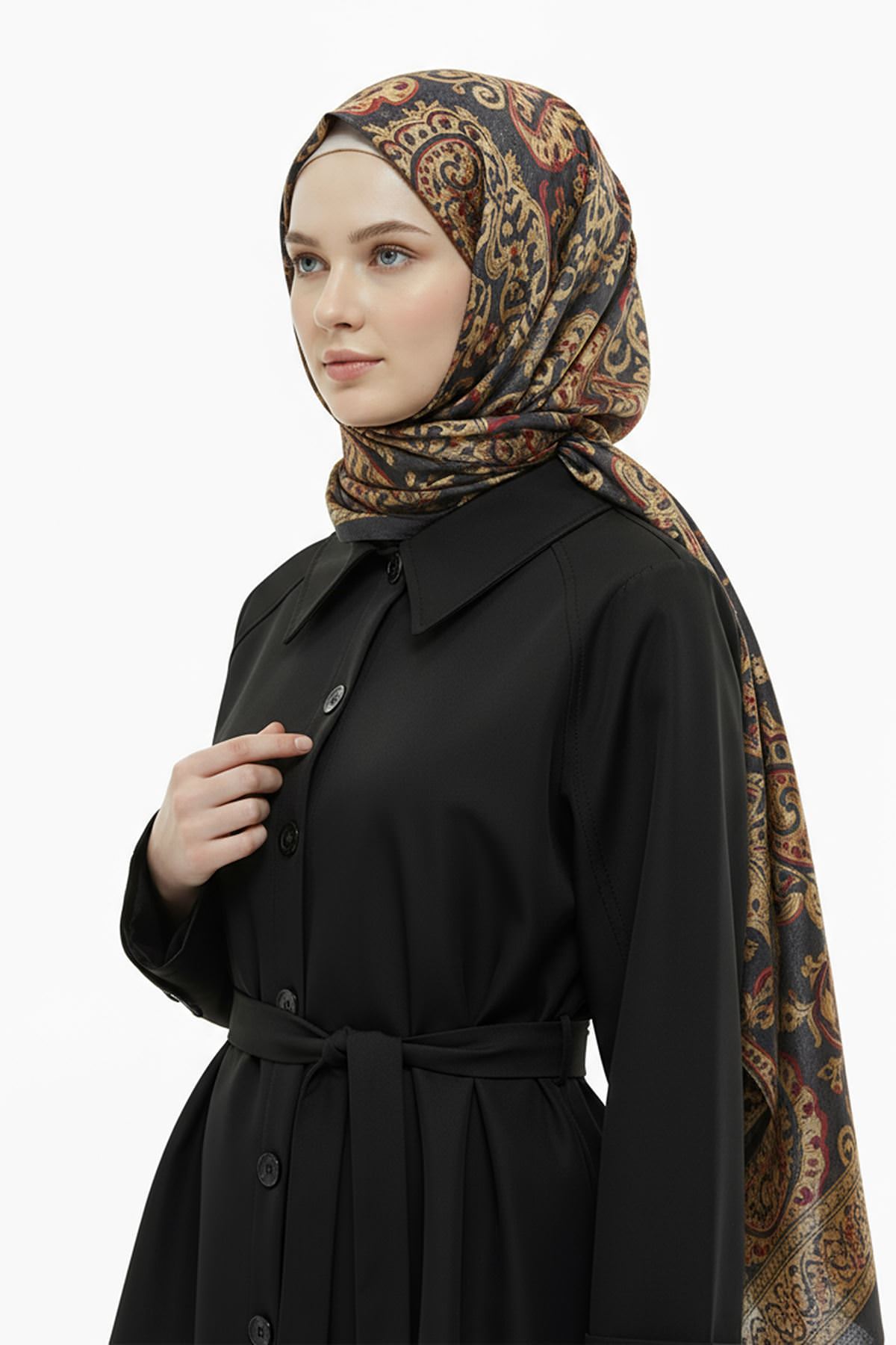 Düğmeli Yırtmaçlı Elbise-Siyah