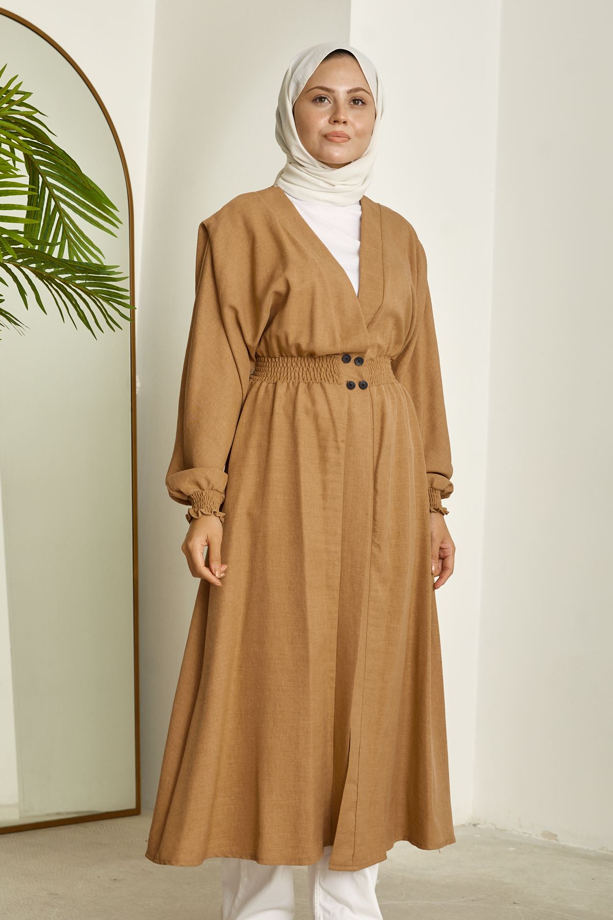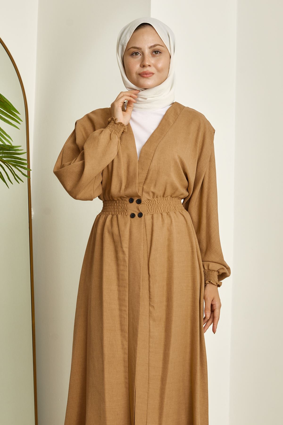Kol Ve Beli Gipe Detay Elbise-Karamel