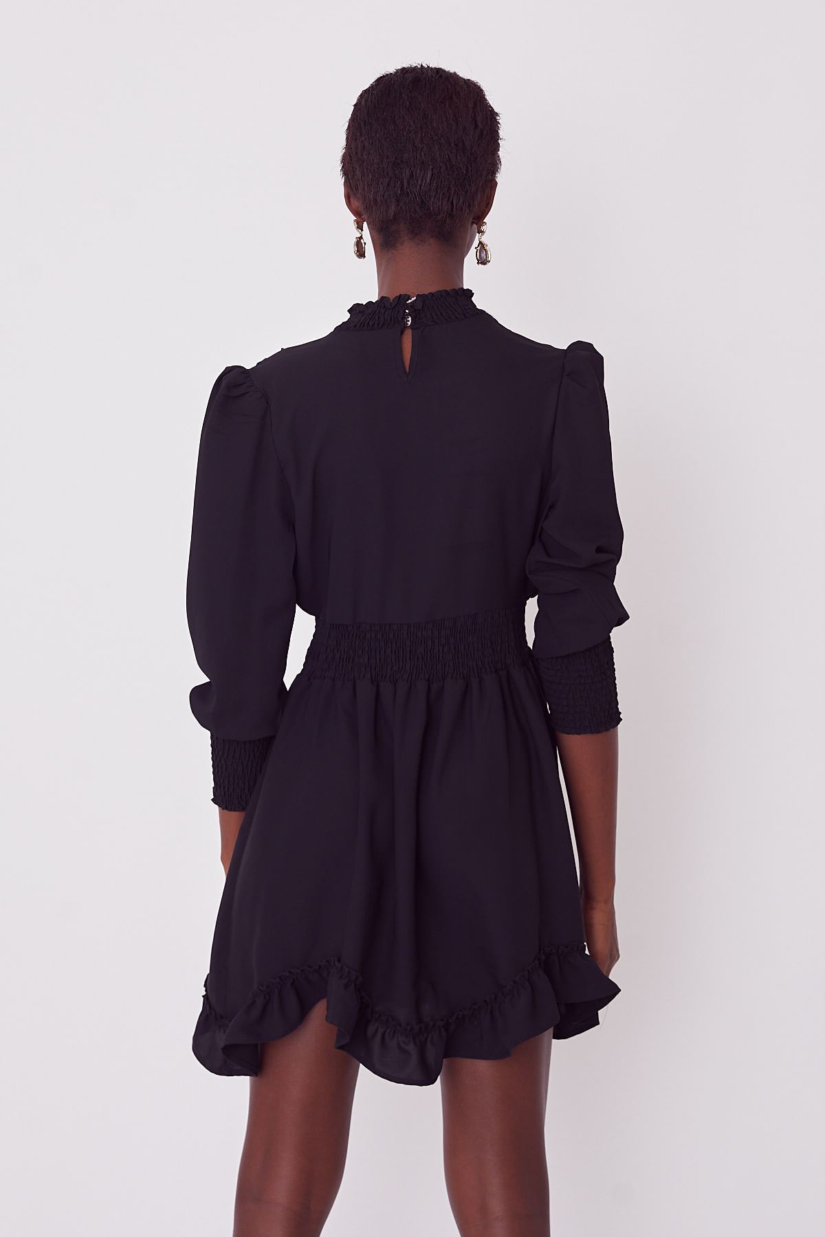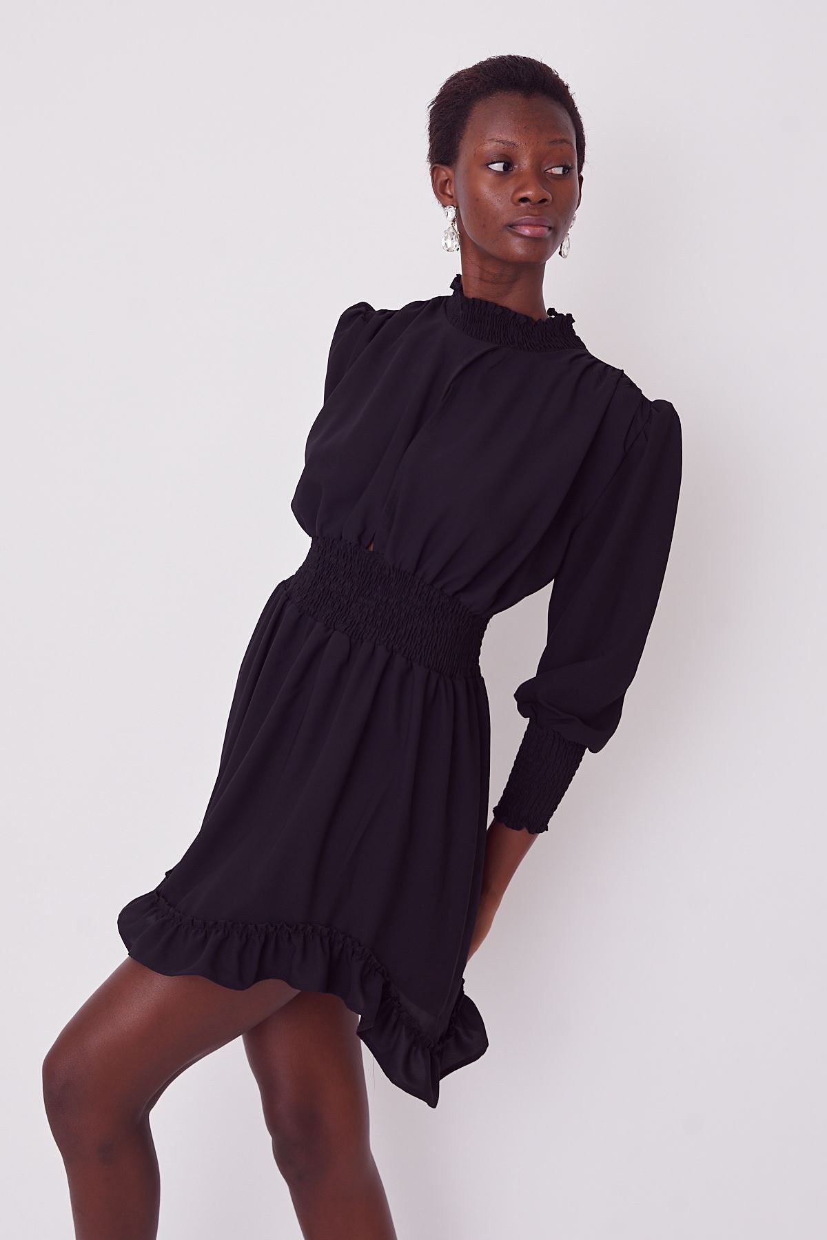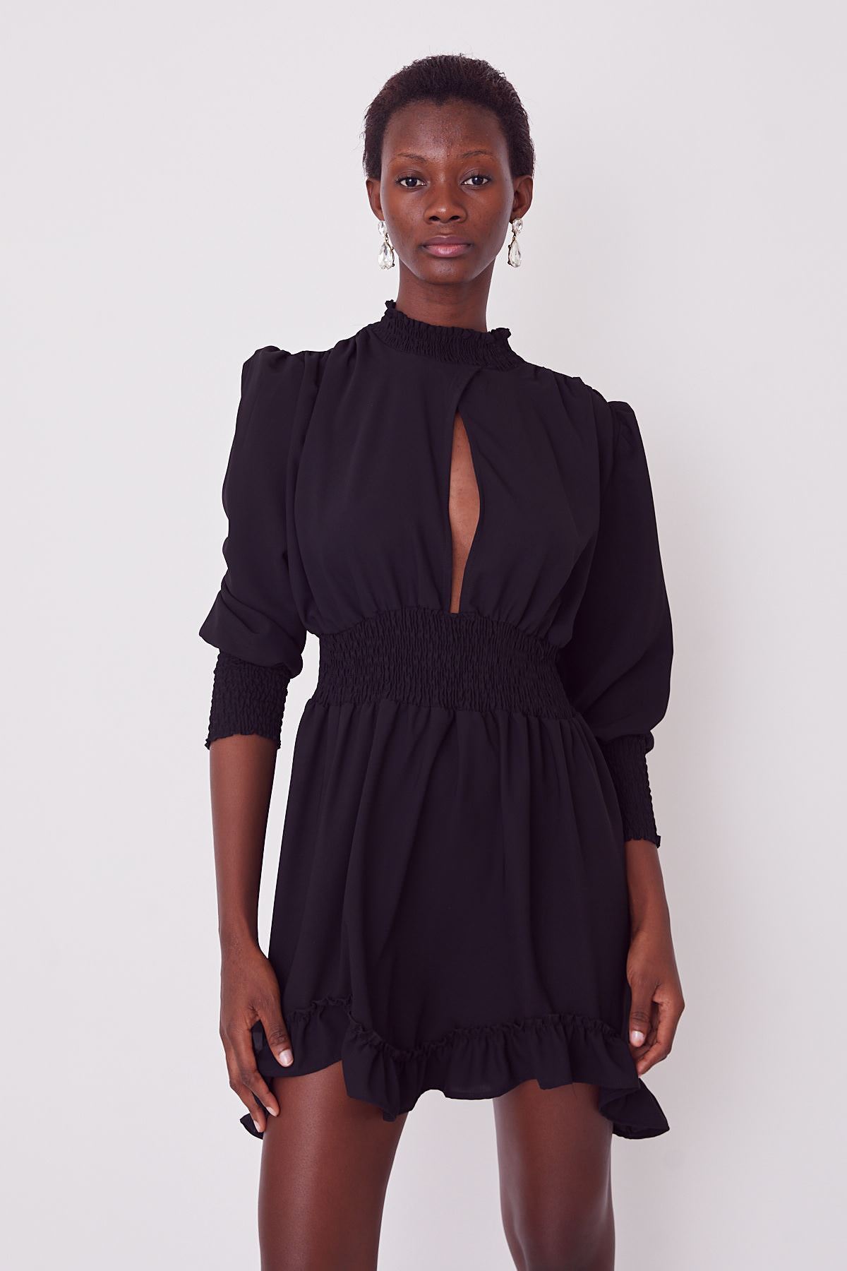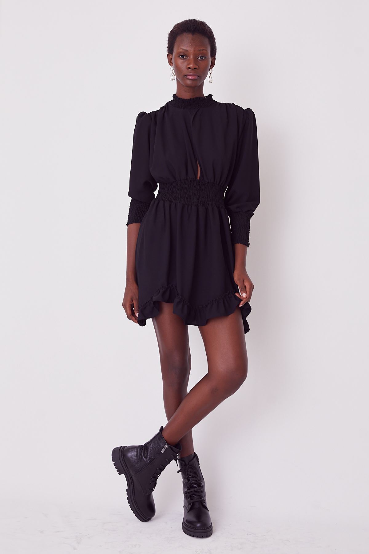 Düğmeli Yırtmaçlı Elbise-Siyah