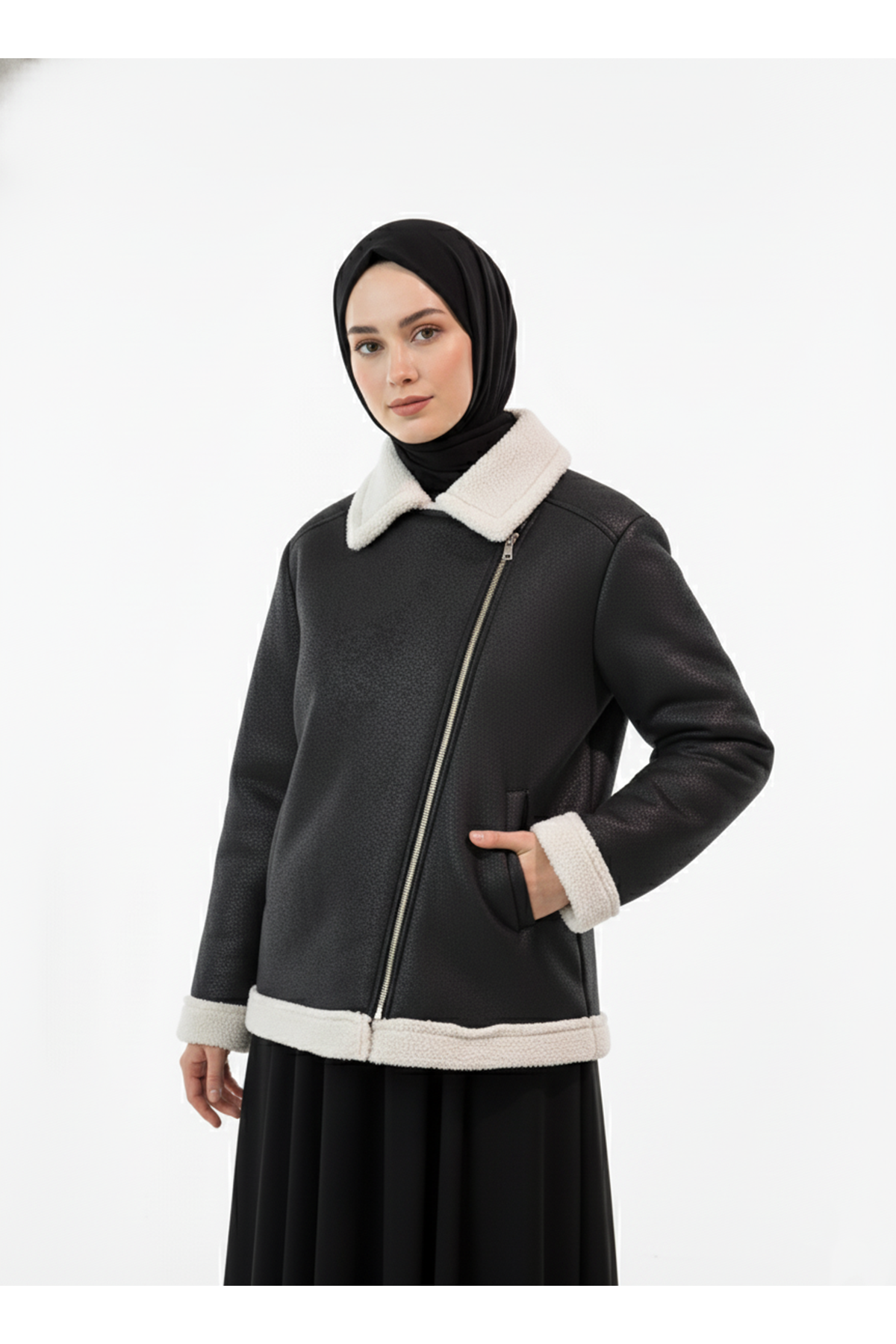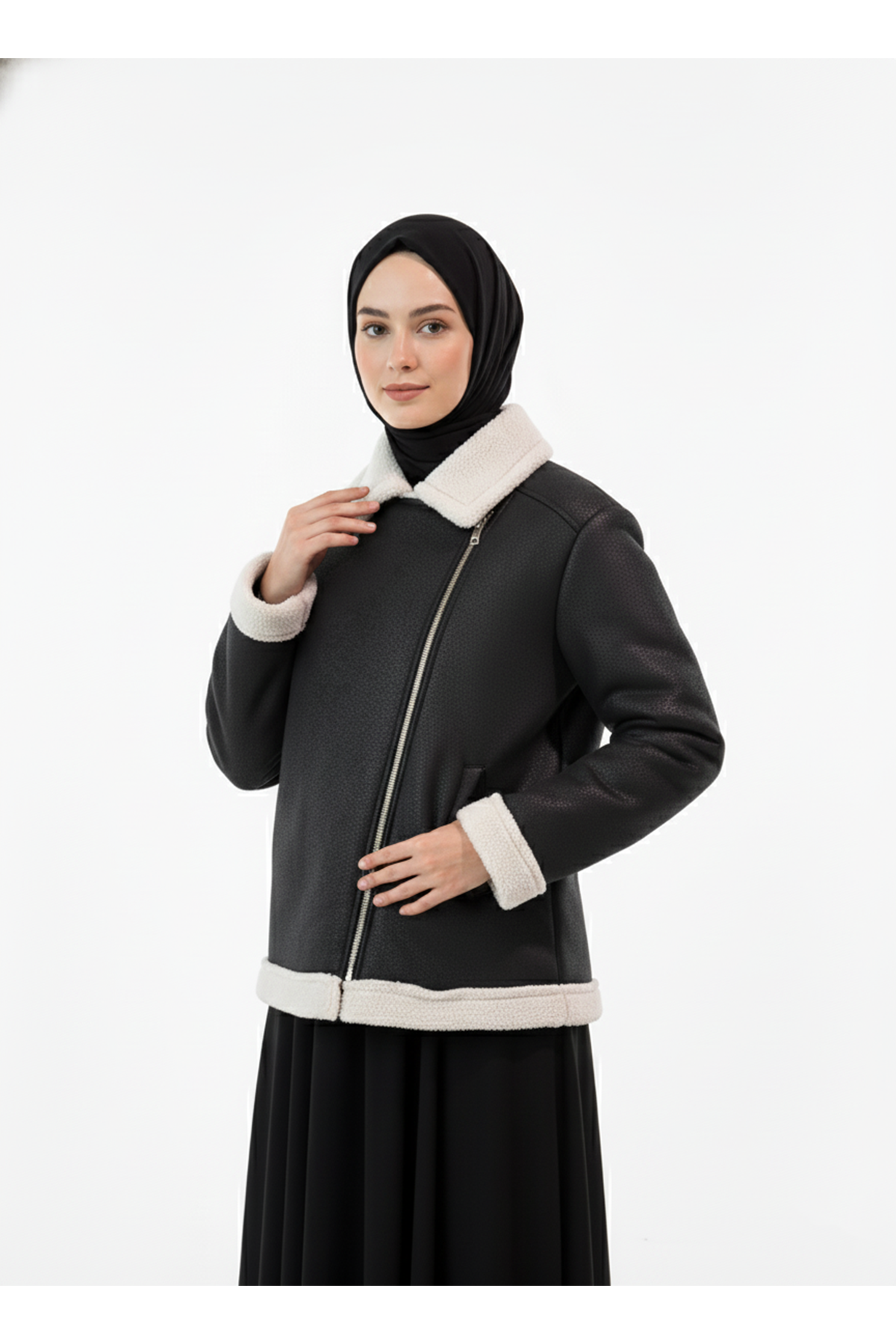 Kruvaze Metal Fermuarlı Ceket