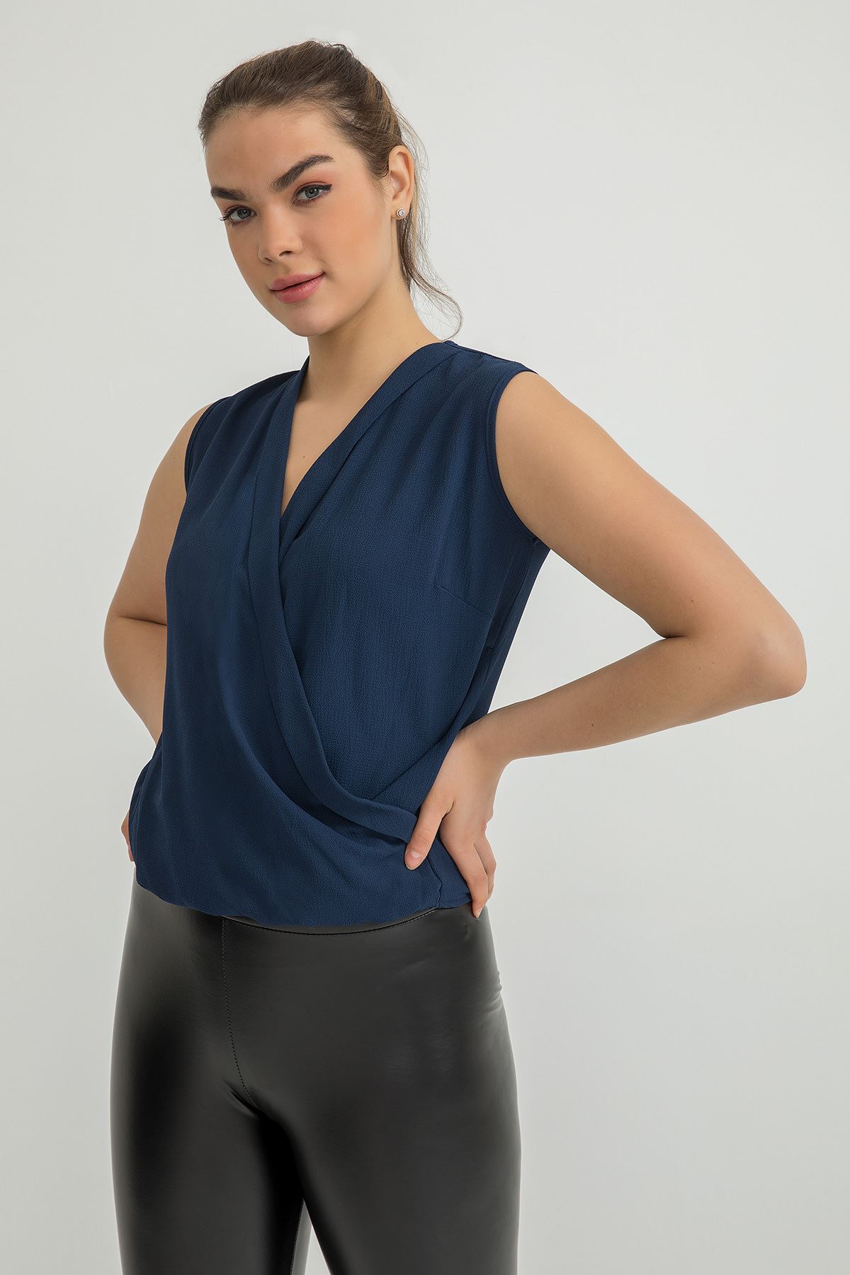 Kruvaze Yaka Bluz-Lacivert