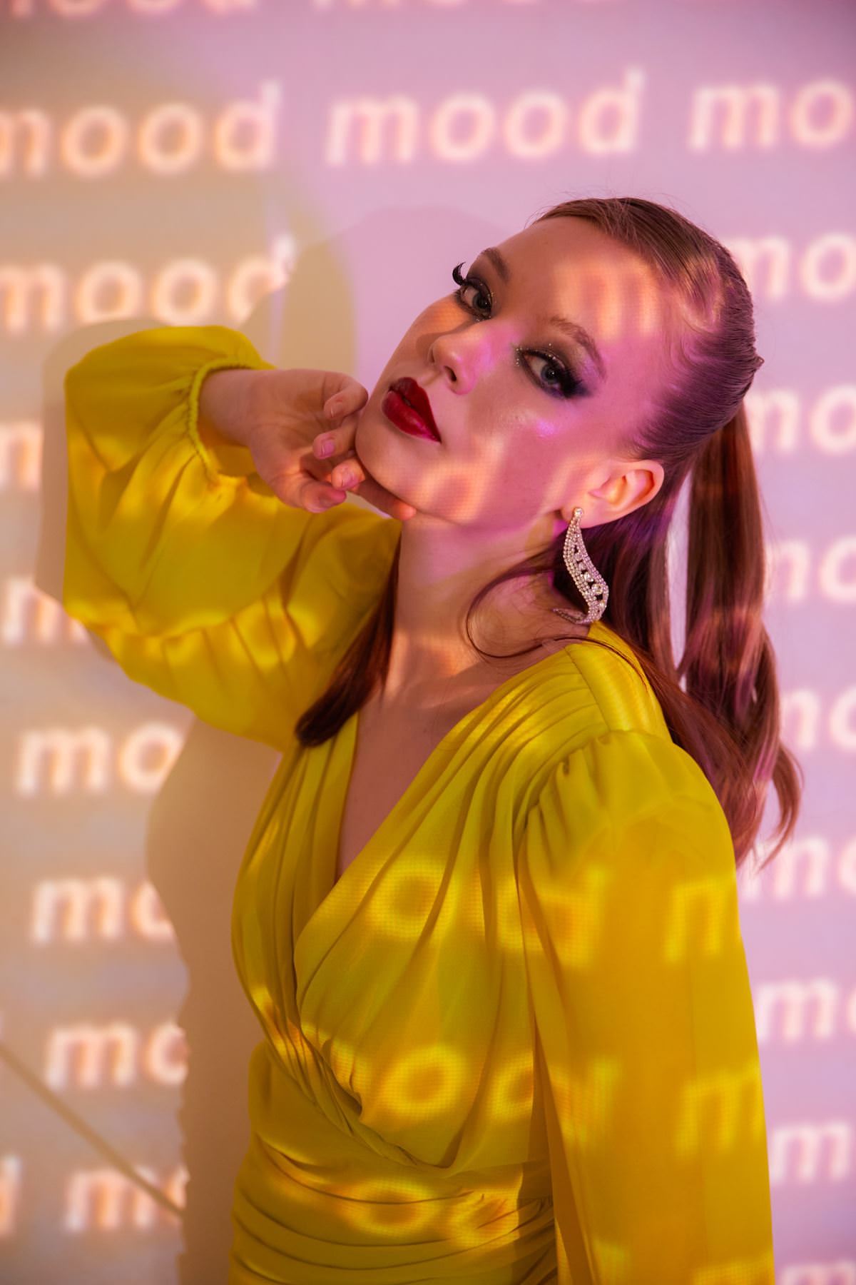 Kruvaze Yaka Büzgülü Elbise-Sarı