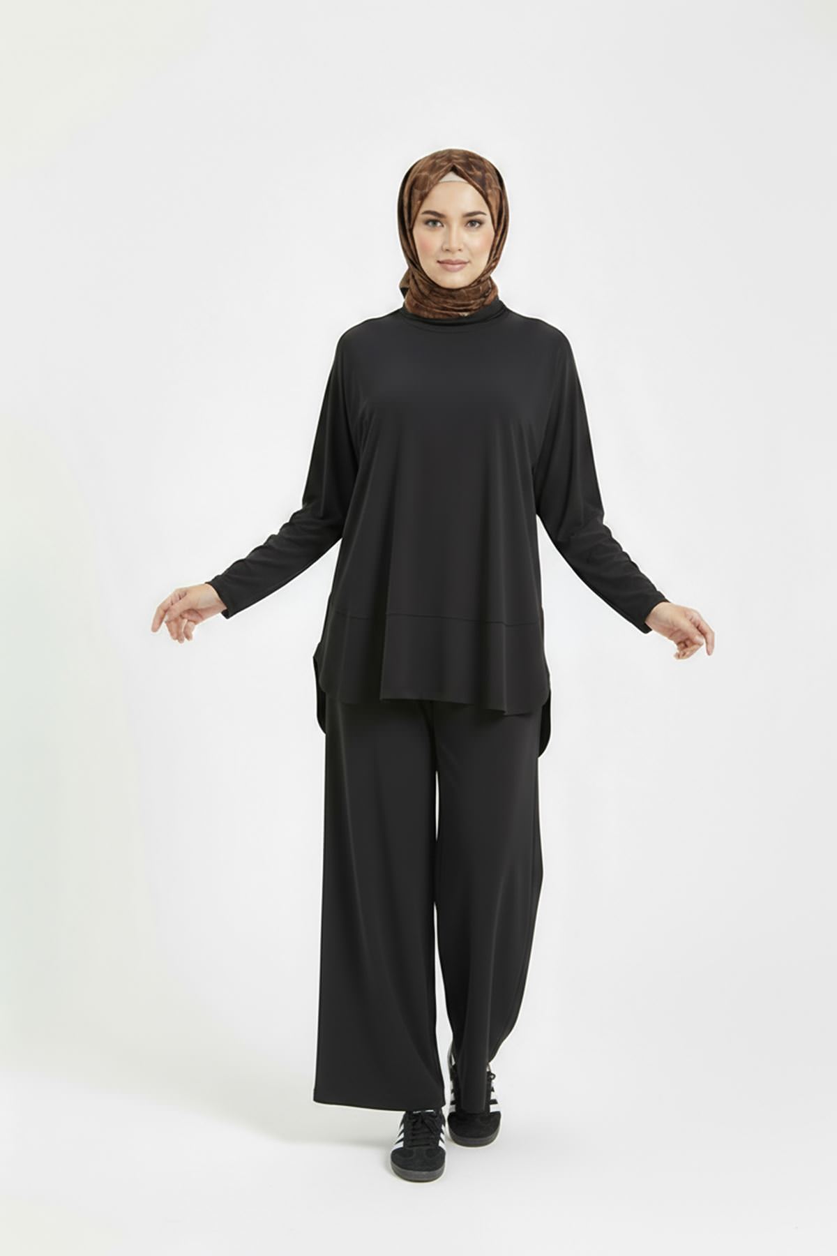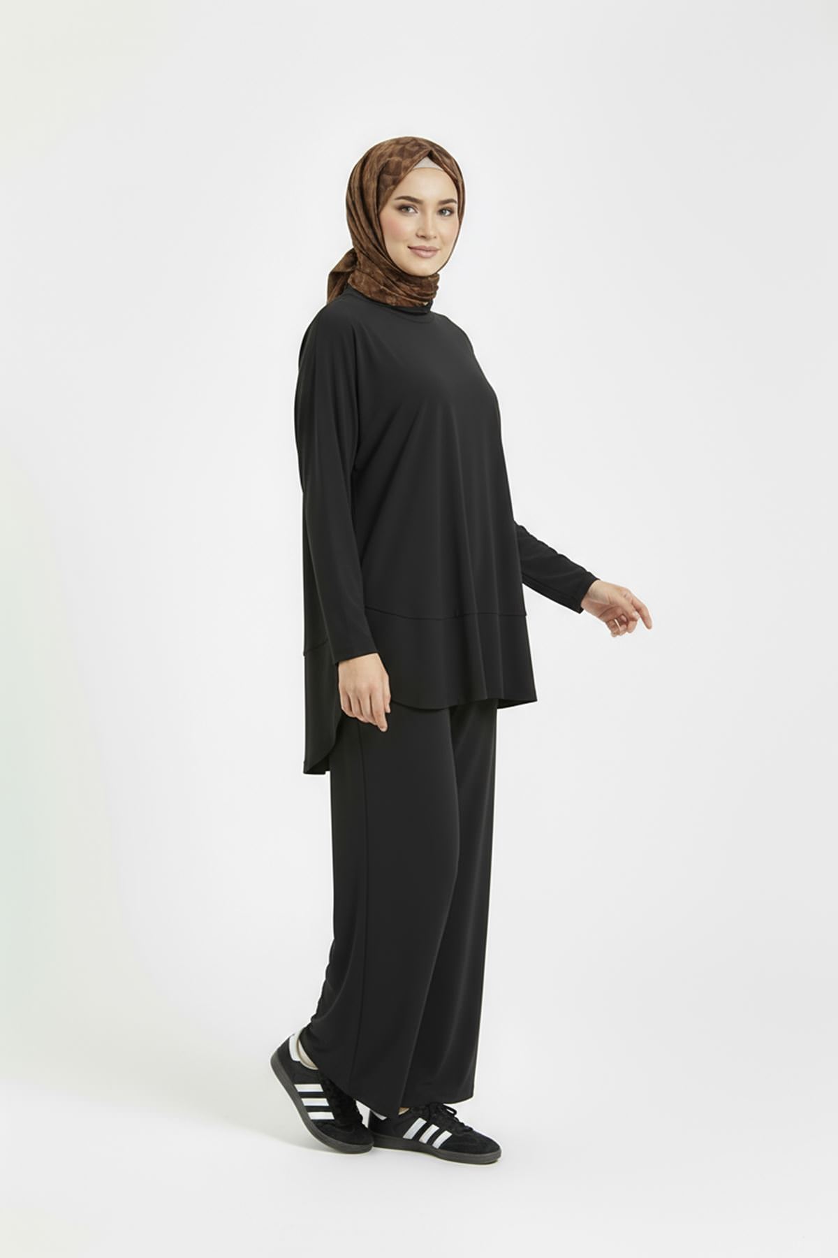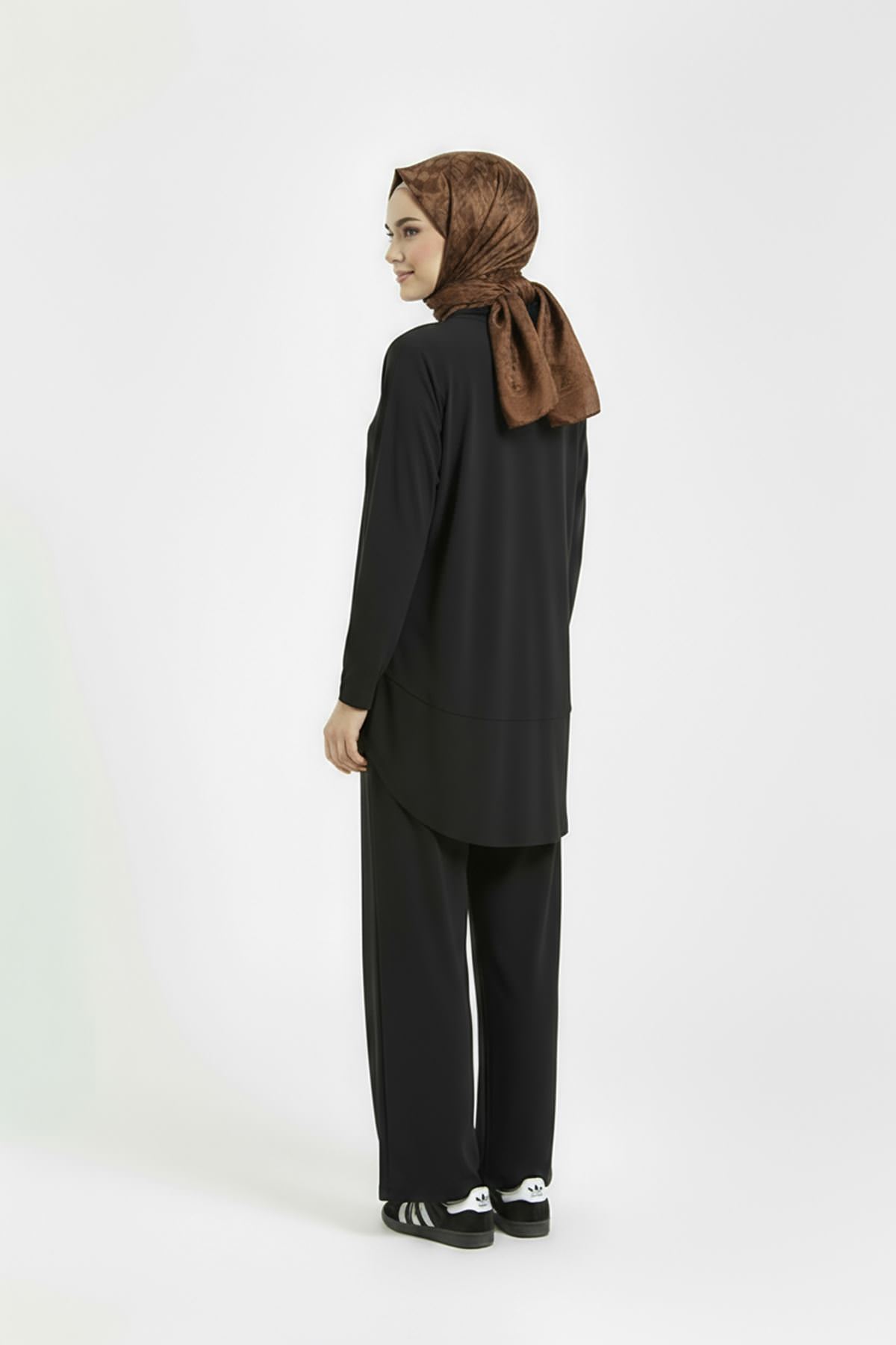 Ön Parçalı Pantolonlu Pike Takım-Siyah