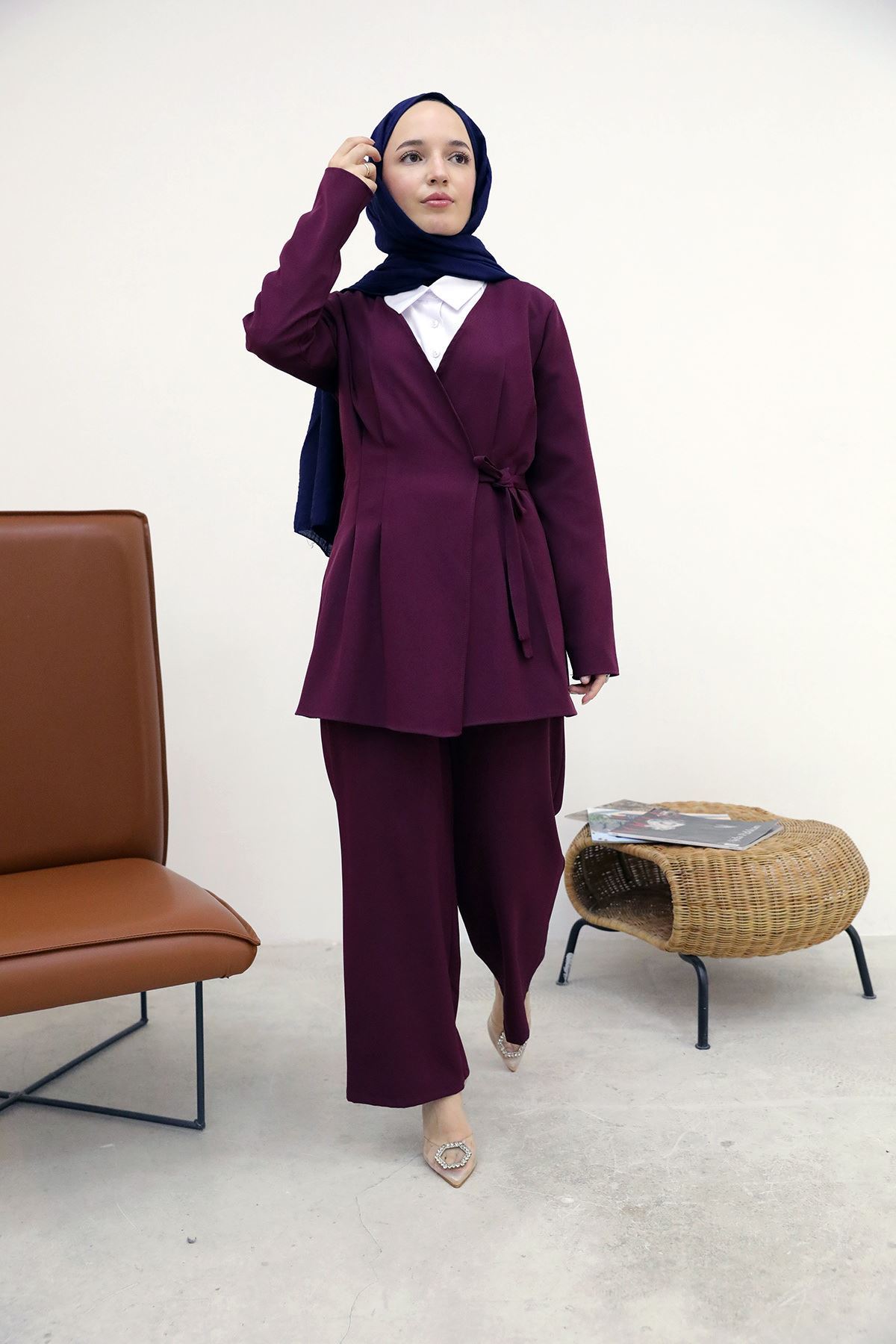 Pensli Bağlamalı Takım-Bordo