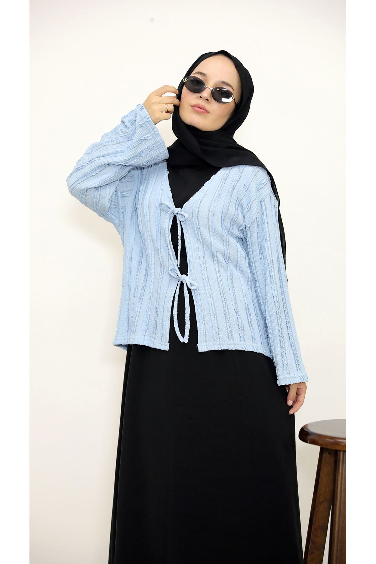 Pileli Ön İki Bağlamalı Tunik-Mavi
