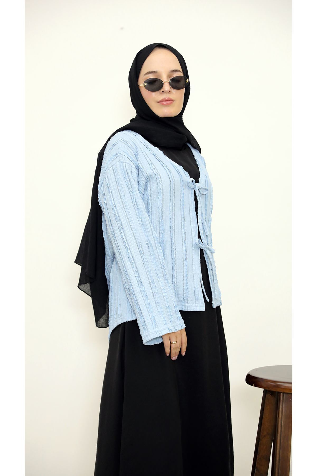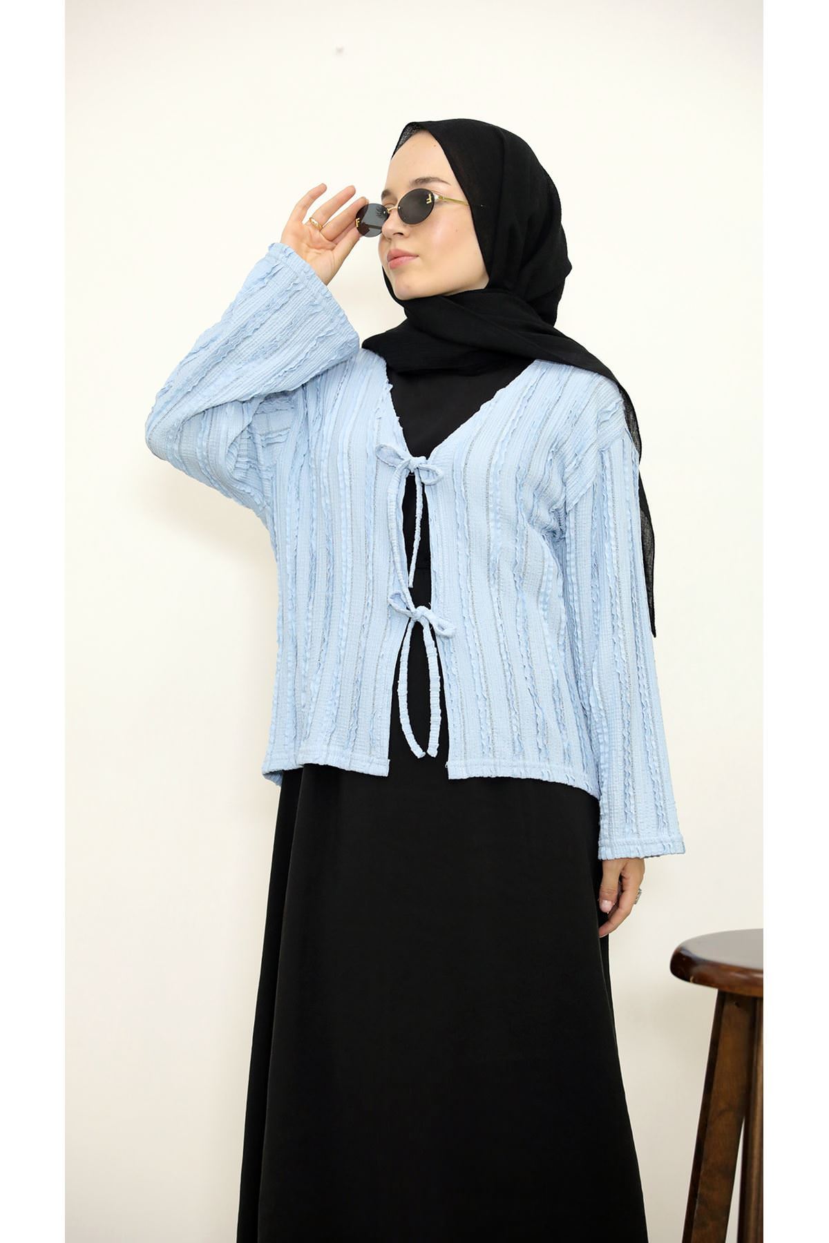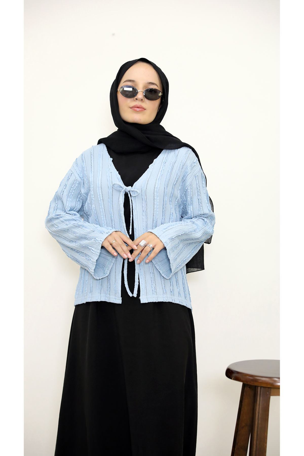 Pileli Ön İki Bağlamalı Tunik-Mavi