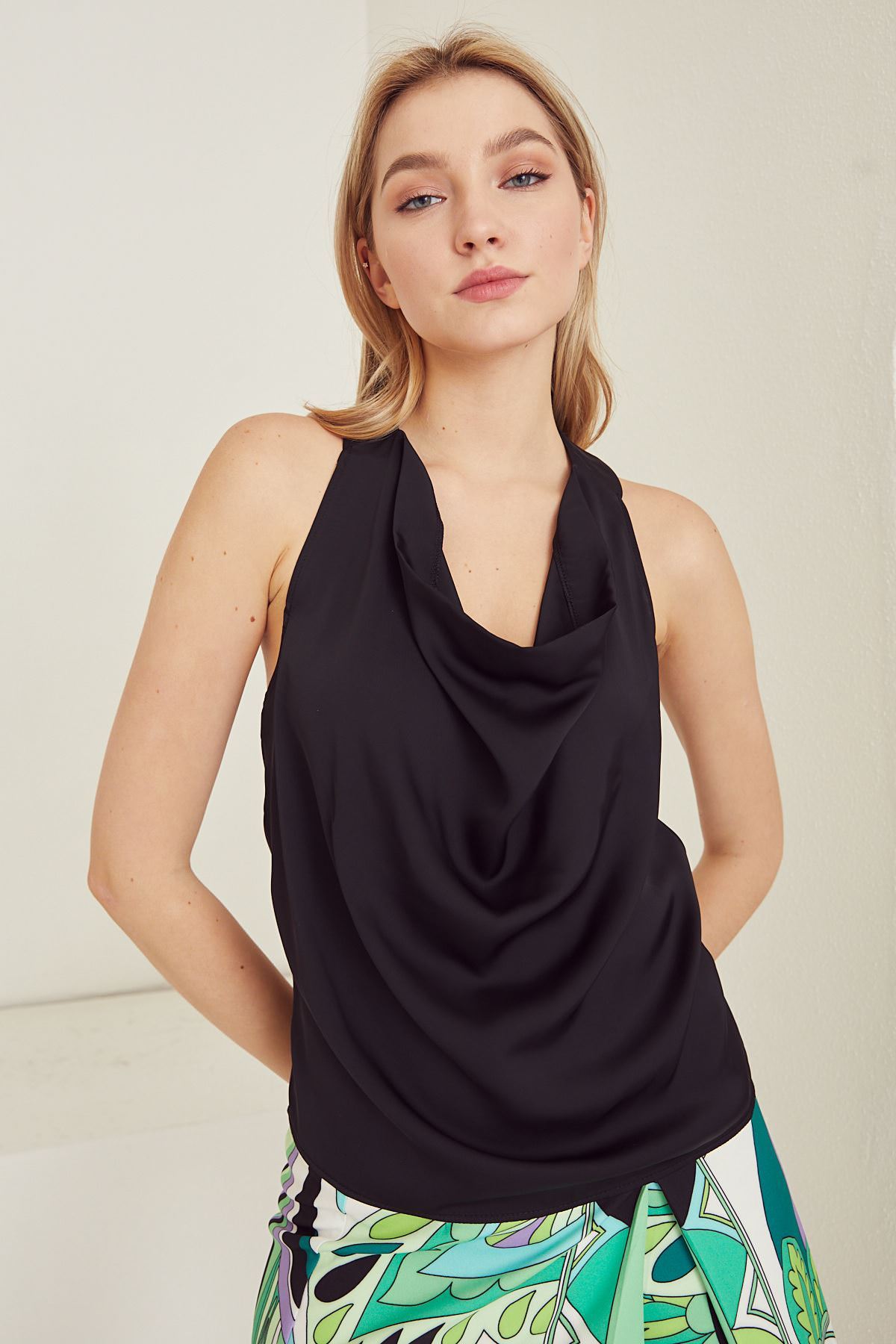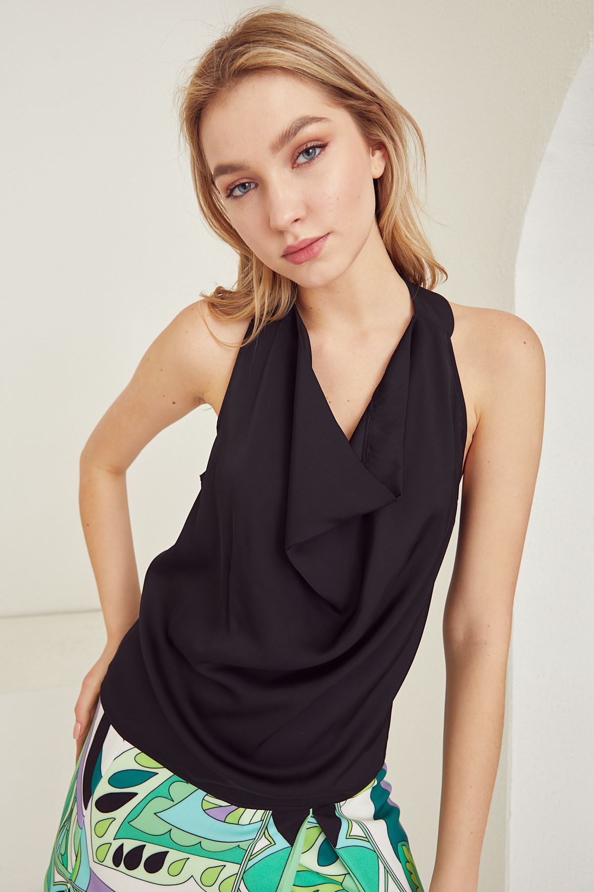 Sırt Dekolteli Degaje Bluz-Siyah