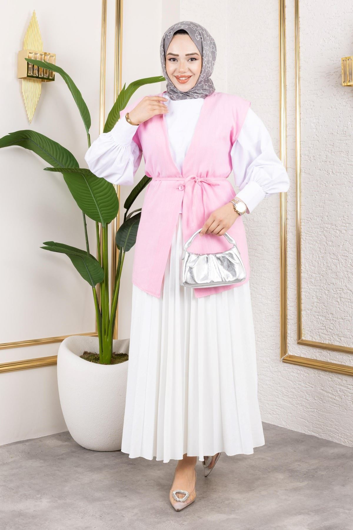 Tek Düğme Keten Yelek