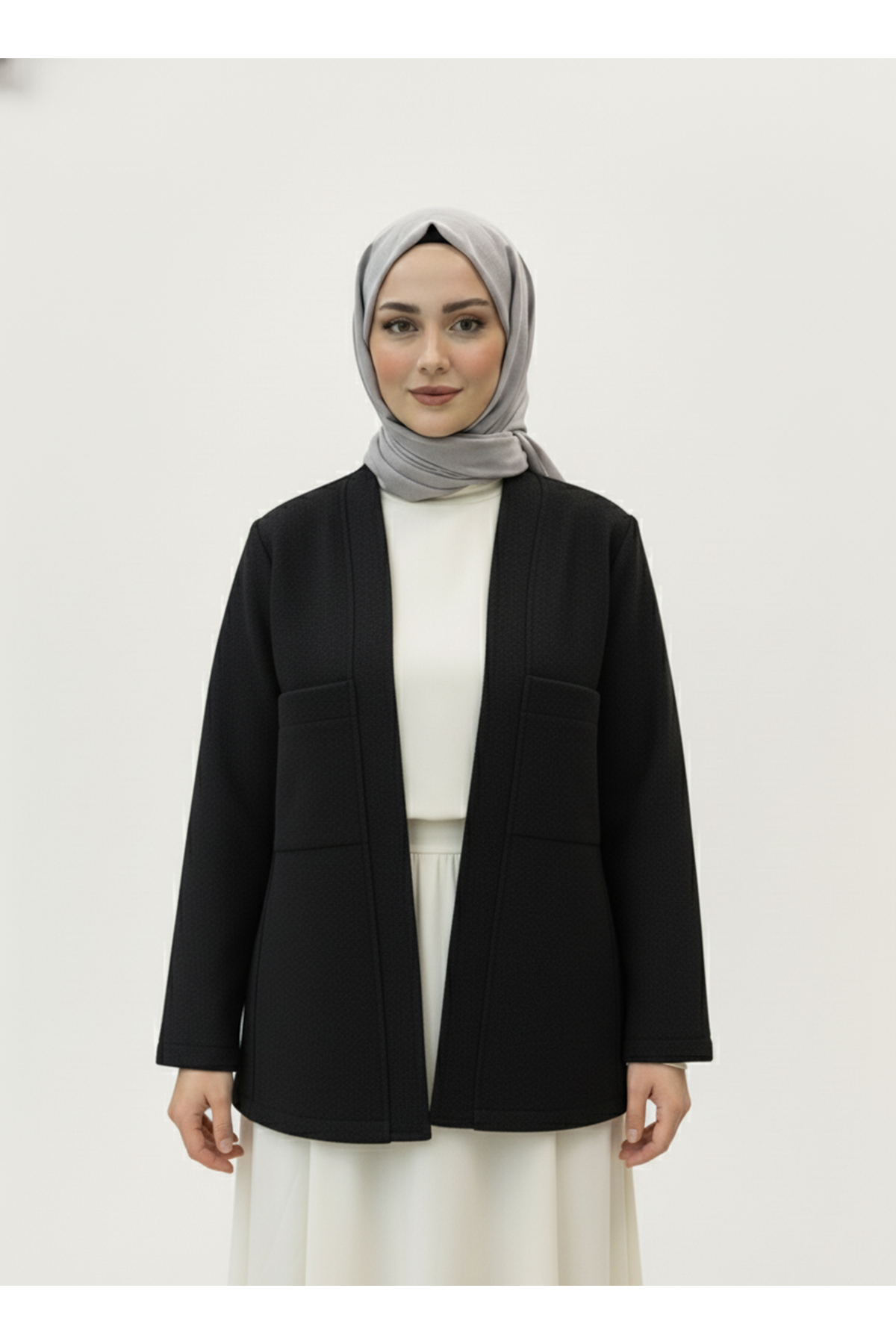 Üstten Çift Cep Kaşe Ceket-Siyah