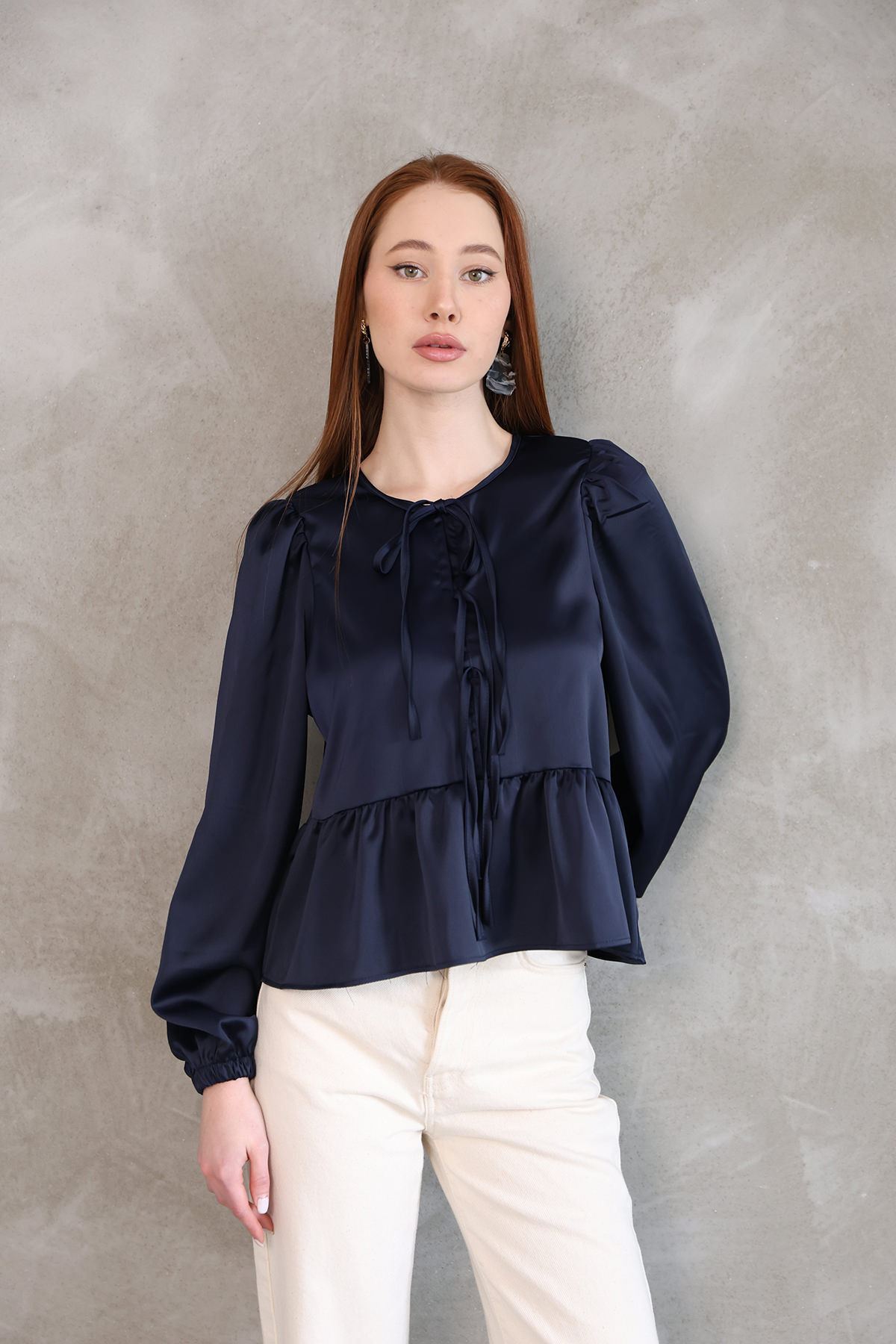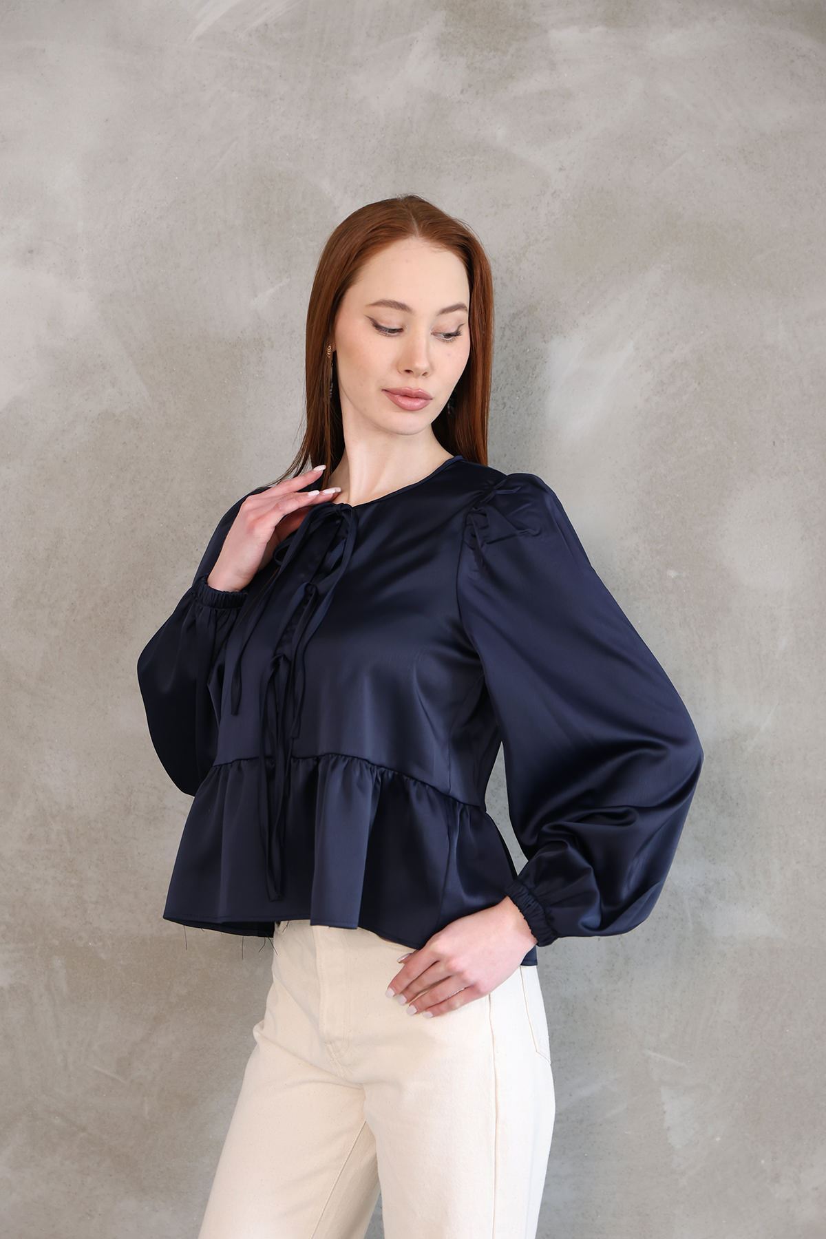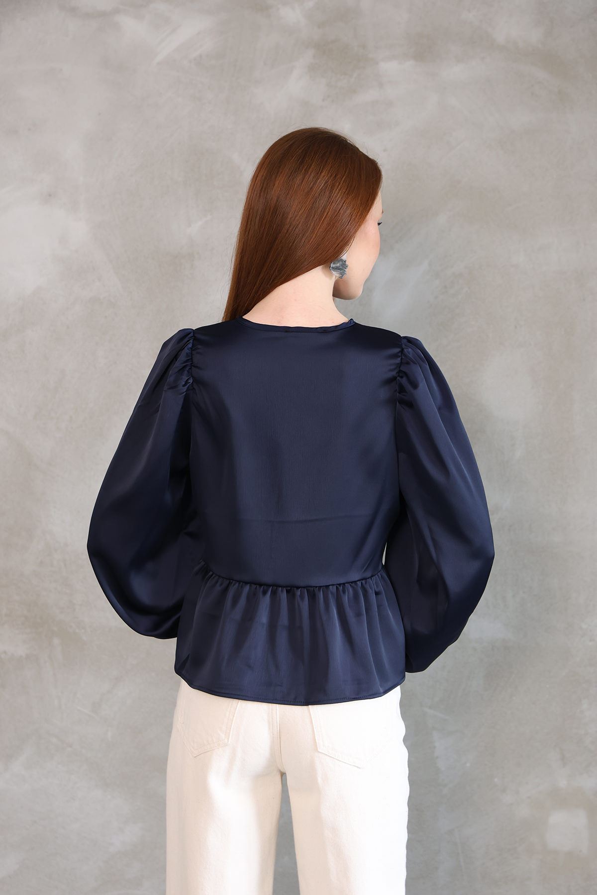 Yaka Biye Etek Büzgülü Tunik-Lacivert