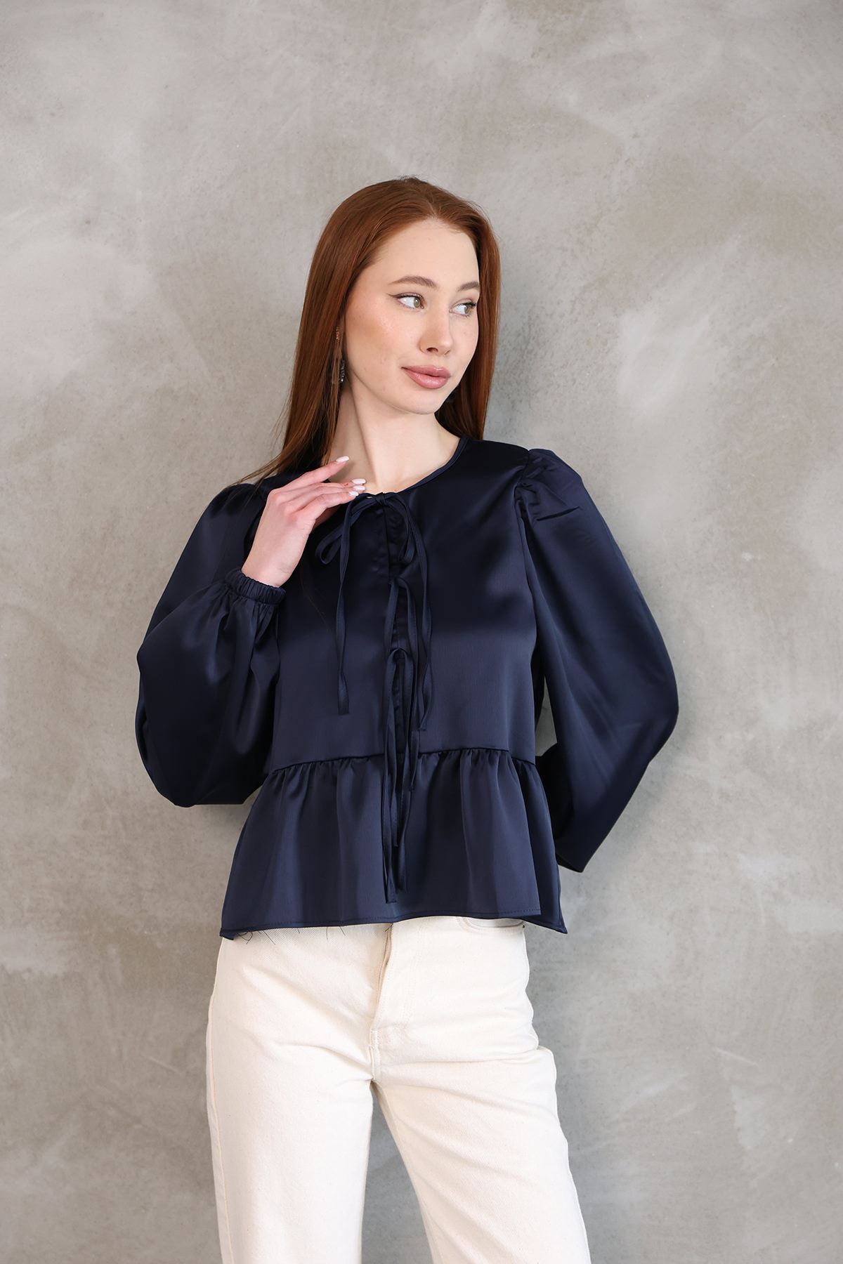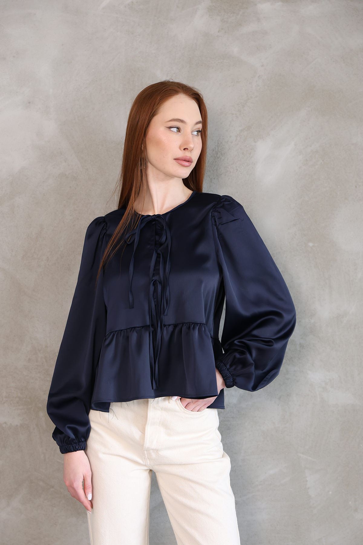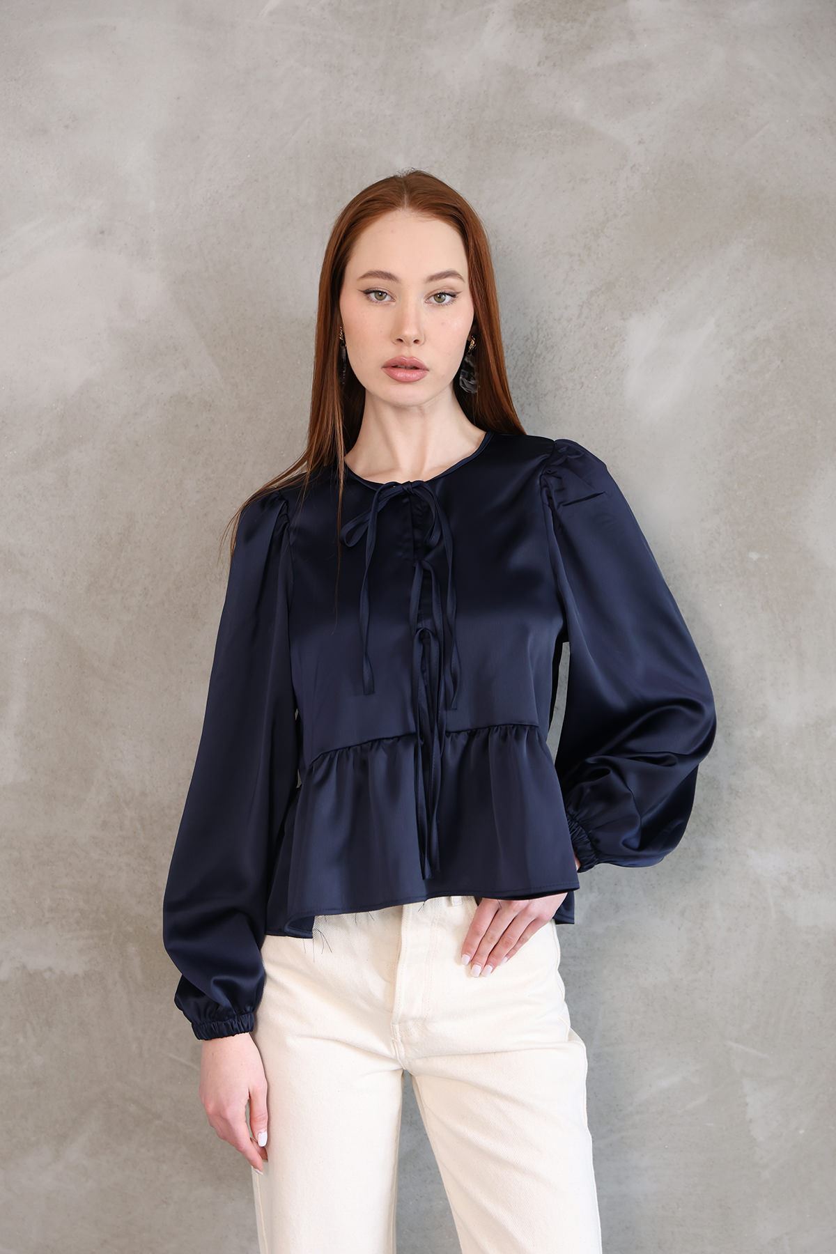 Yaka Biye Etek Büzgülü Tunik-Lacivert