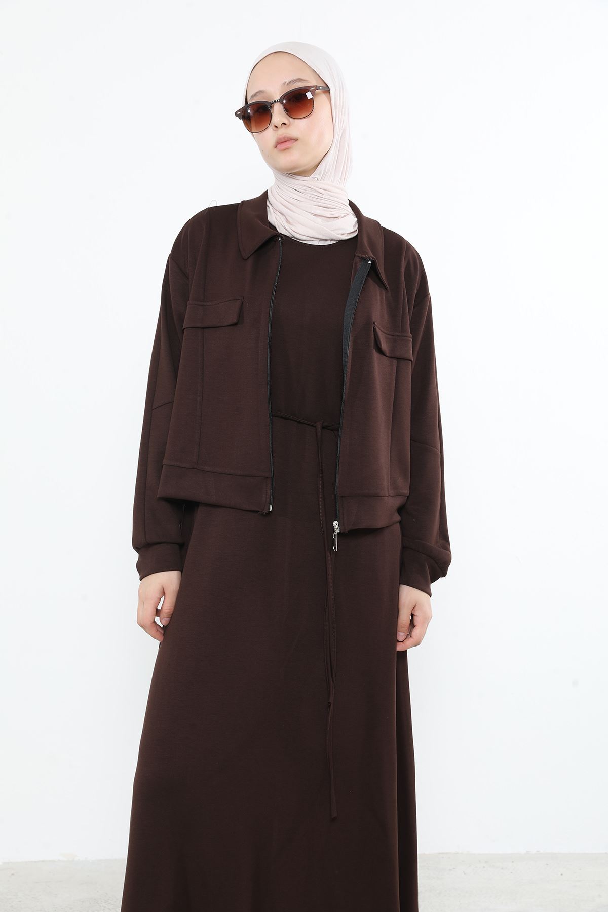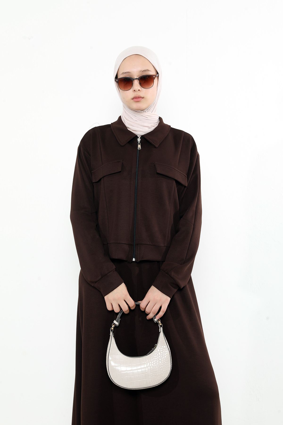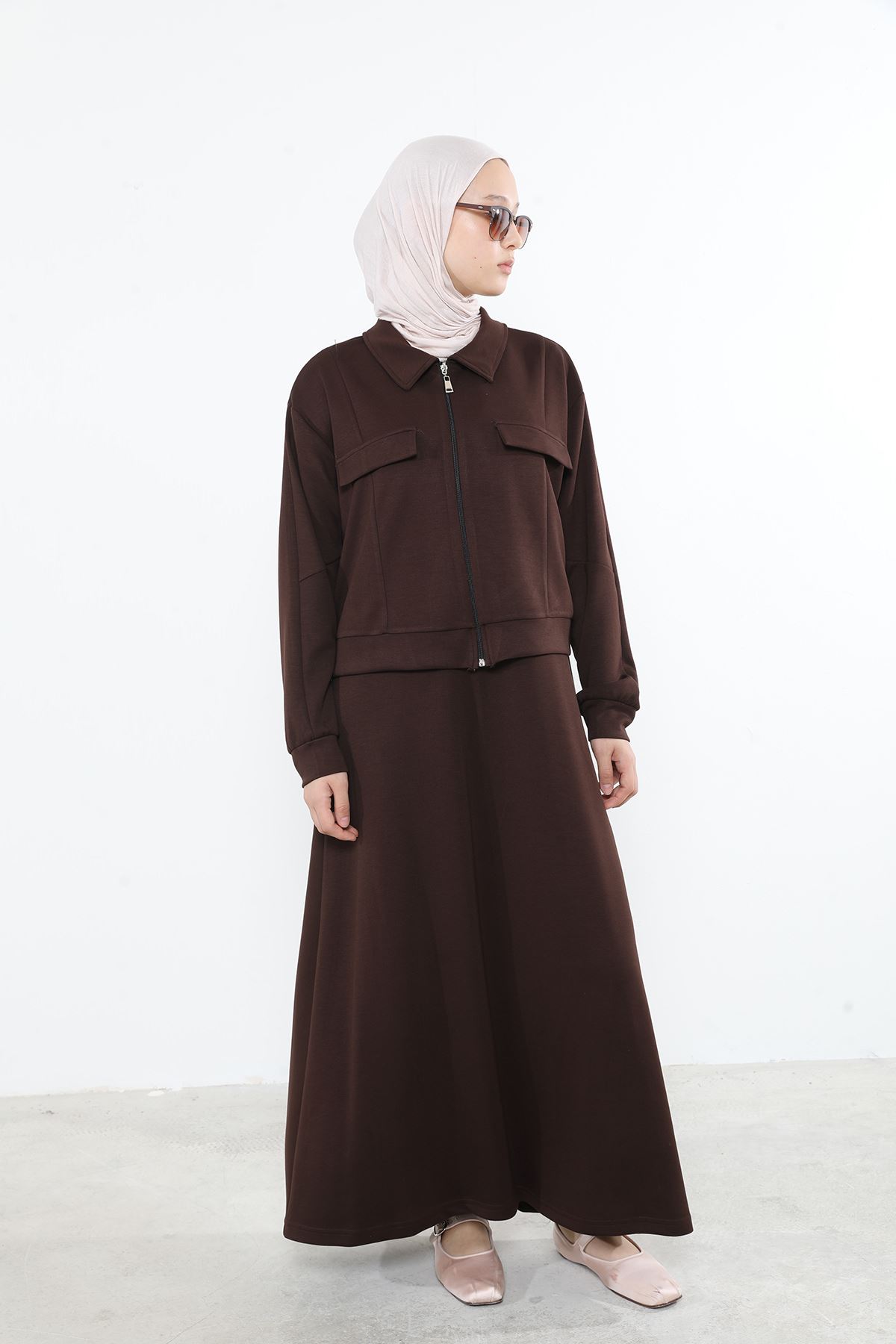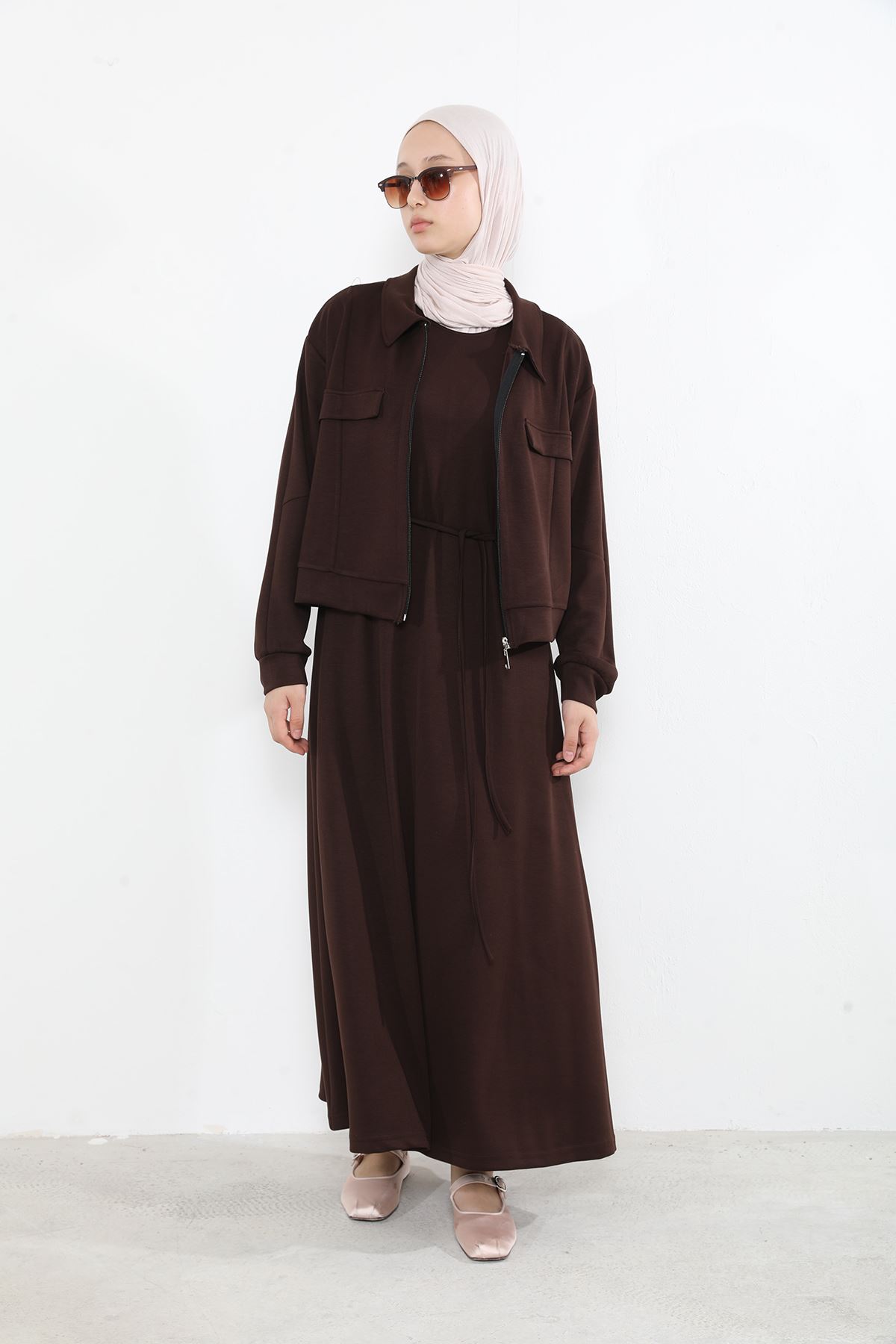 Yakalı Fermuar Detay Jileli Takım-Kahve