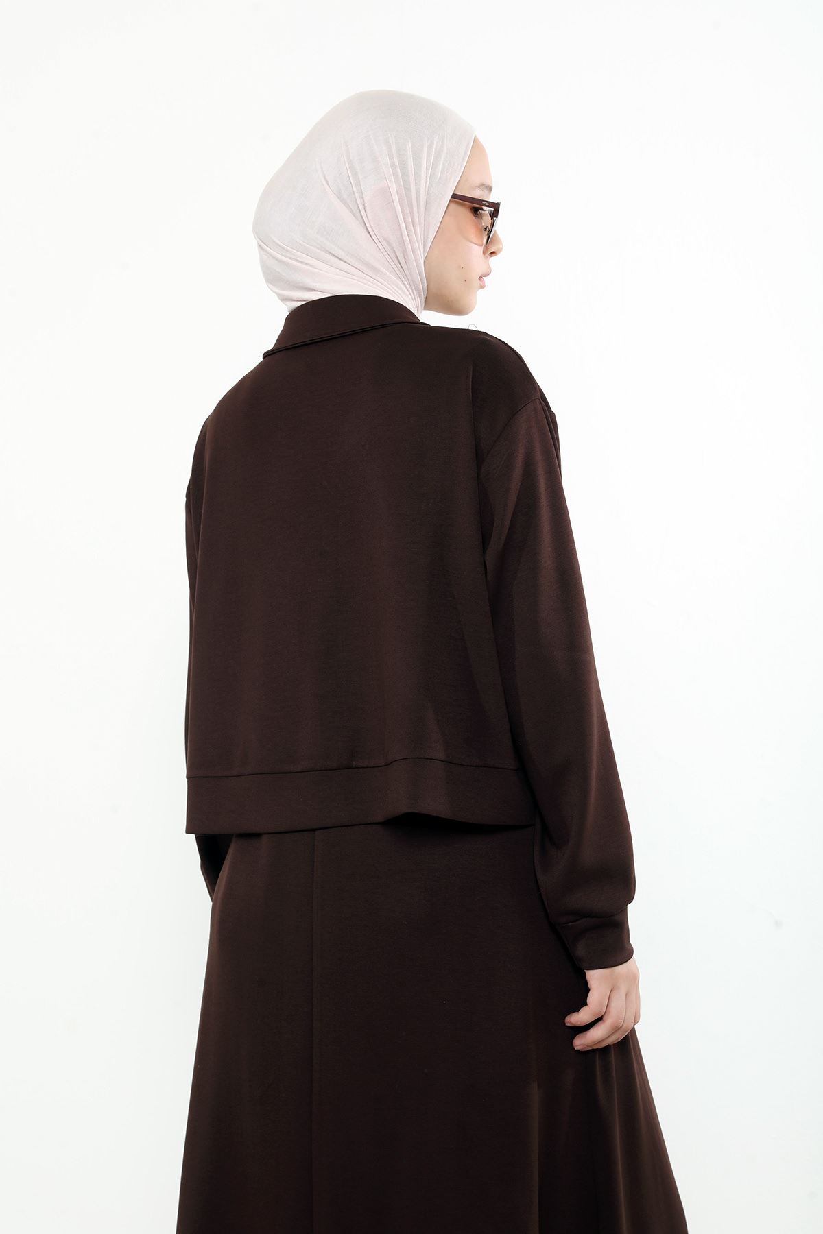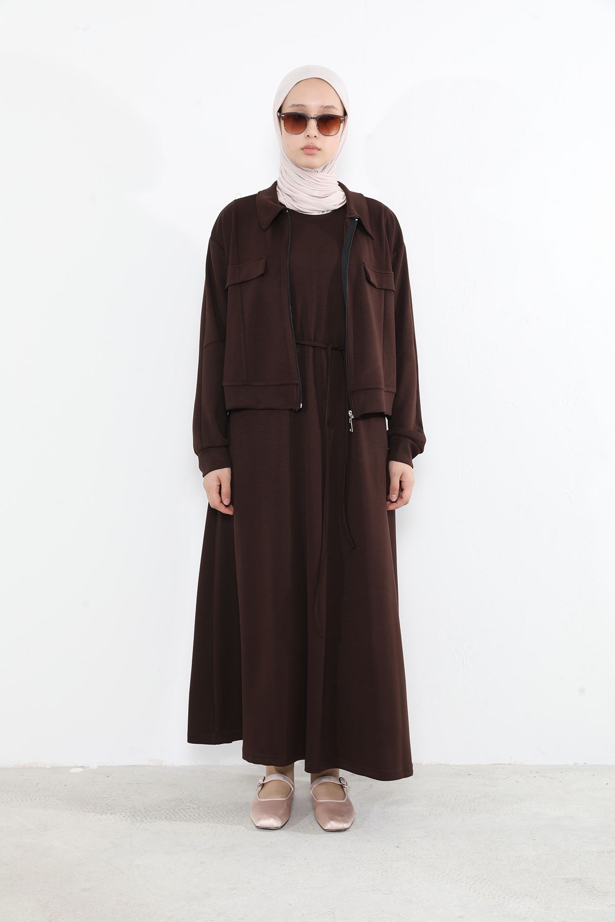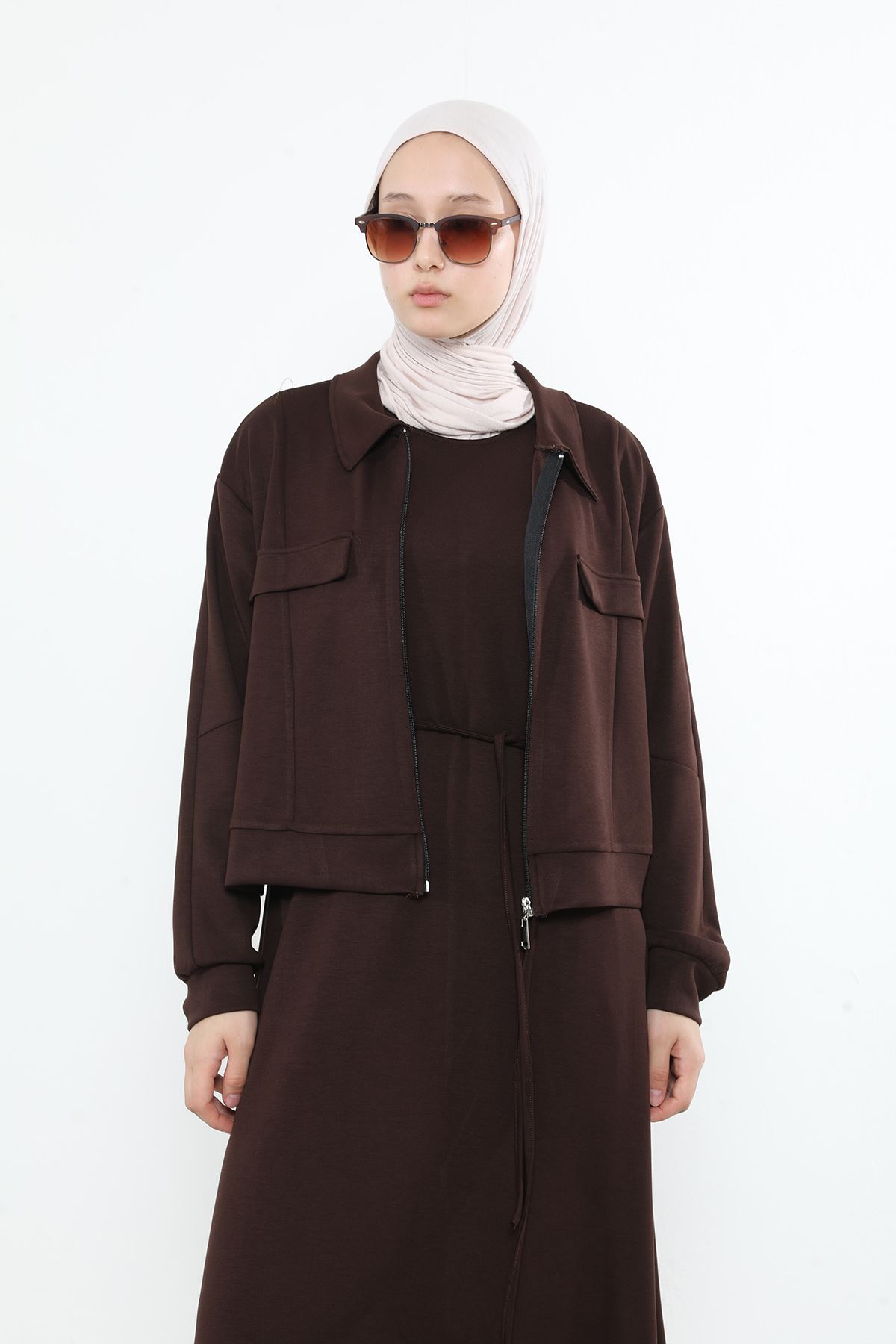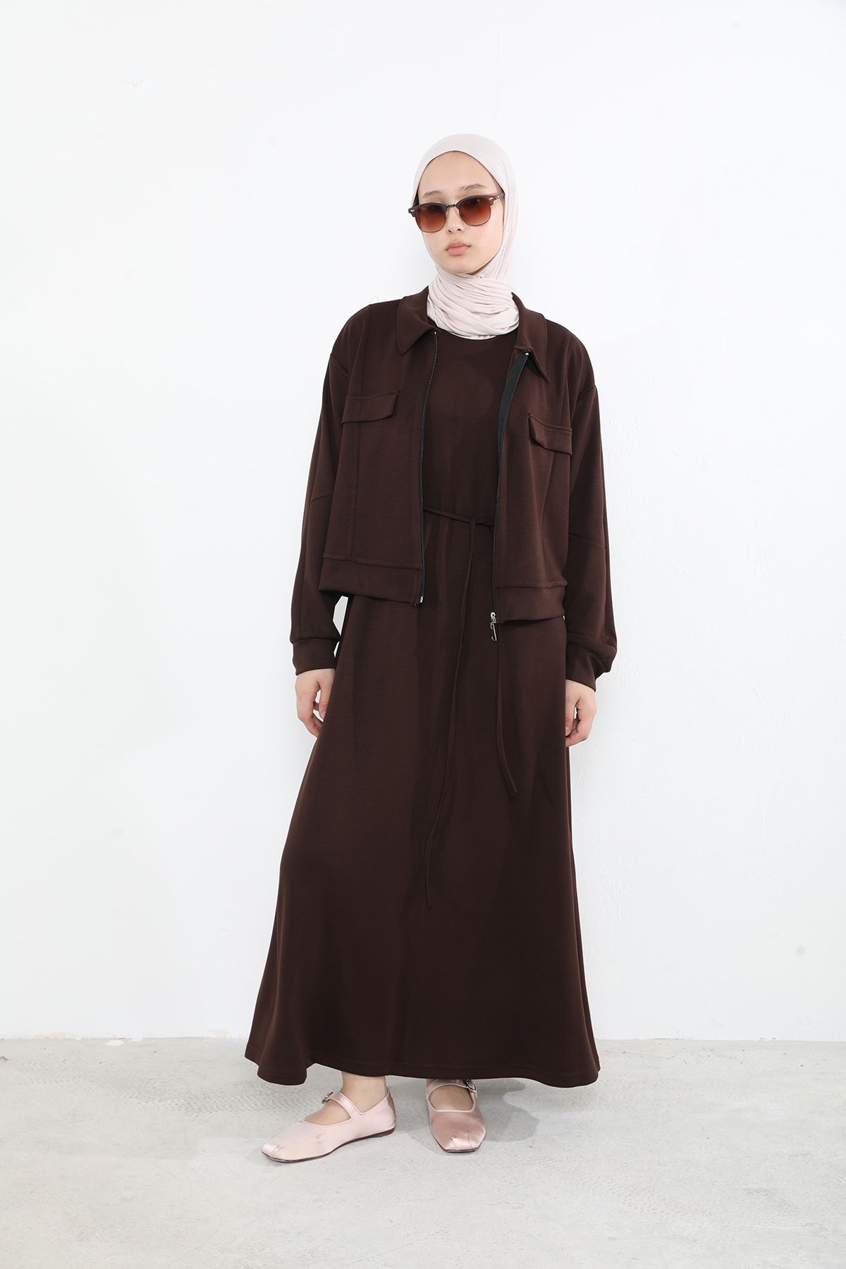 Yakalı Fermuar Detay Jileli Takım-Kahve