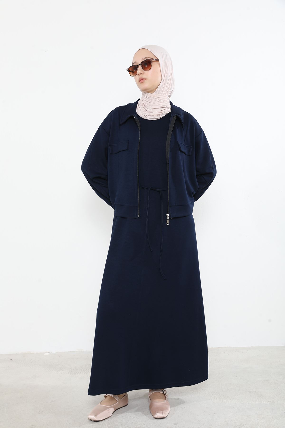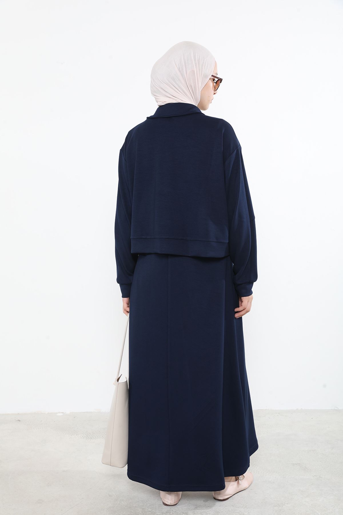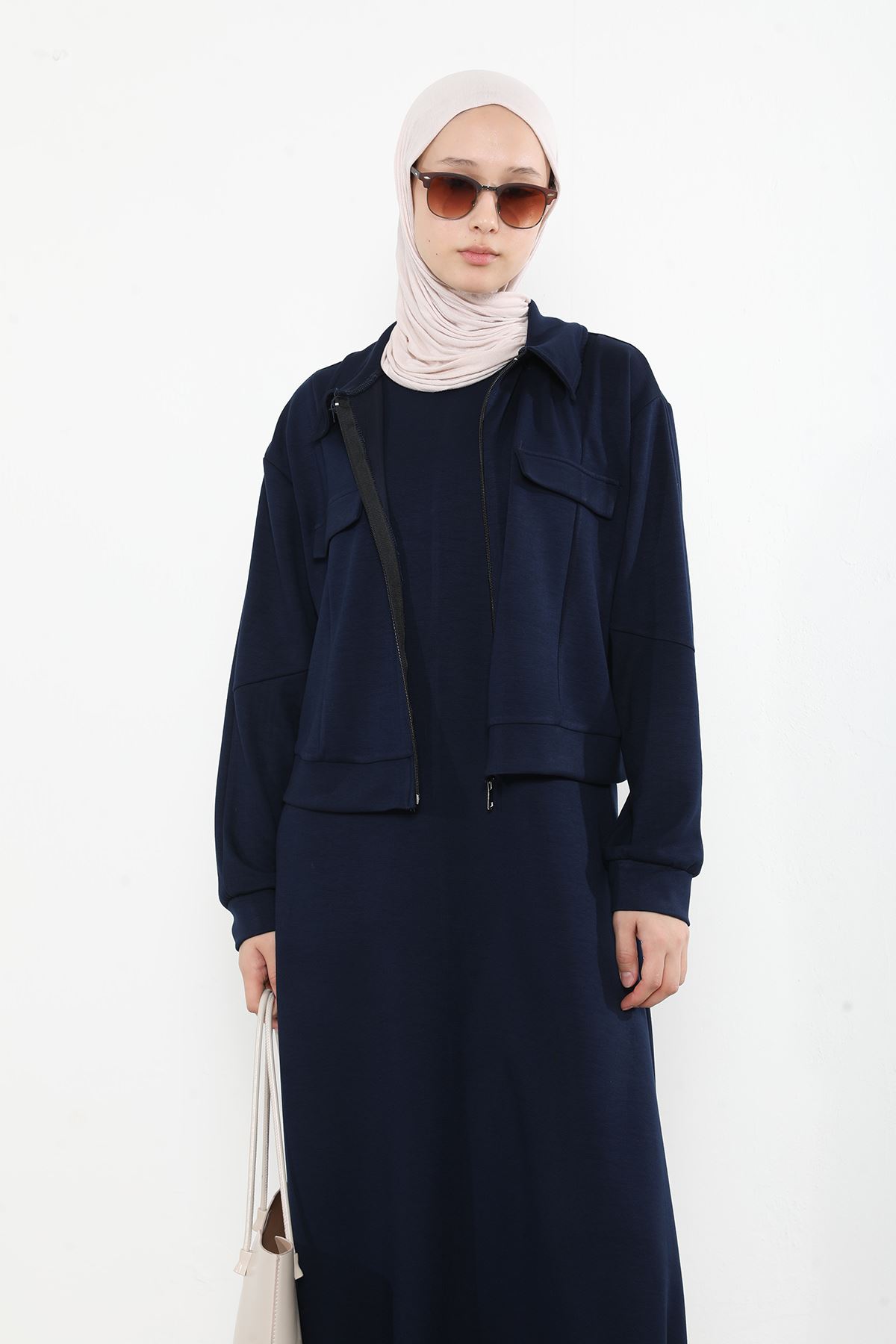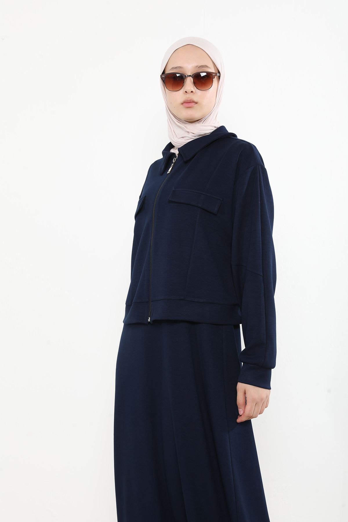 Yakalı Fermuar Detay Jileli Takım-Lacivert