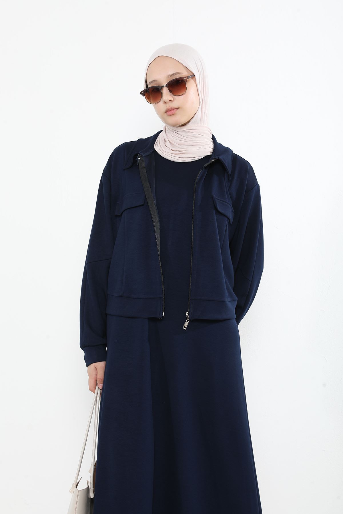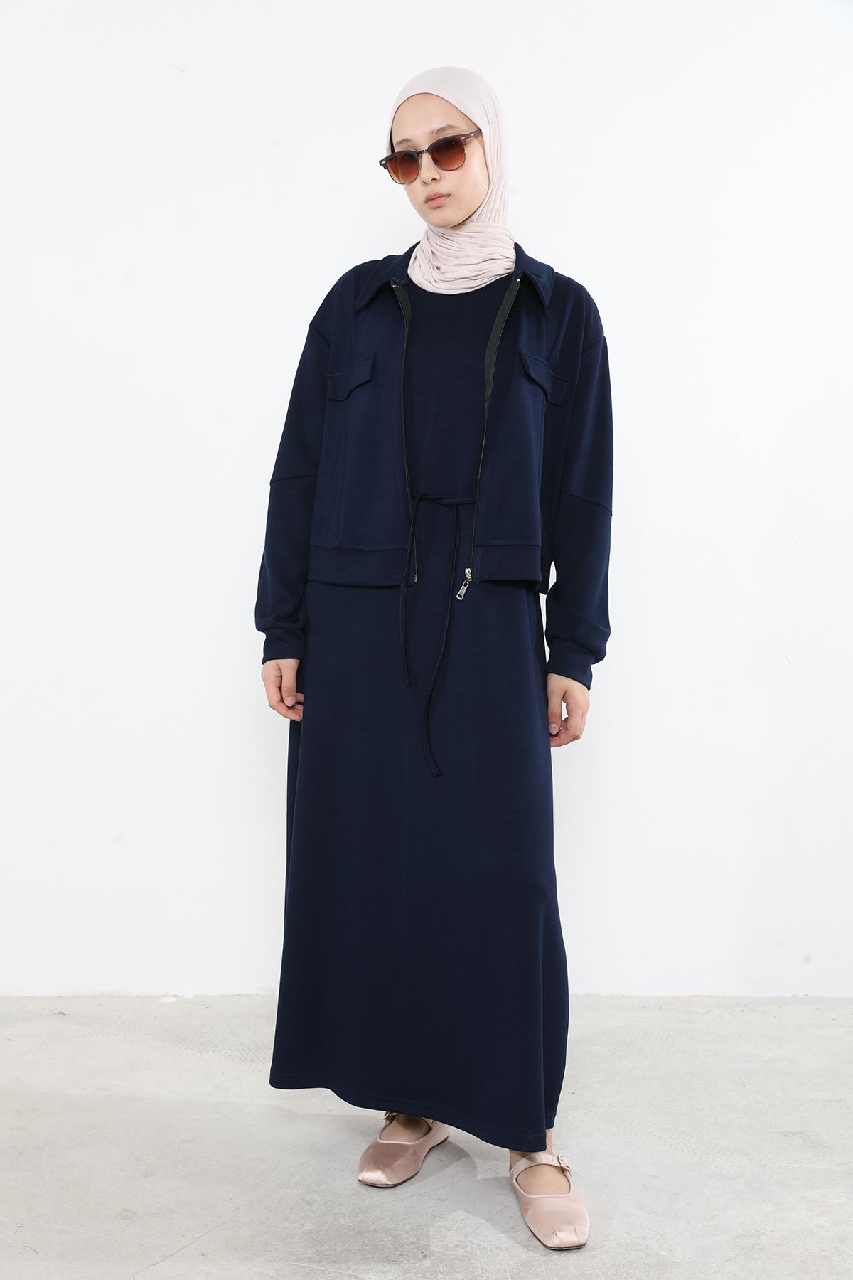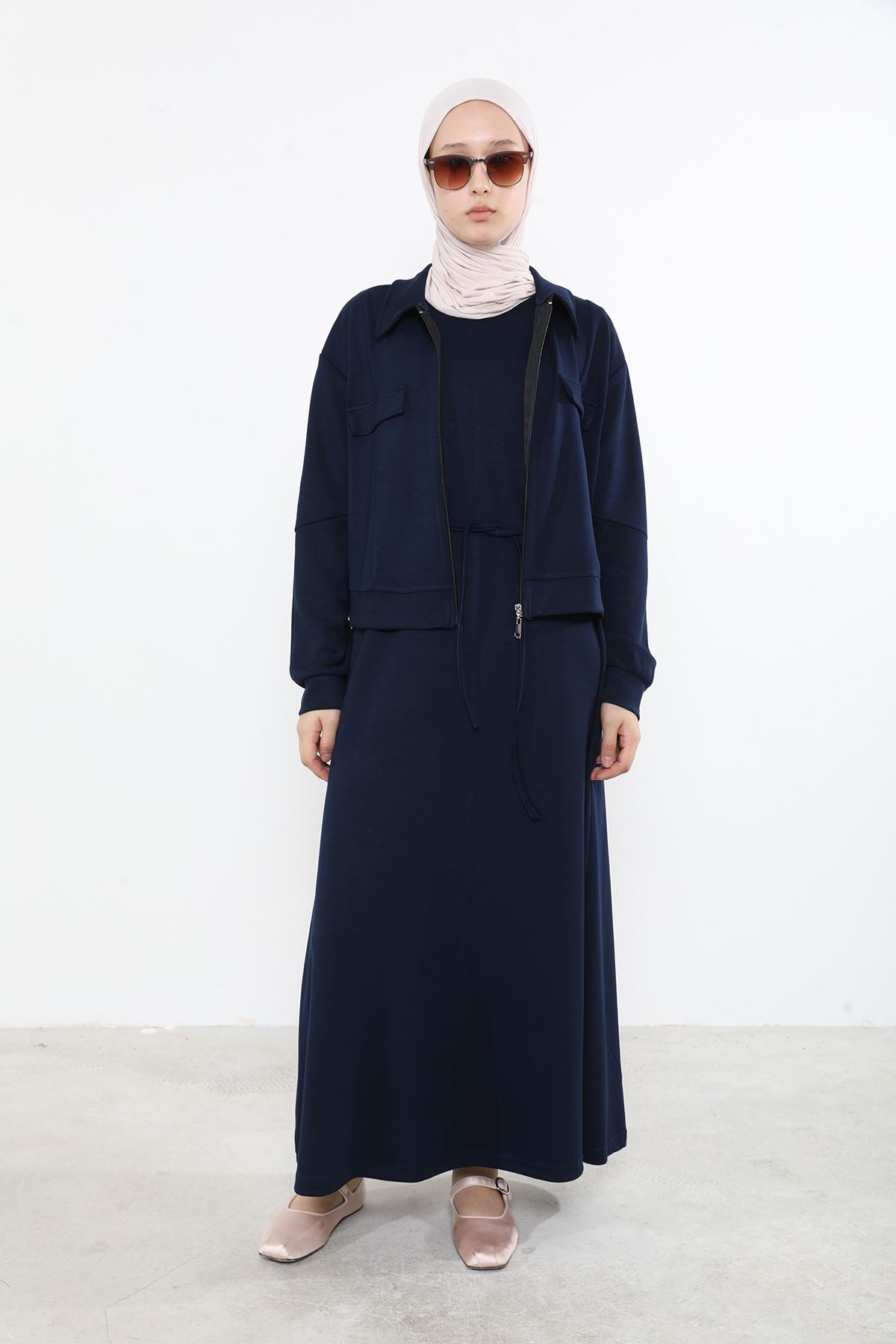 Yakalı Fermuar Detay Jileli Takım-Lacivert
