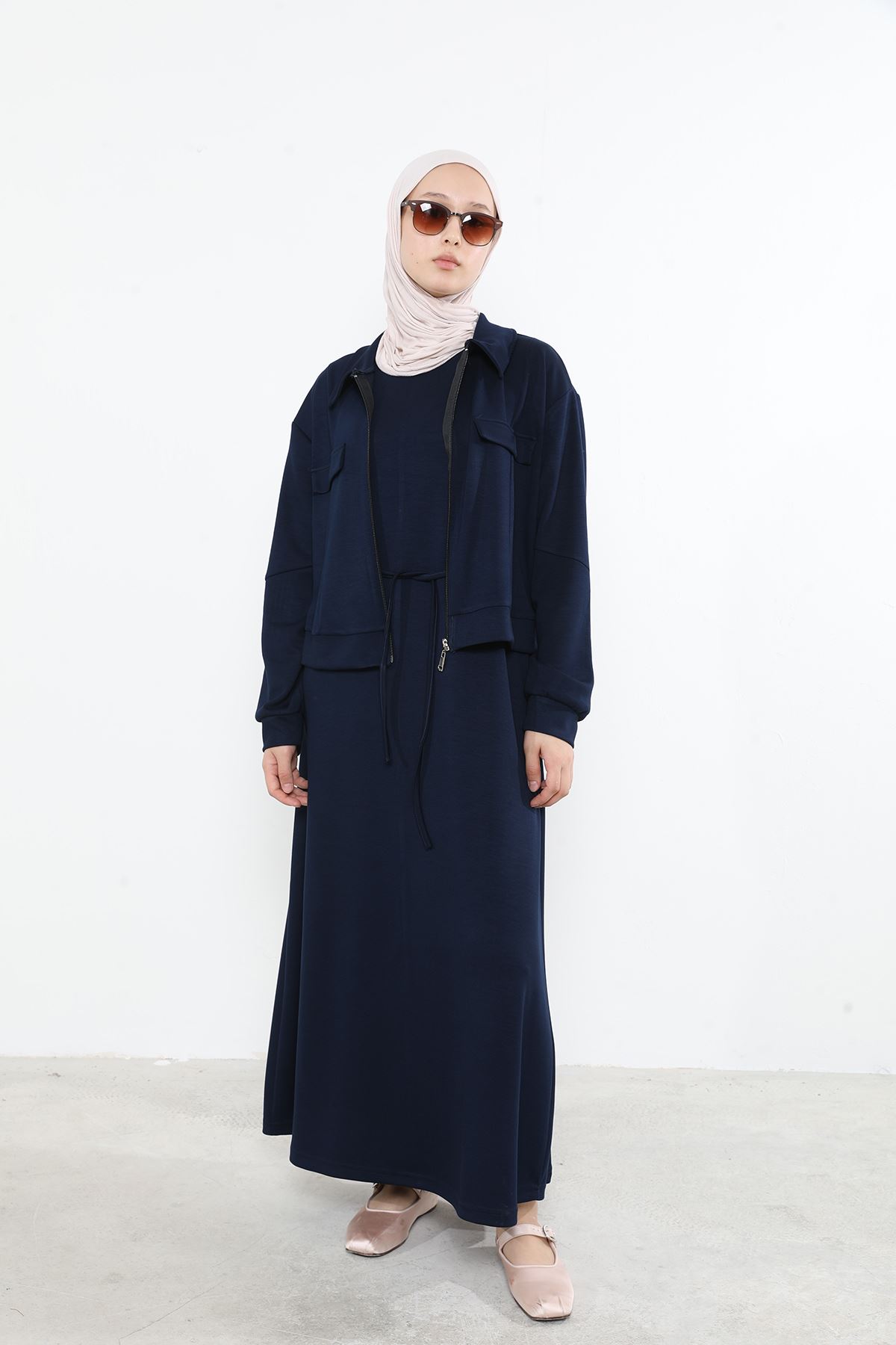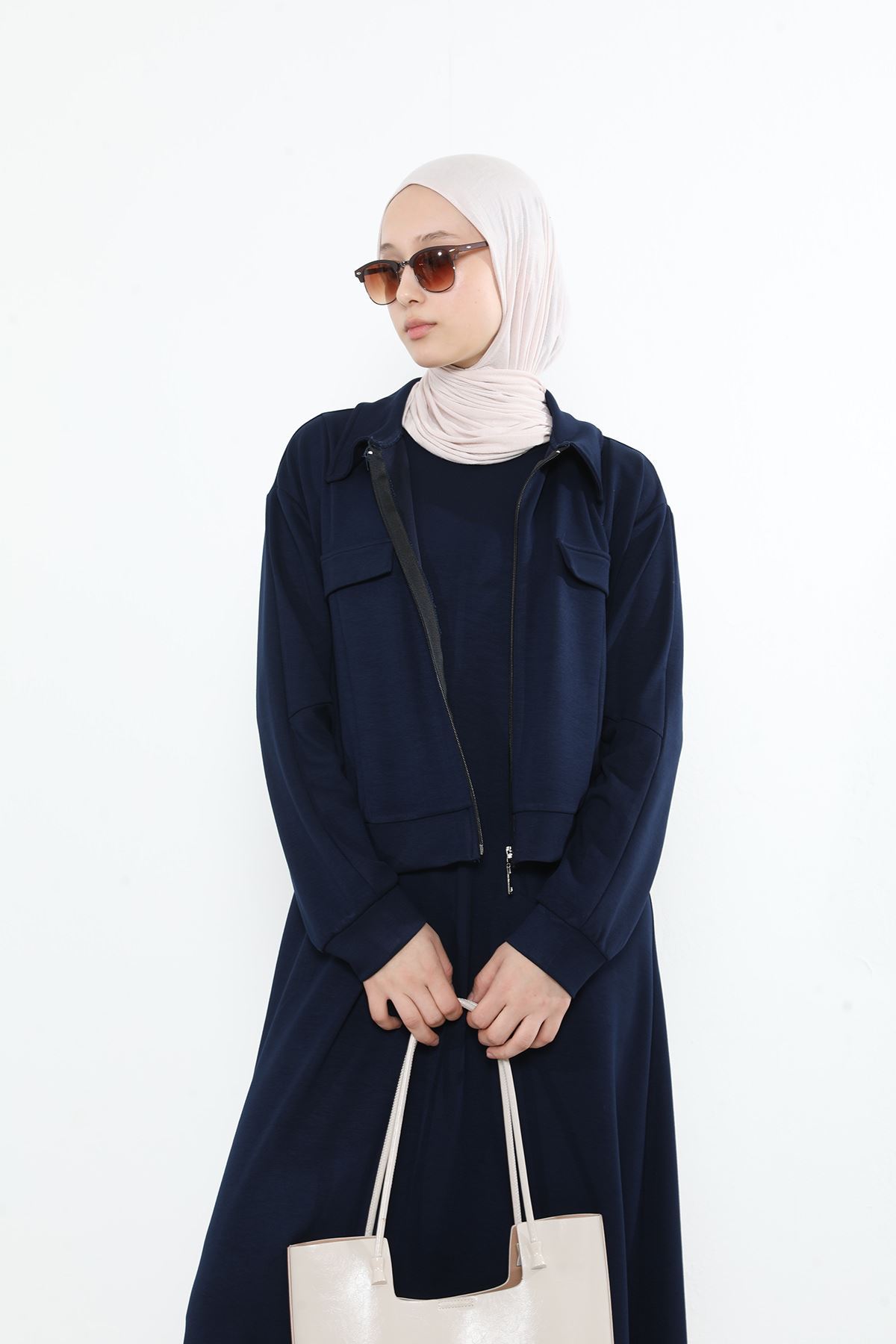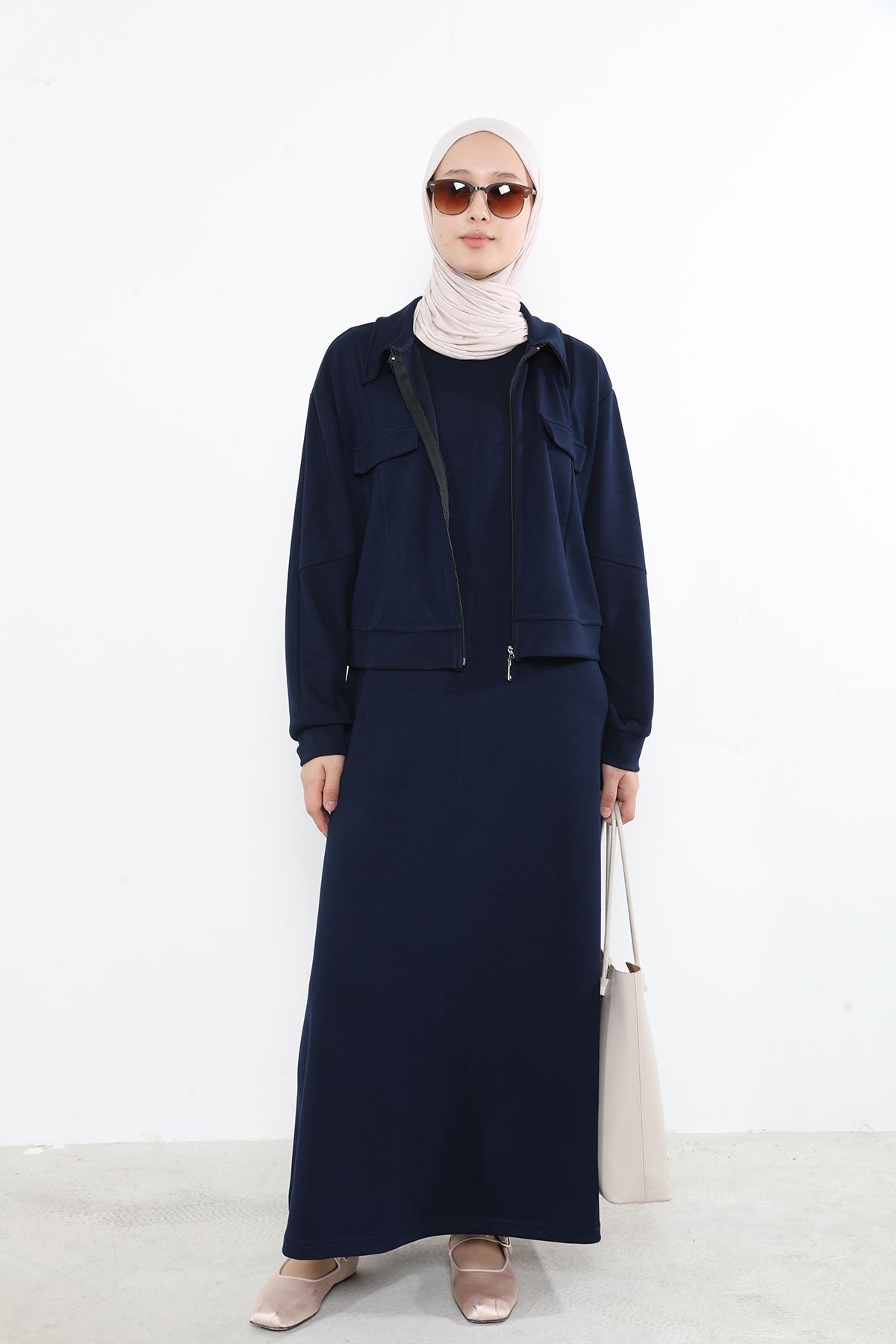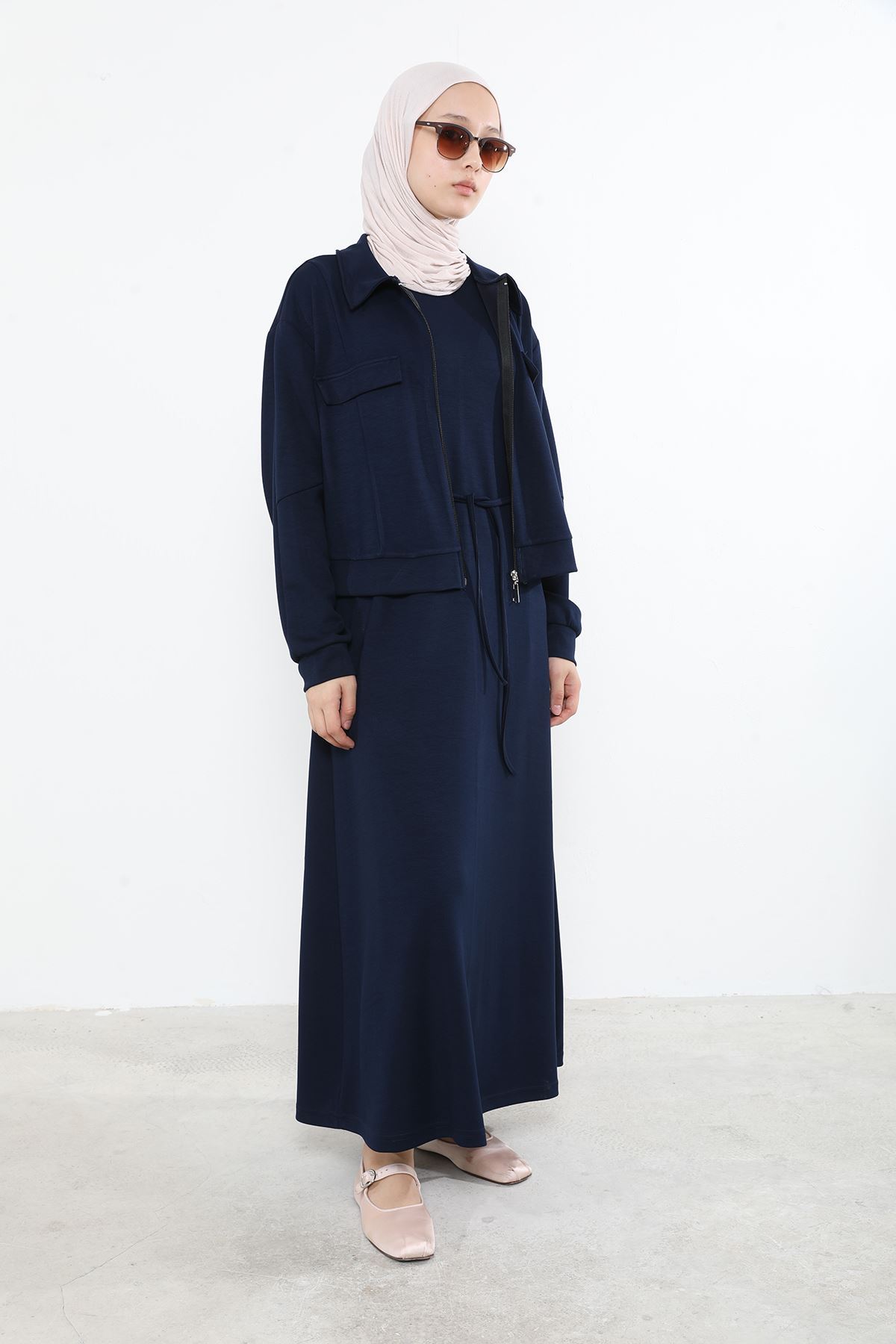 Yakalı Fermuar Detay Jileli Takım-Lacivert