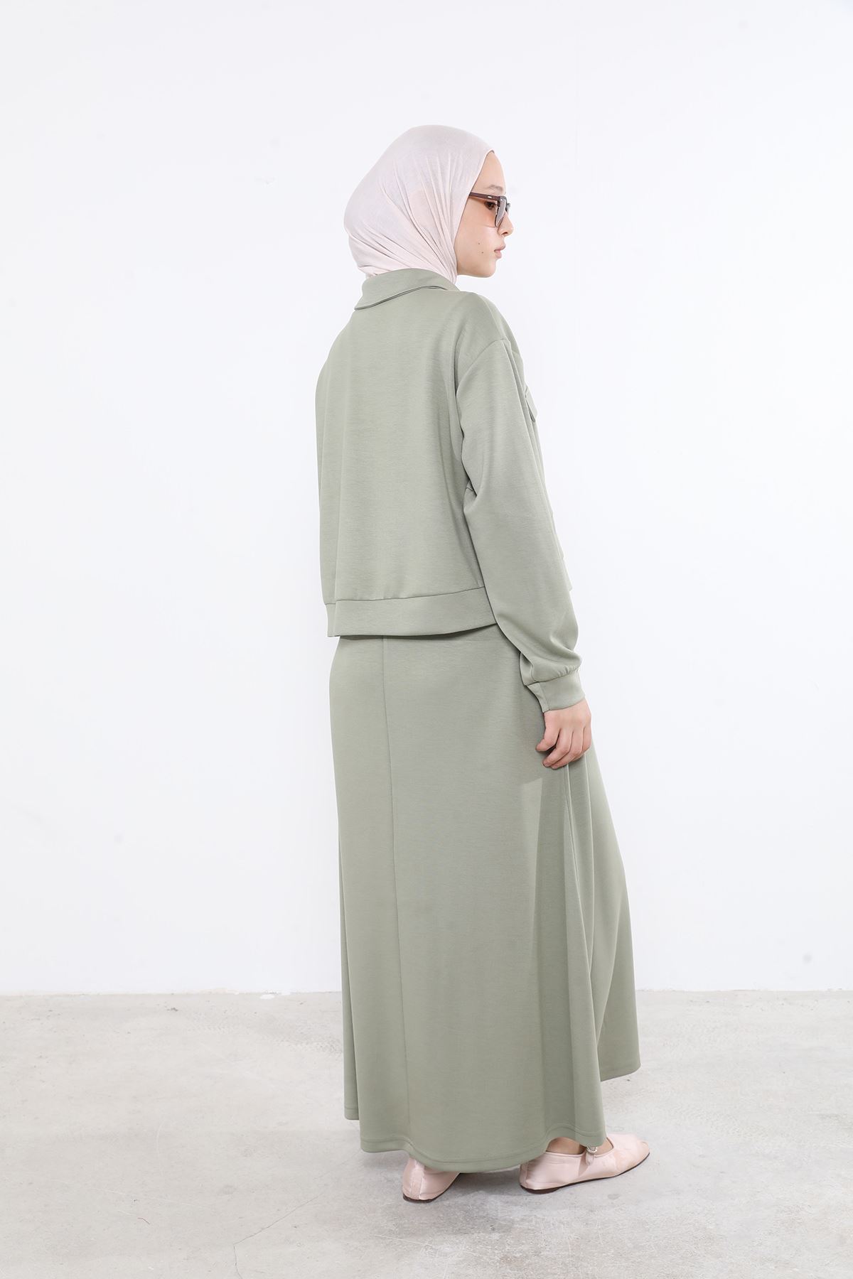 Yakalı Fermuar Detay Jileli Takım-Mint