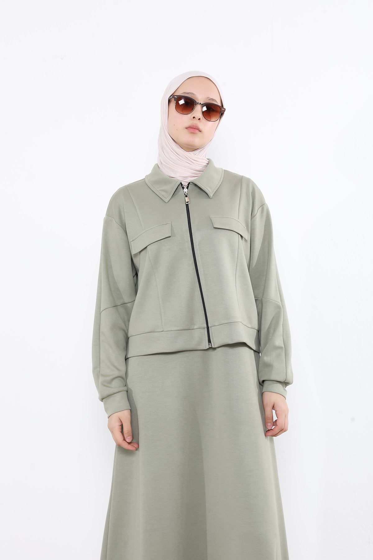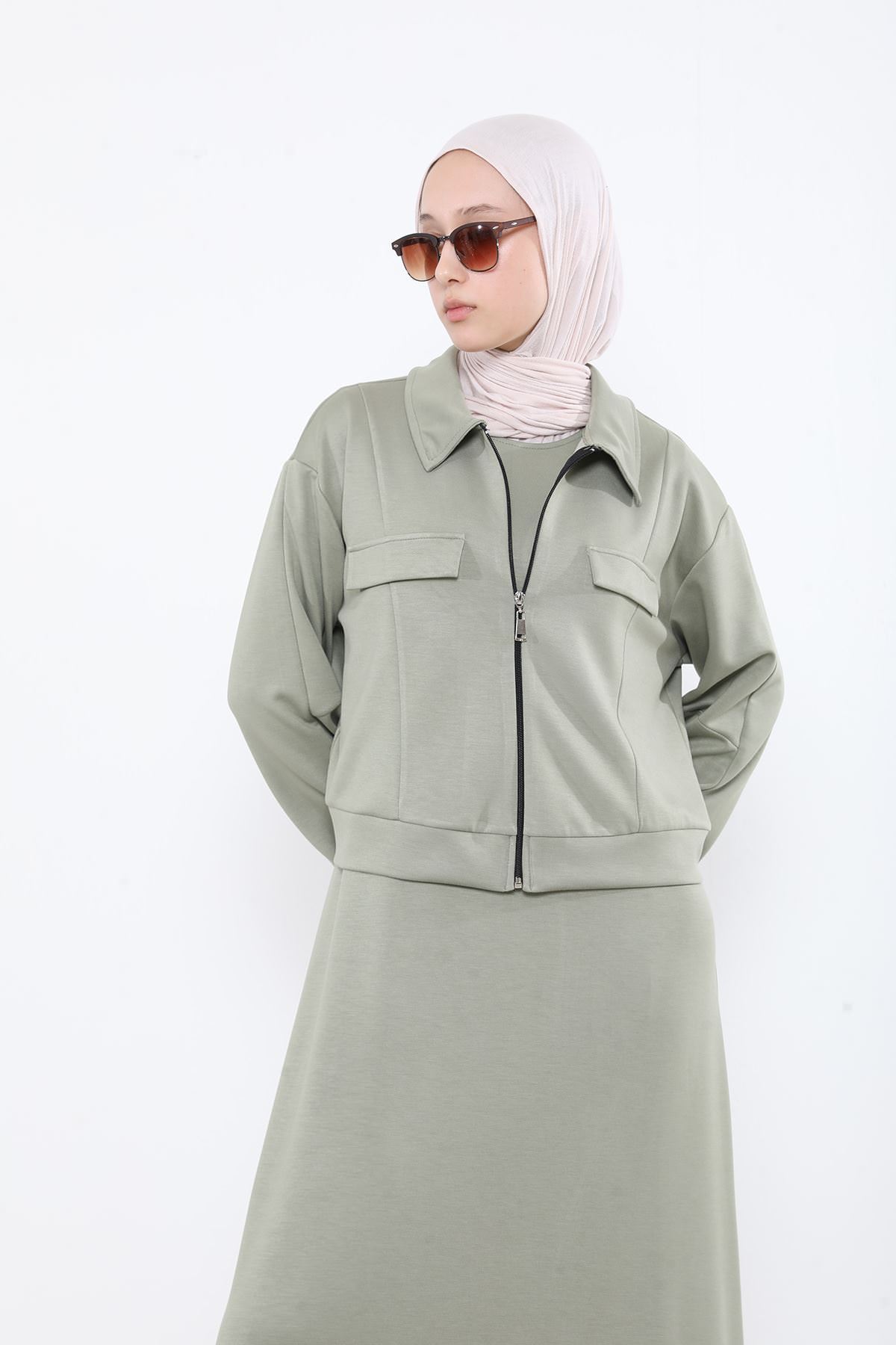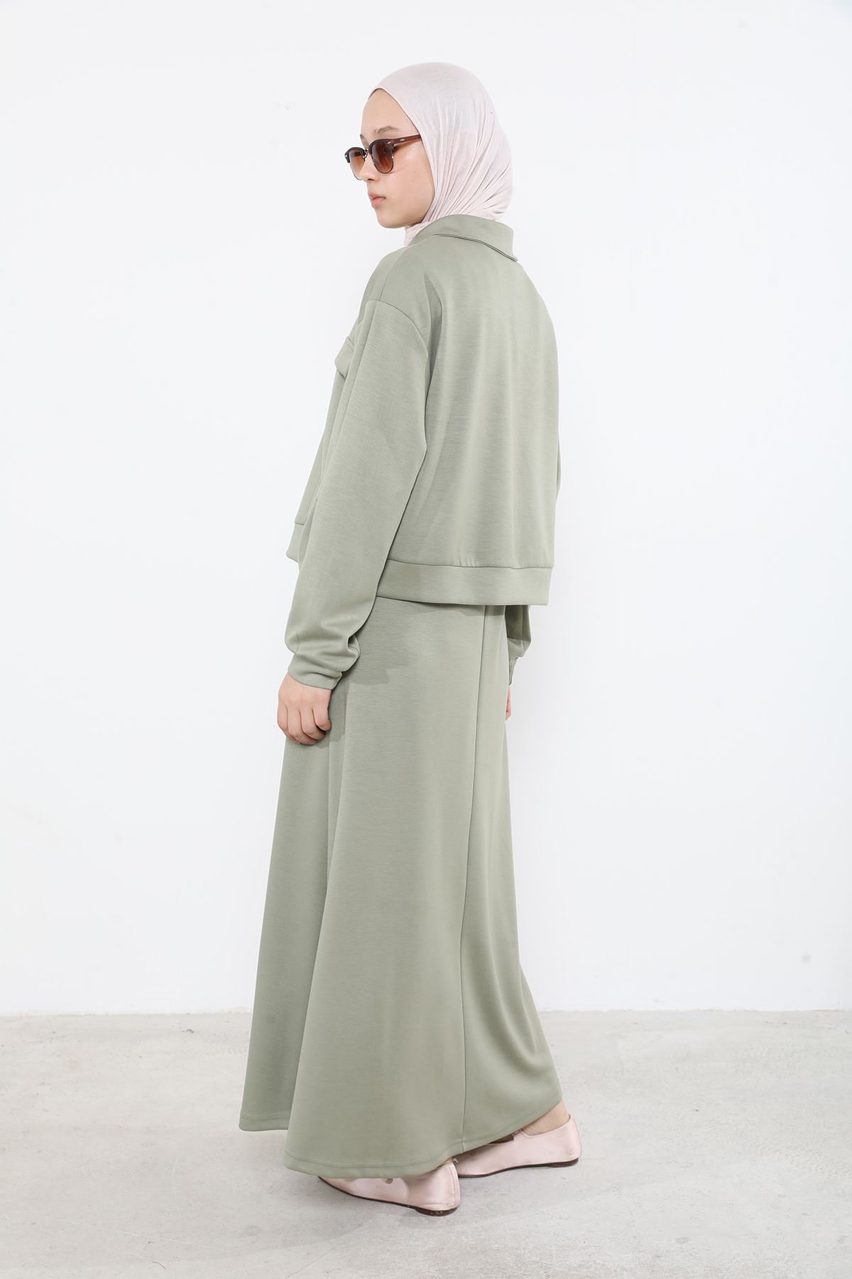 Yakalı Fermuar Detay Jileli Takım-Mint