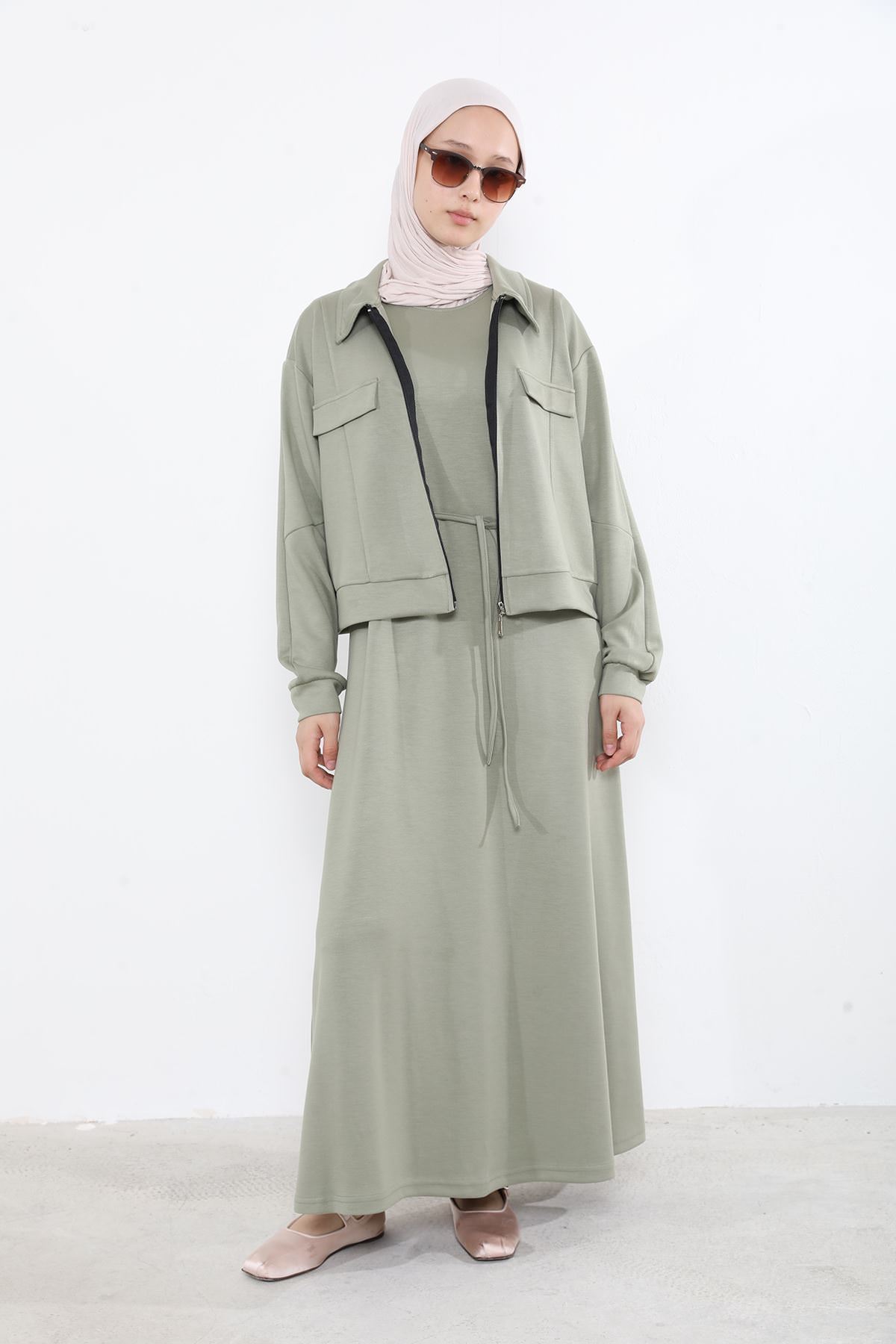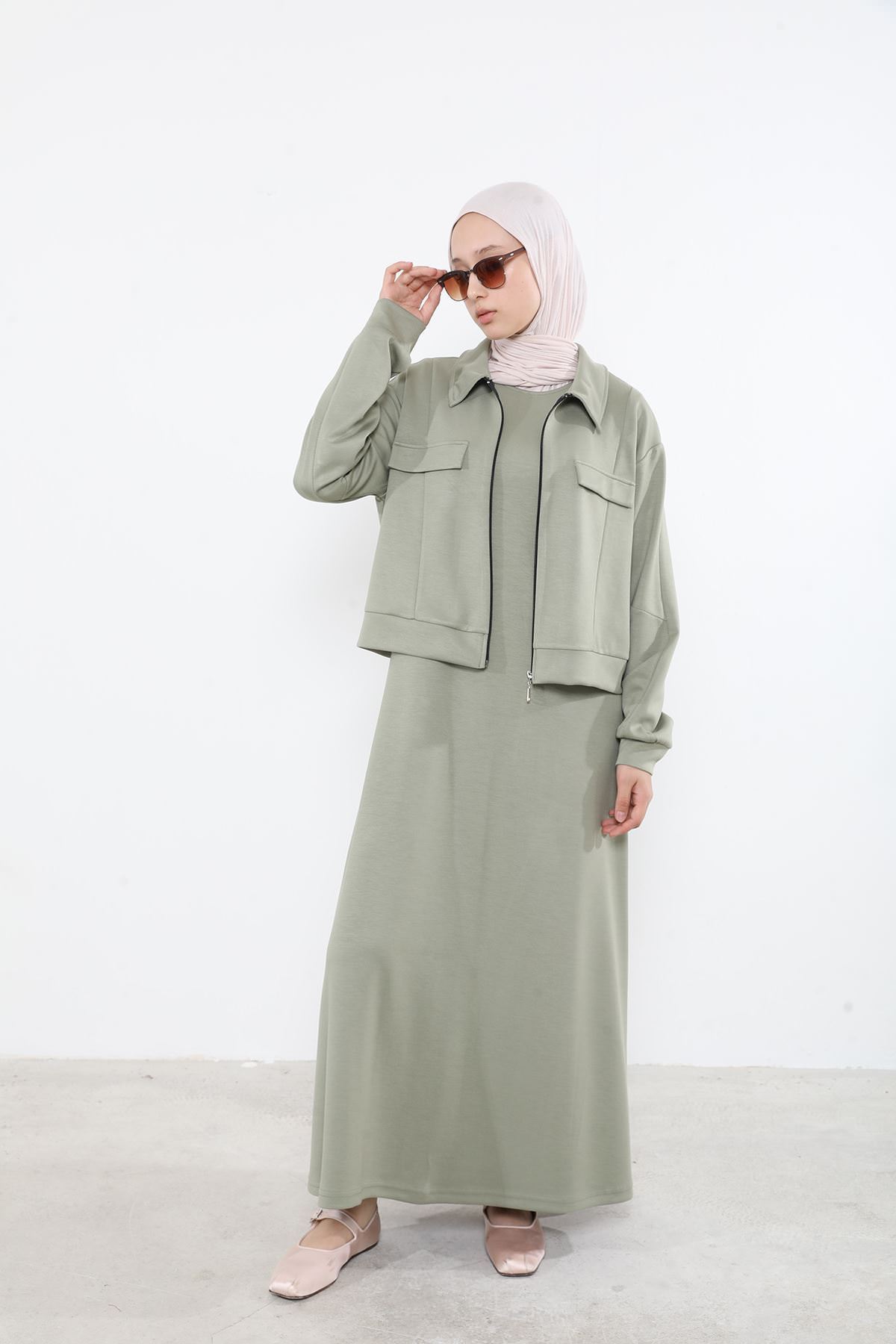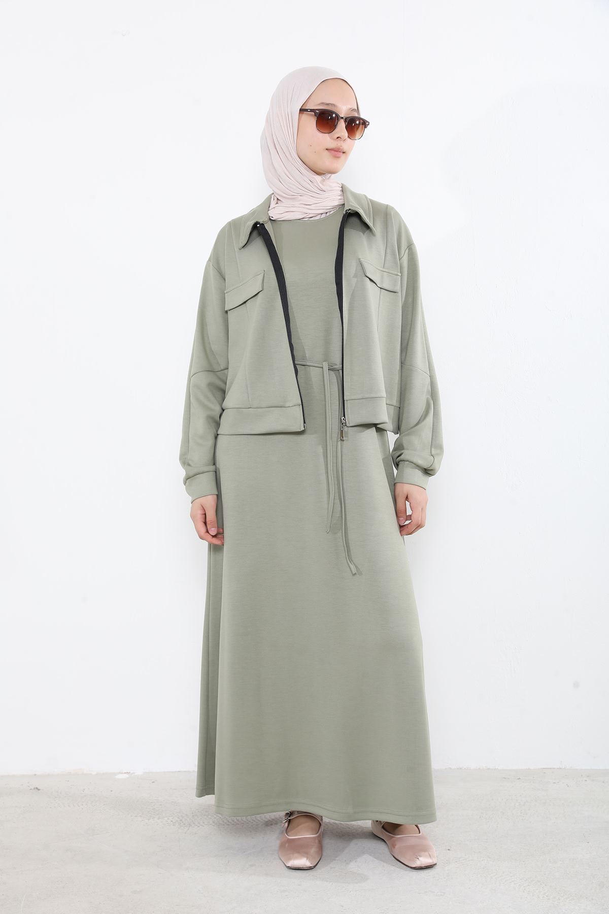 Yakalı Fermuar Detay Jileli Takım-Mint