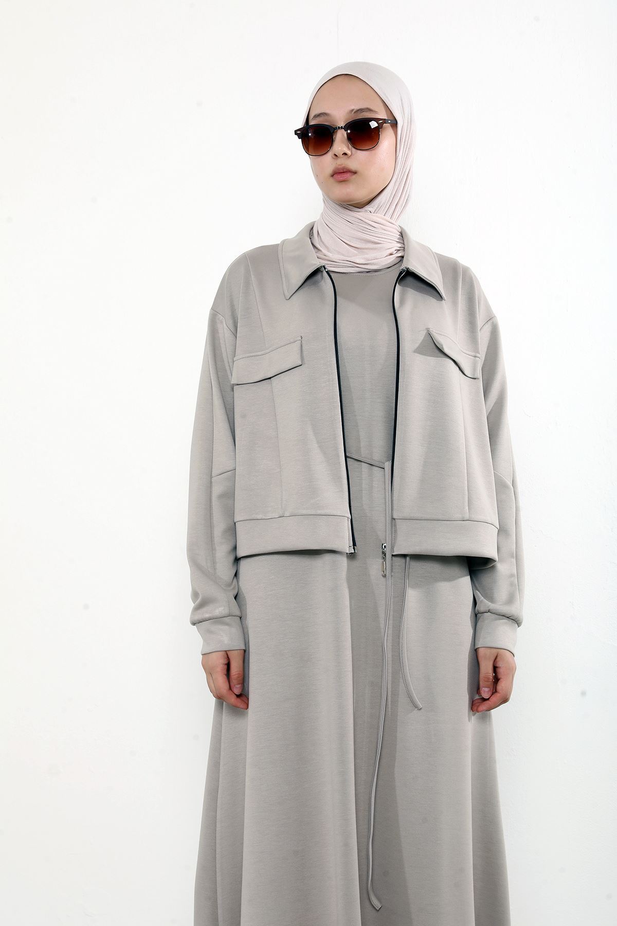 Yakalı Fermuar Detay Jileli Takım-Taş