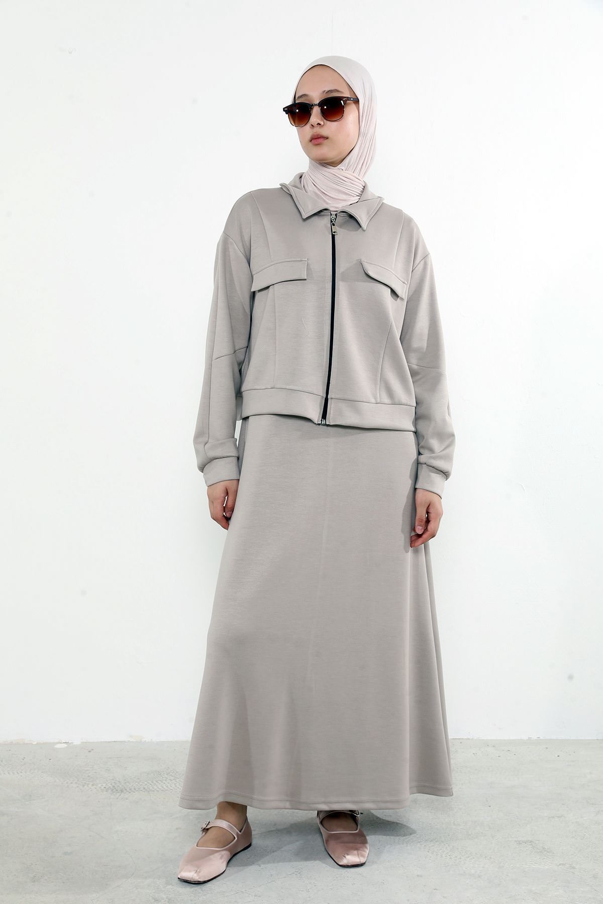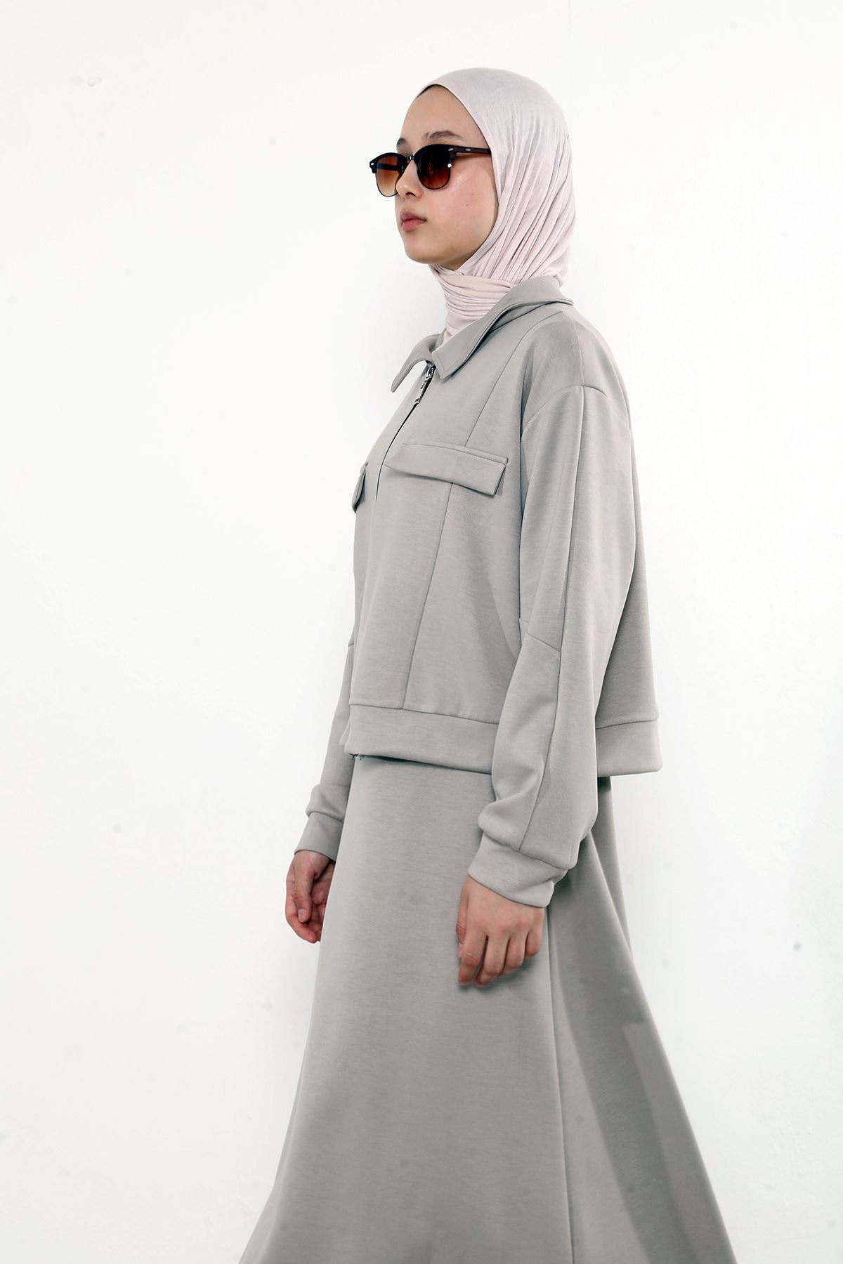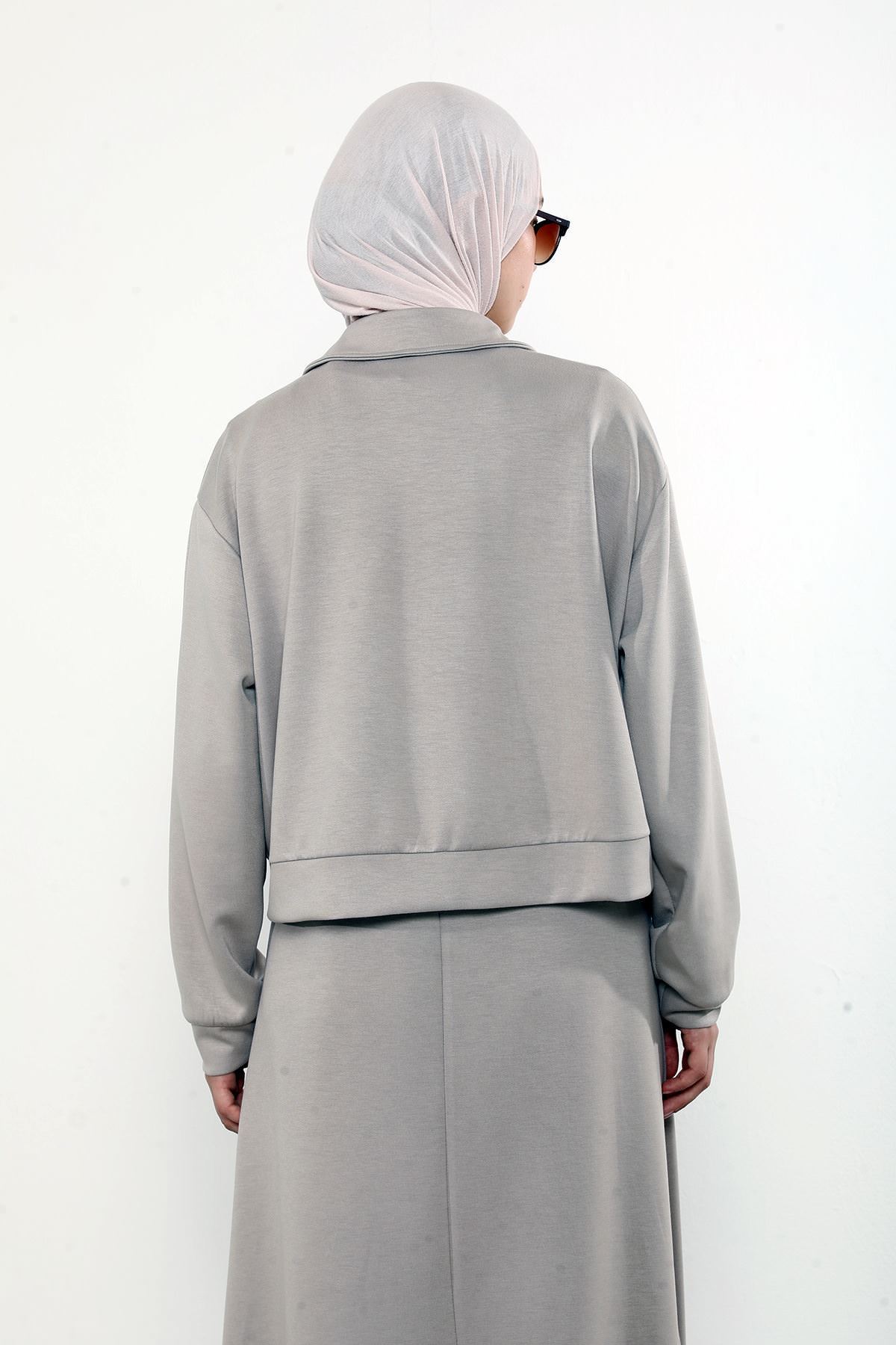 Yakalı Fermuar Detay Jileli Takım-Taş