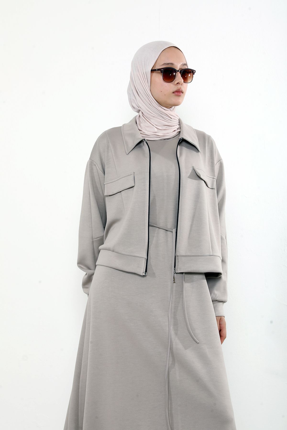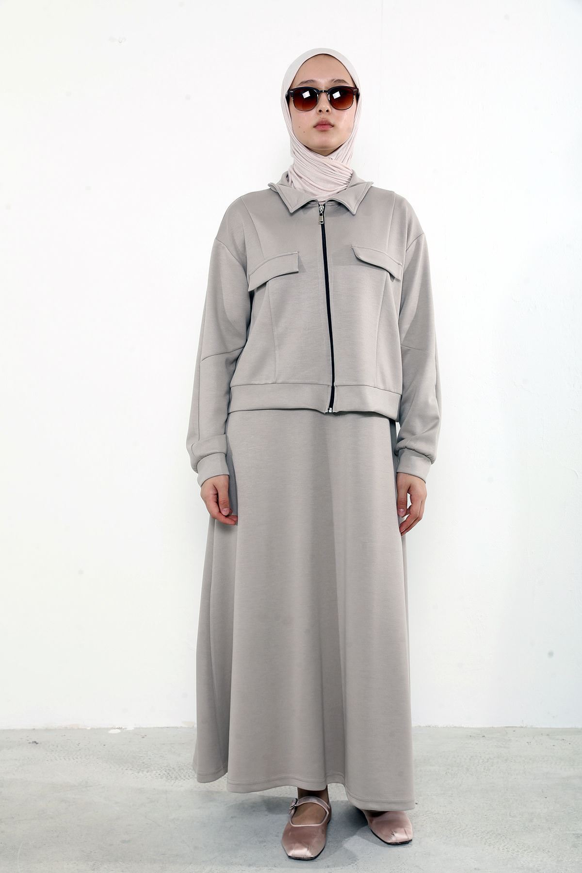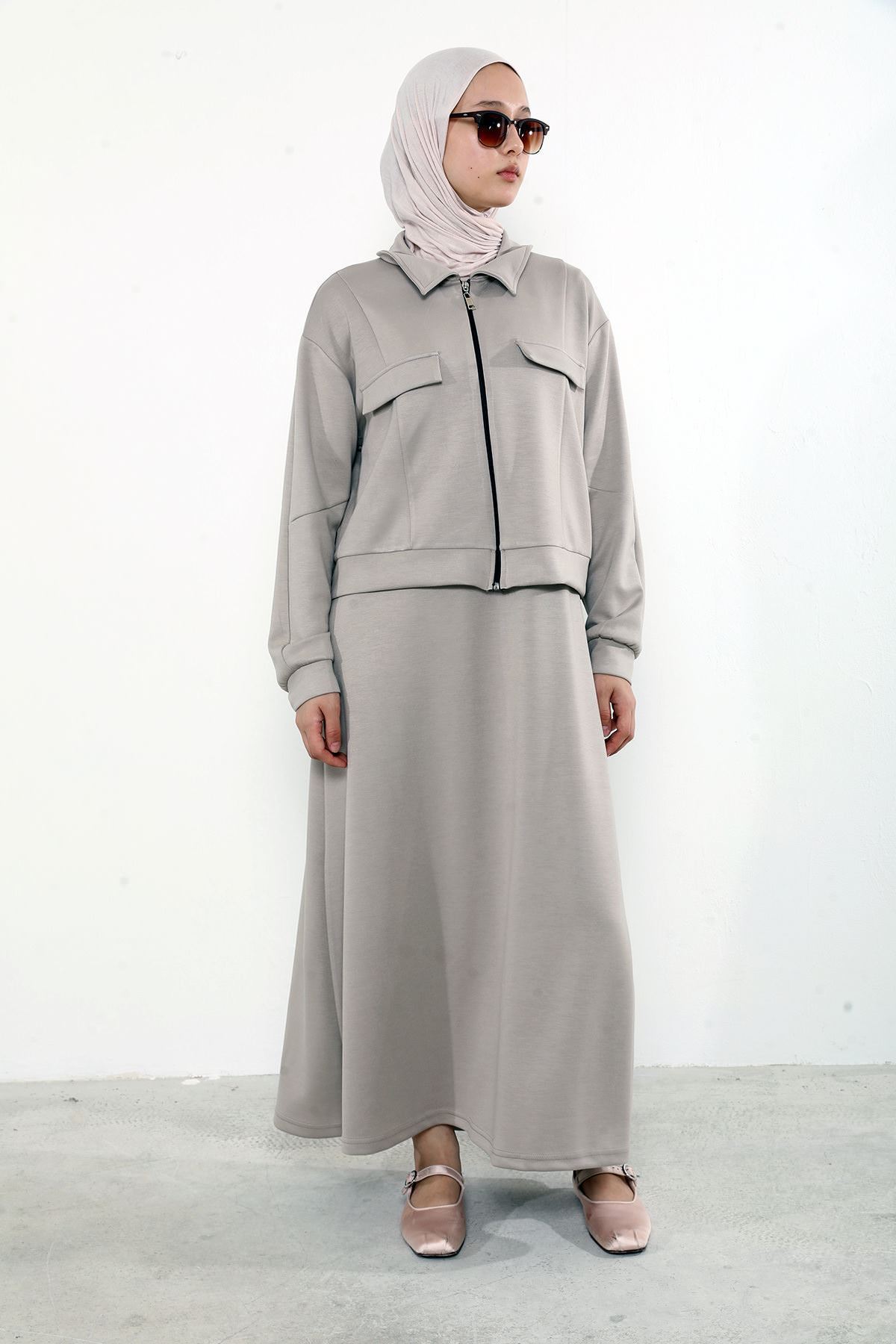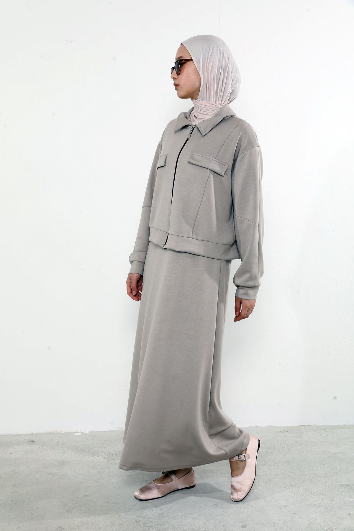 Yakalı Fermuar Detay Jileli Takım-Taş
