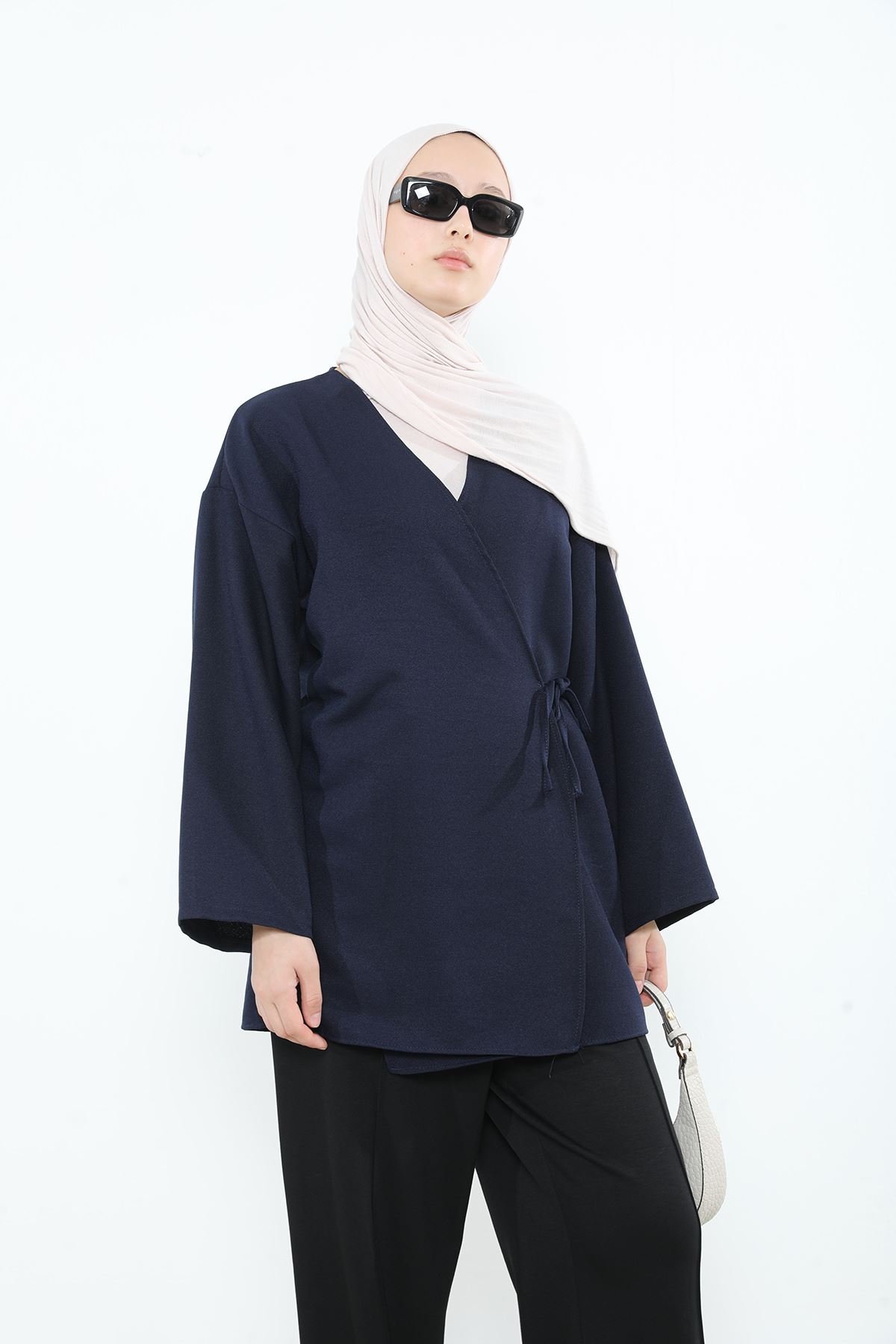Yan Bağlamalı Kalın Krep Tunik-Lacivert