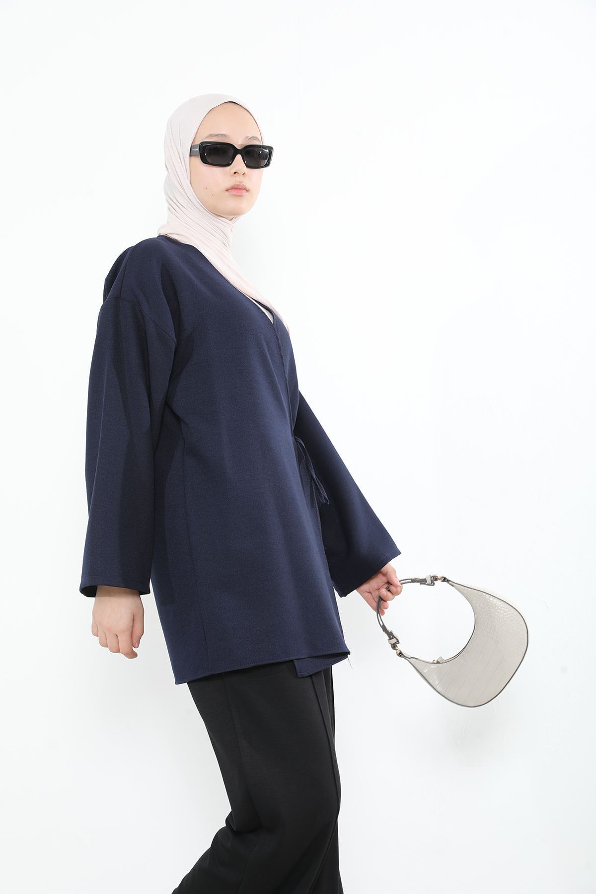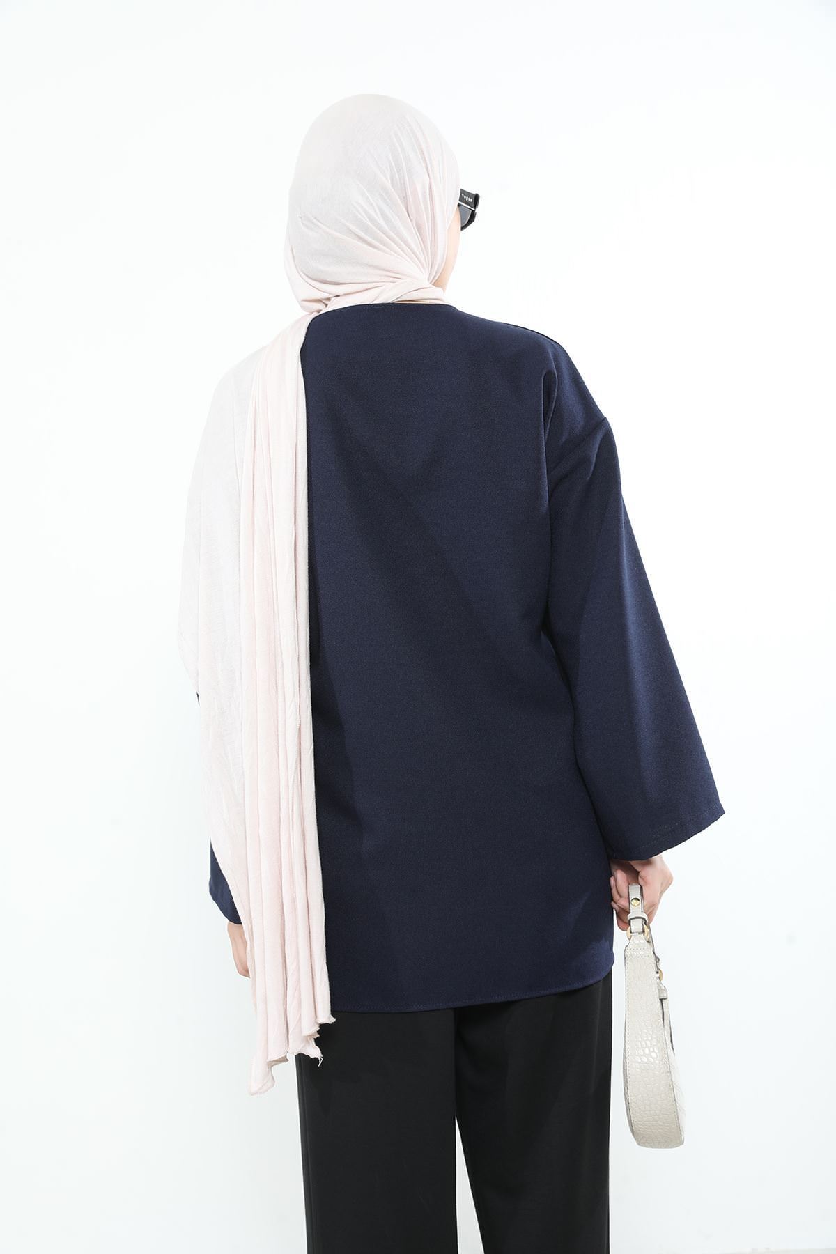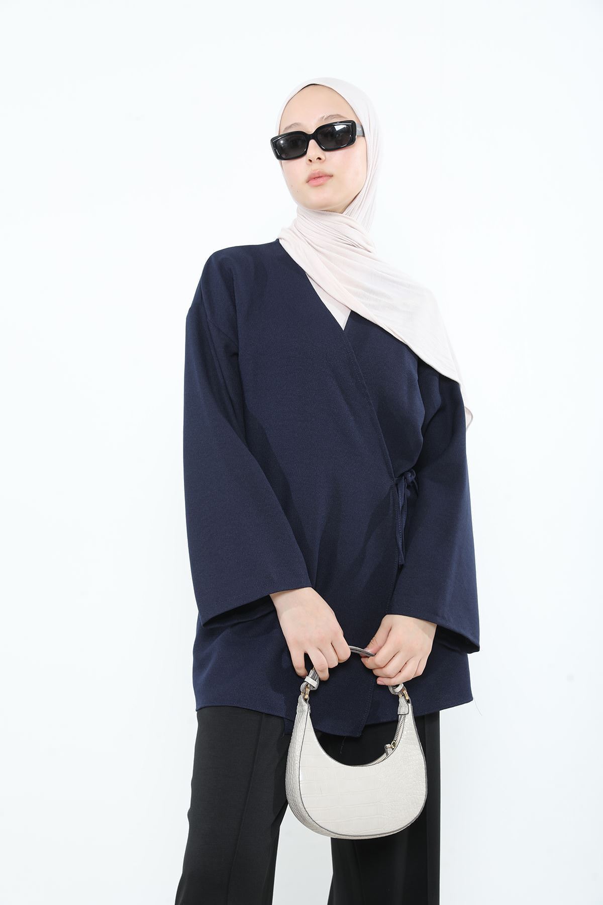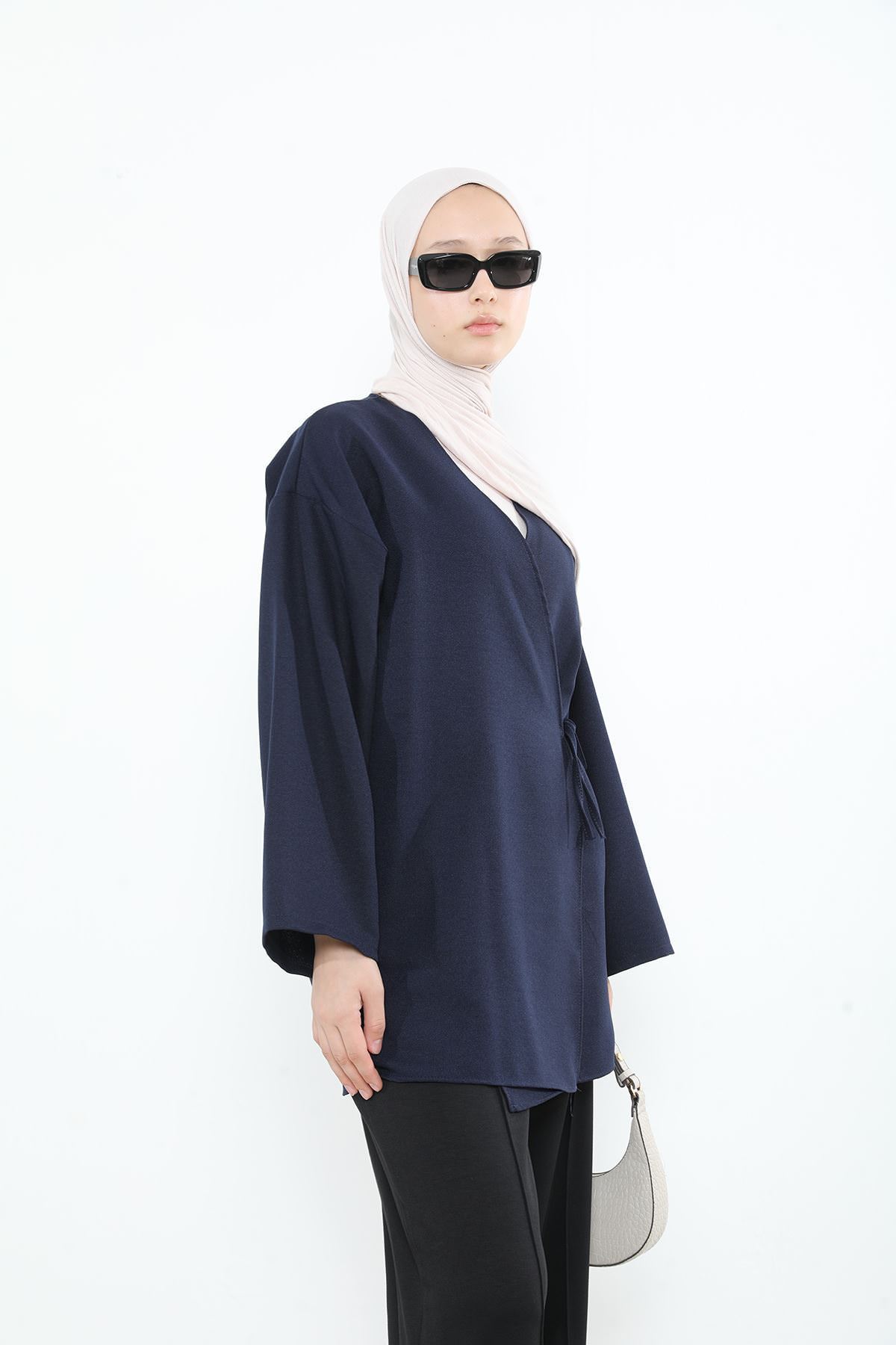 Yan Bağlamalı Kalın Krep Tunik-Lacivert