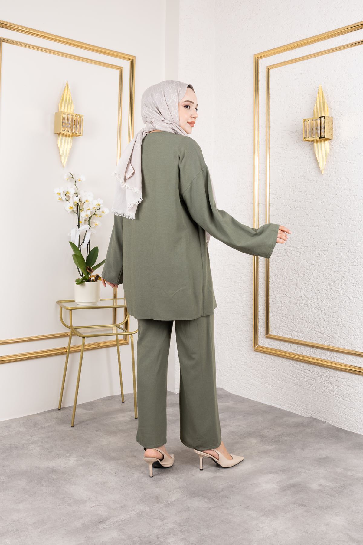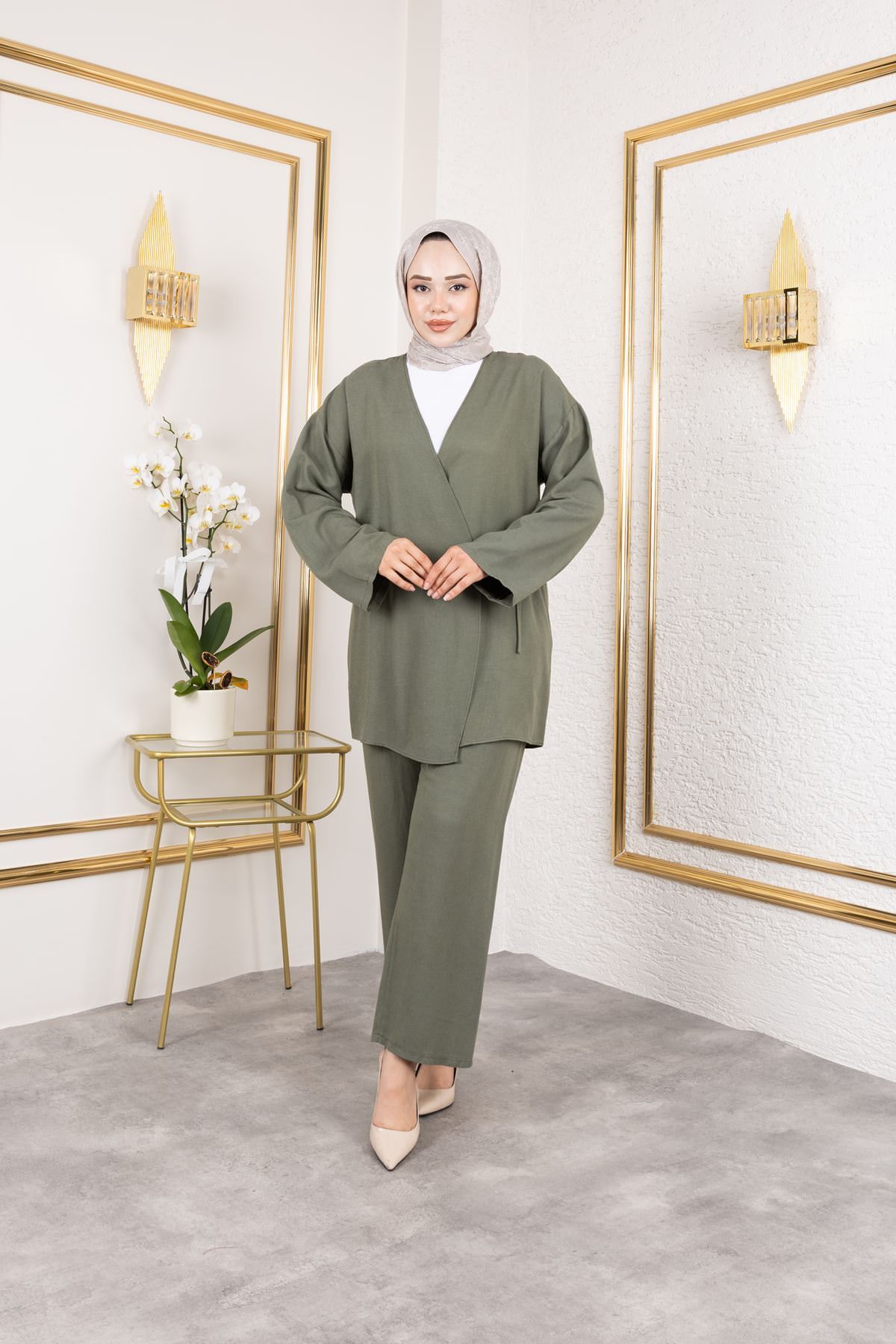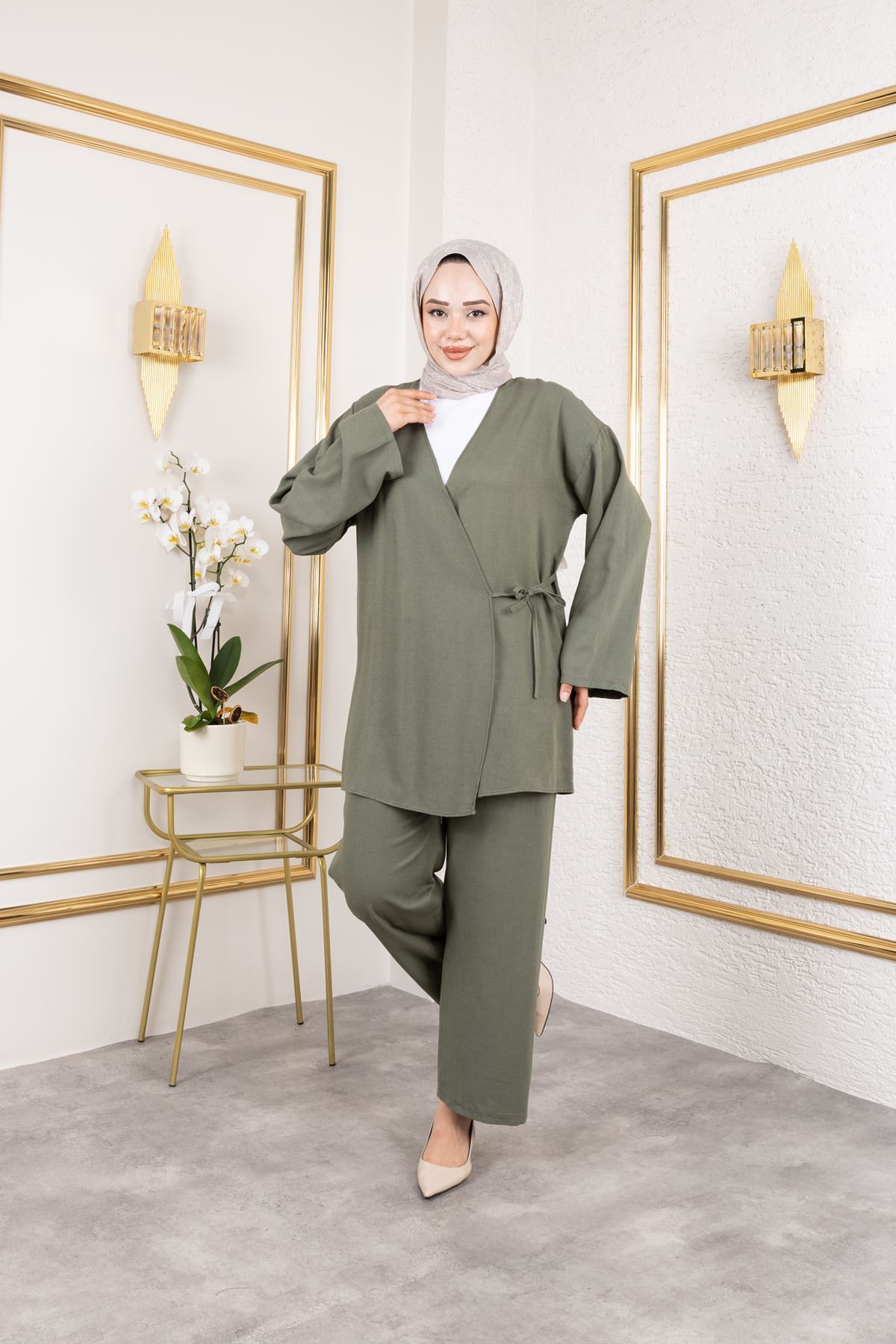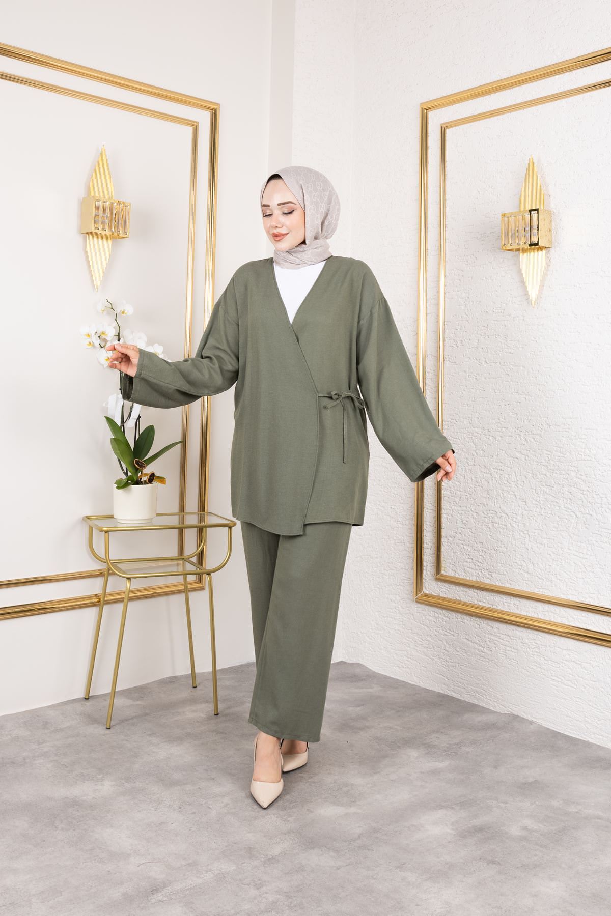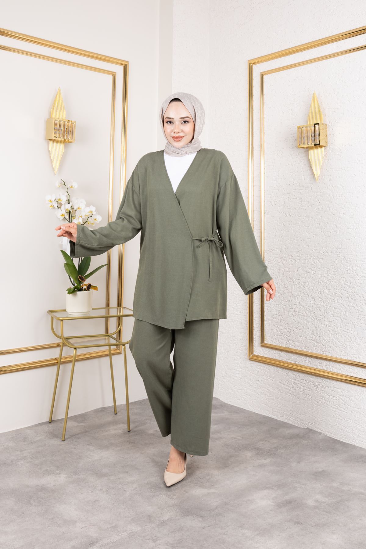 Yan Bağlamalı Pantolonlu Takım-Haki