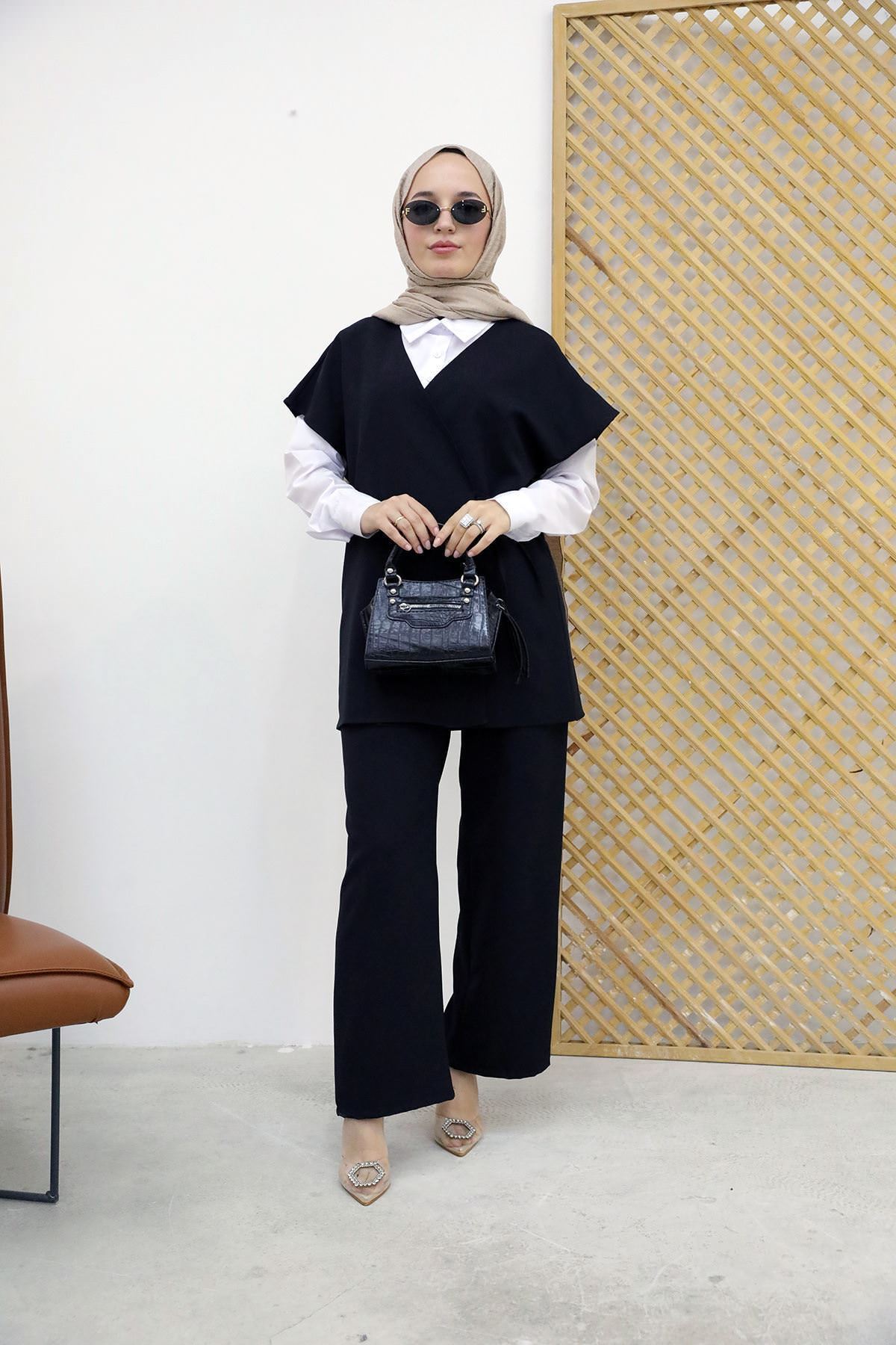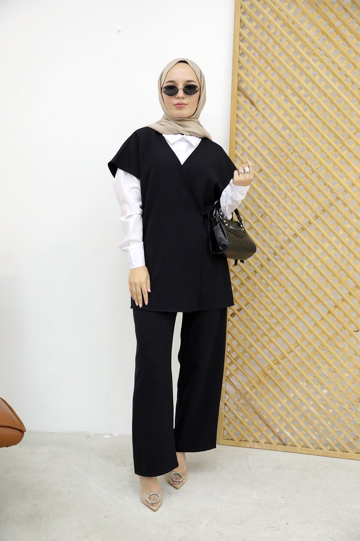 Yan Bağlamalı Yelekli DabılTakım-Siyah