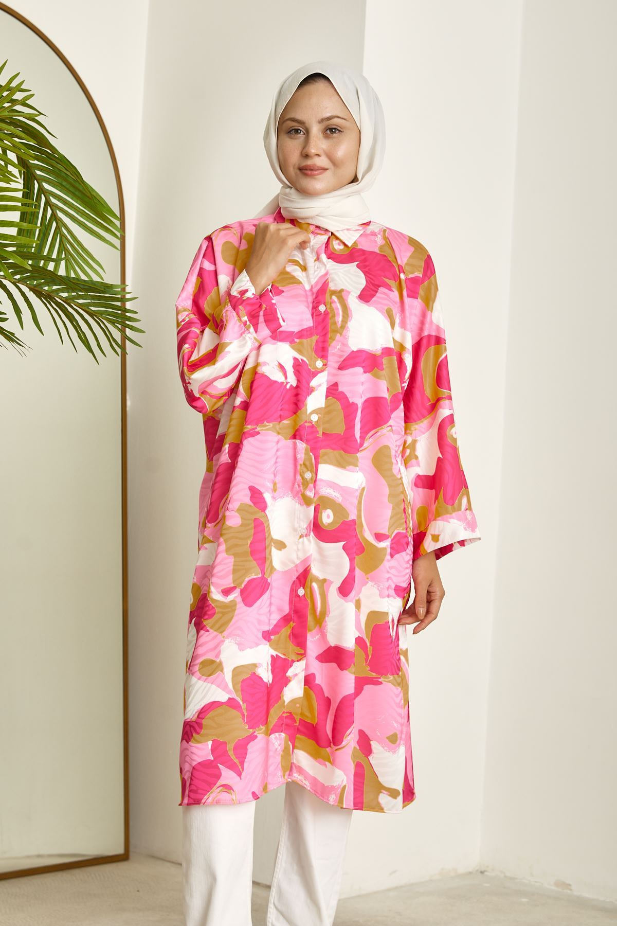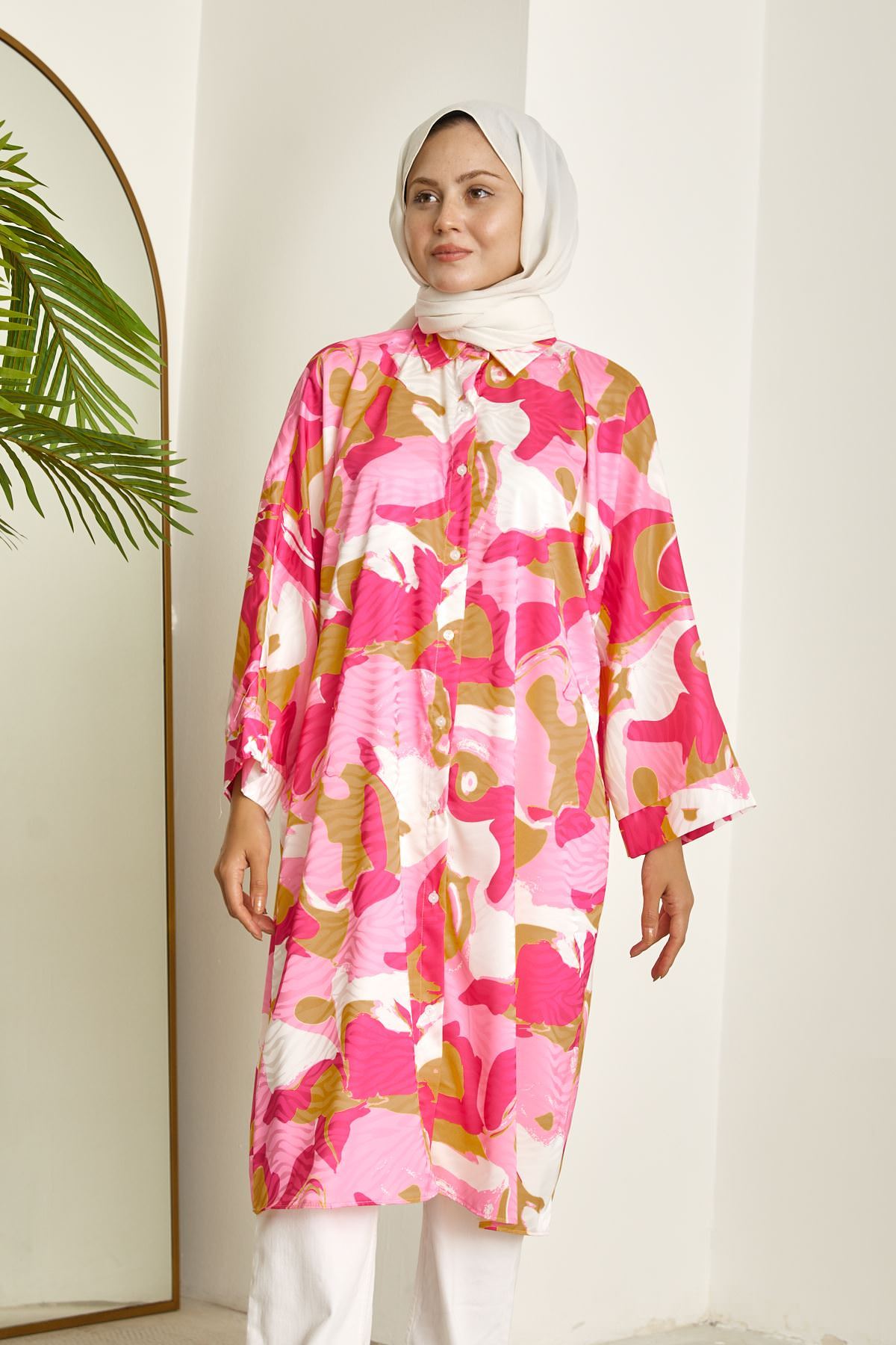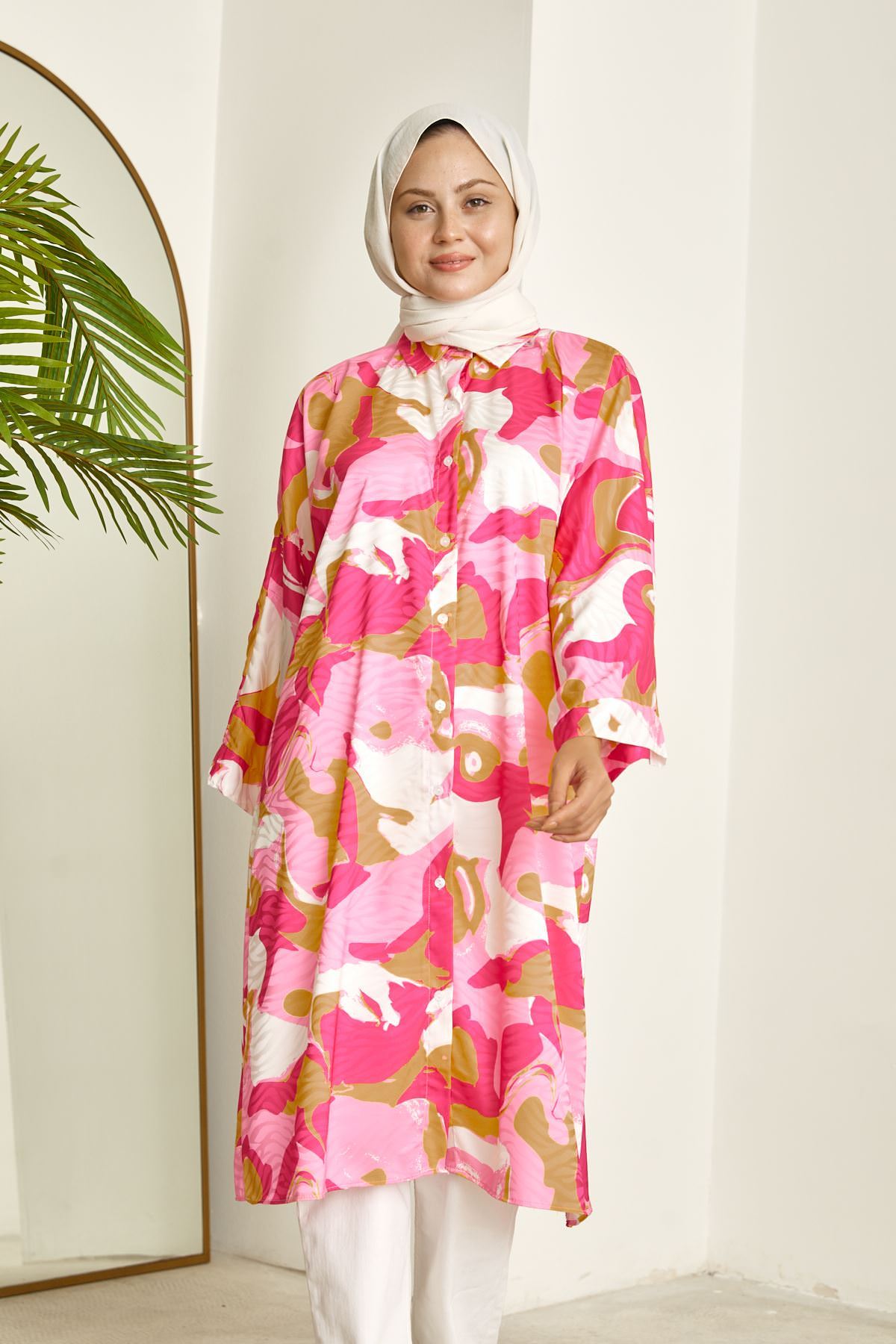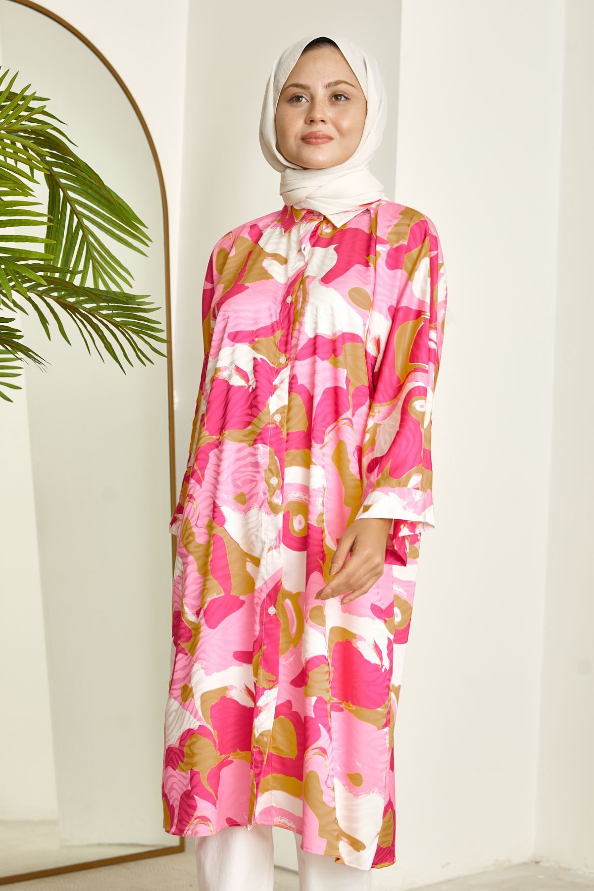 Yarasa Kol Desenli Tunik-Fuşya