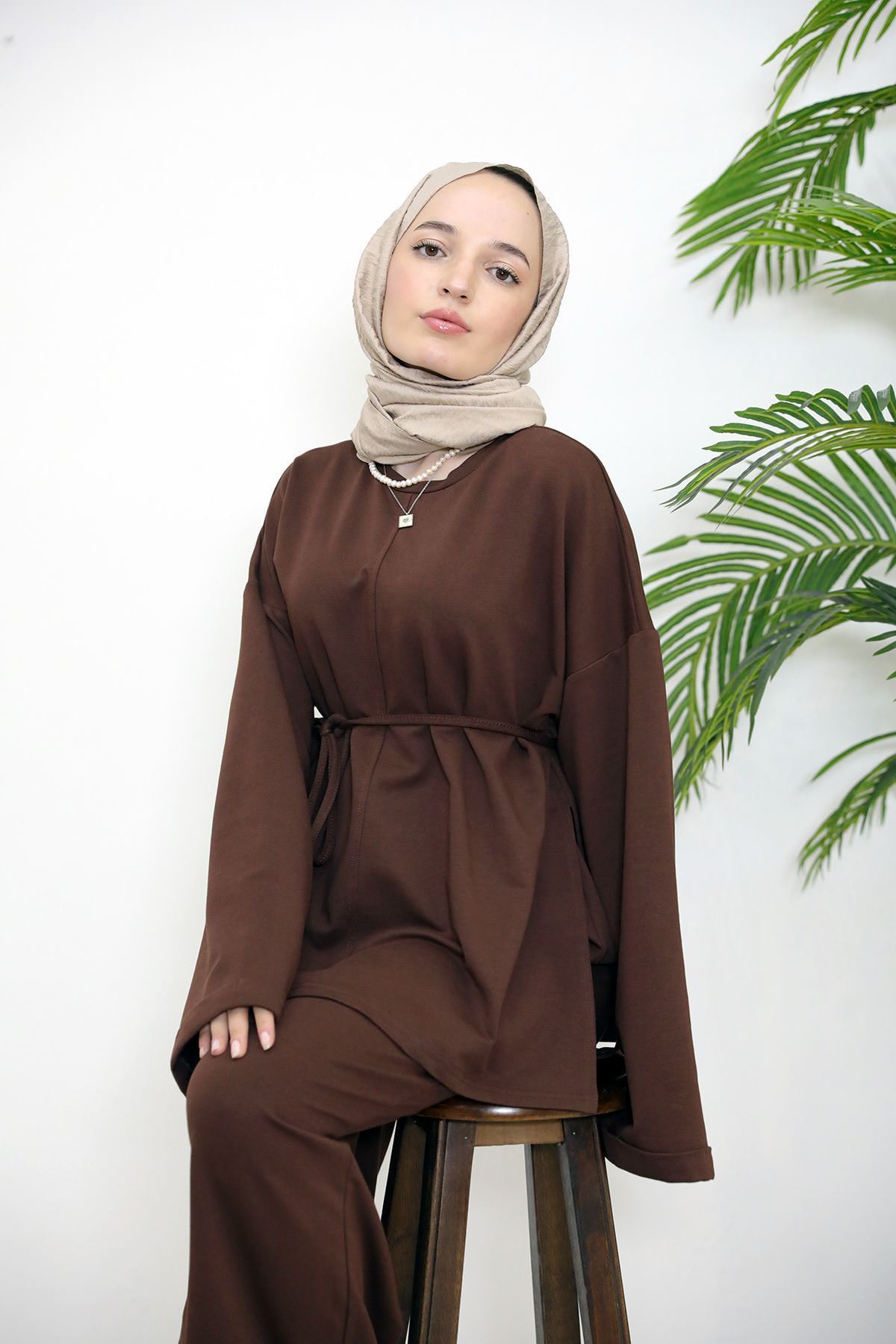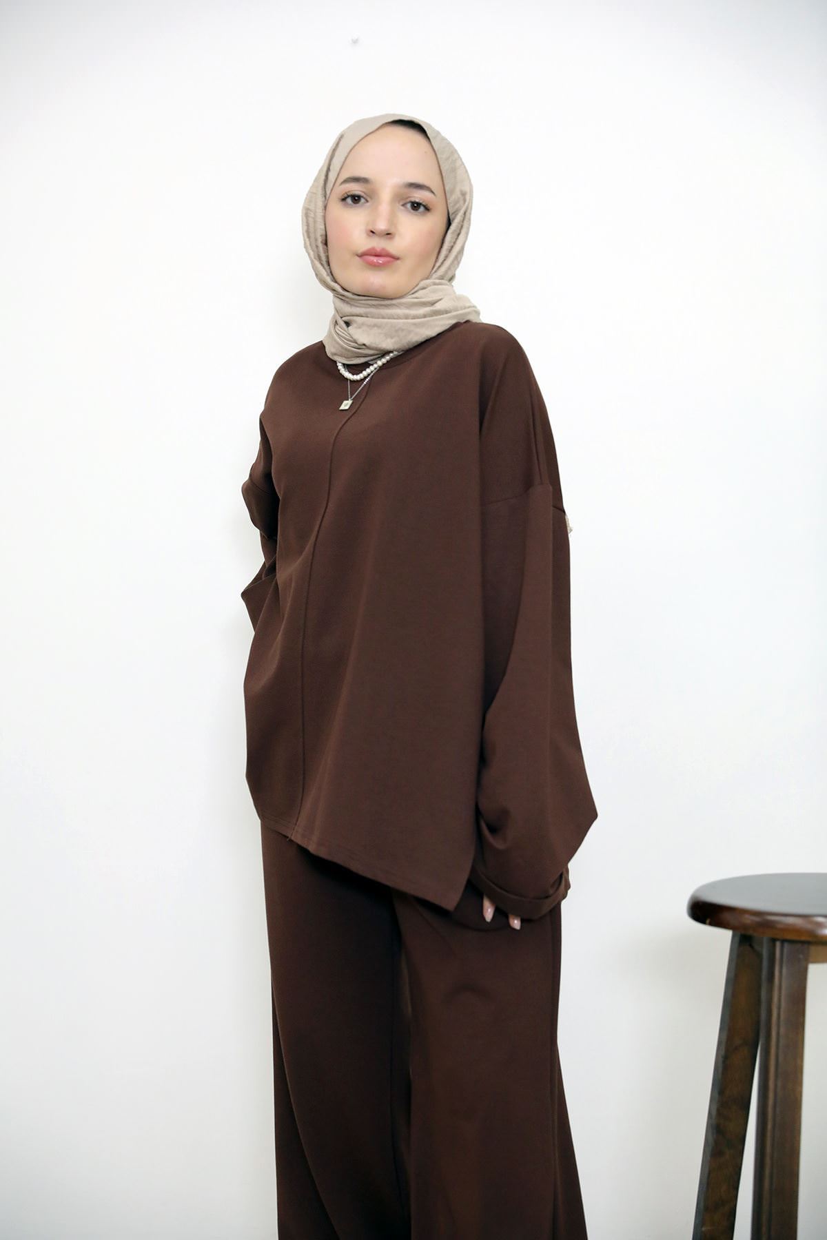 Yırtmaçlı İki İplik Pantolonlu Takım-Kahve